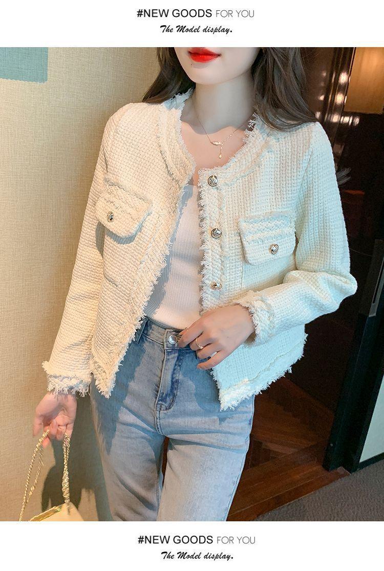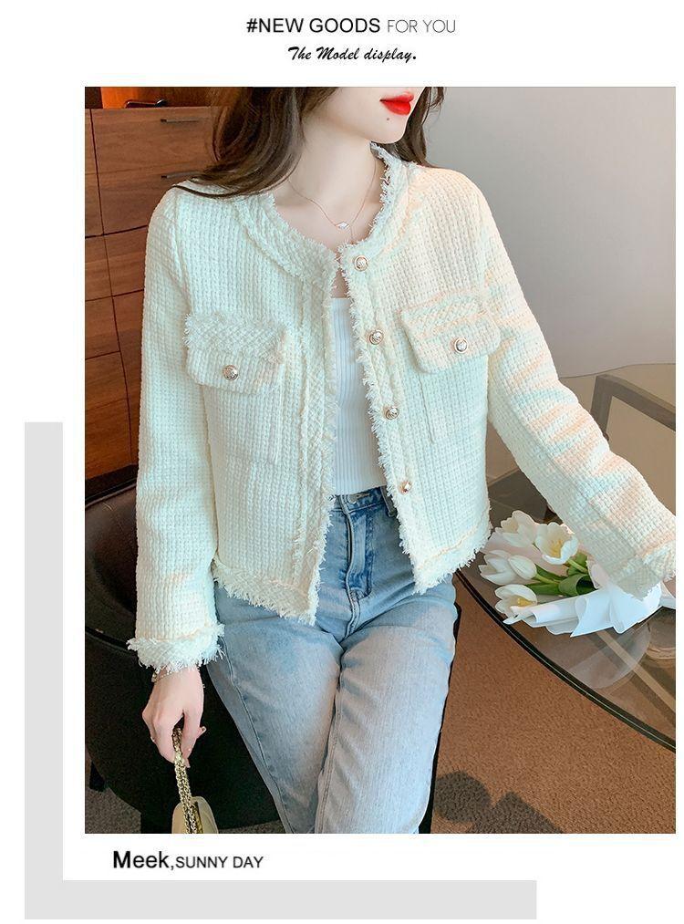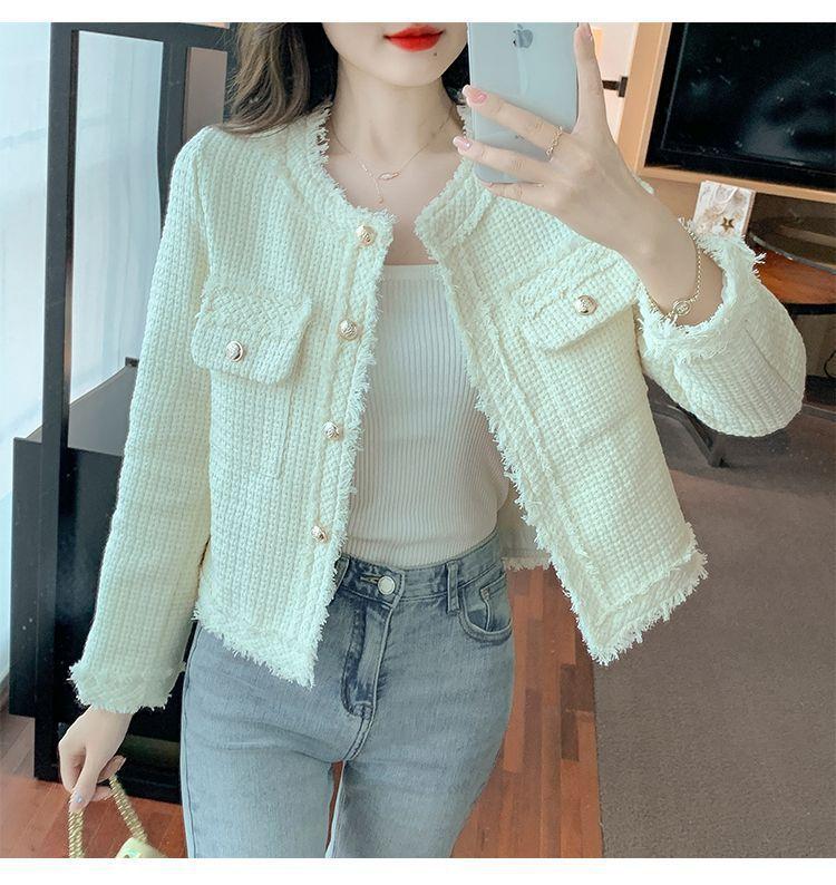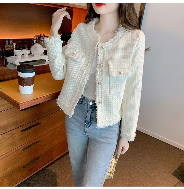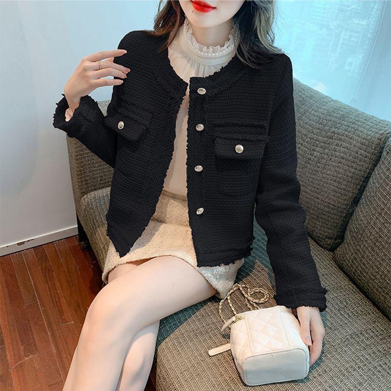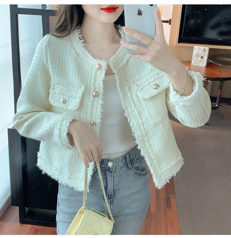 Abrigo estilo Chanel para mujer, otoño e invierno, recién llegado, pequeño, color sólido, combinable, cárdigan informal de moda, prenda exterior, top corto para mujer