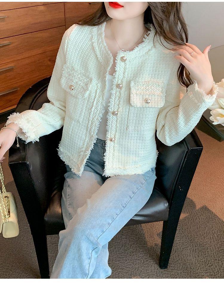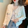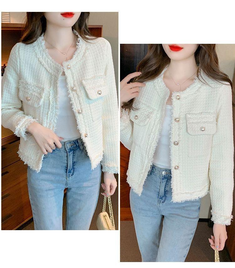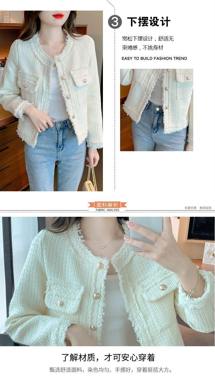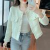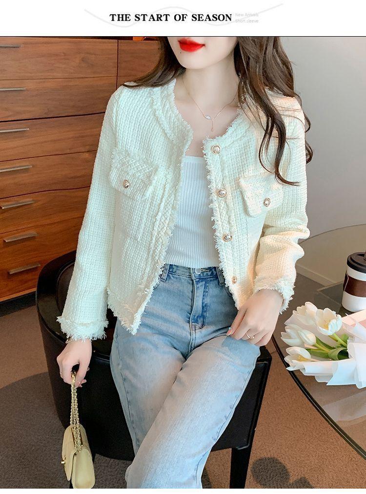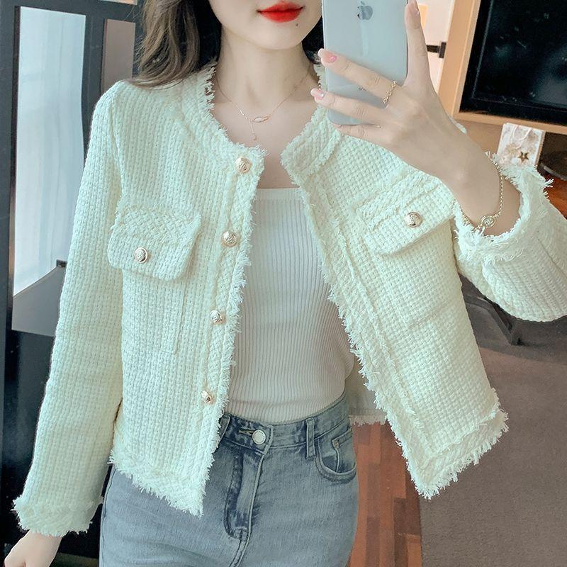 Abrigo estilo Chanel para mujer, otoño e invierno, recién llegado, pequeño, color sólido, combinable, cárdigan informal de moda, prenda exterior, top corto para mujer