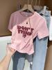 Chicas Calientes Hombro Cintura Alta Short Camiseta Manga Corta Verano para Mujer Diseño de Letras Nicho Chic Holgado Cuello Redondo Top Ins