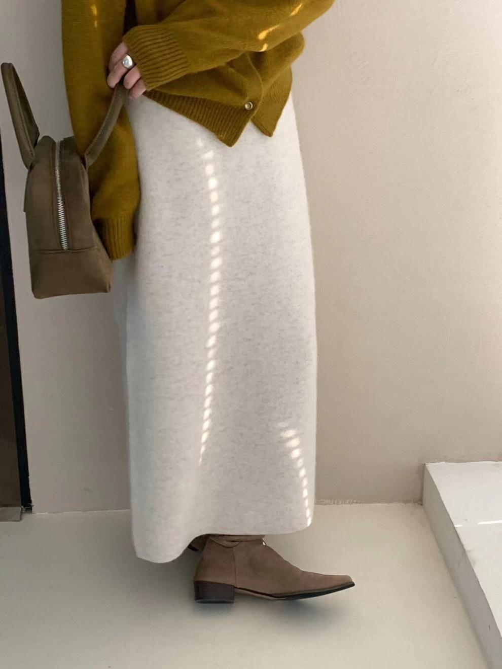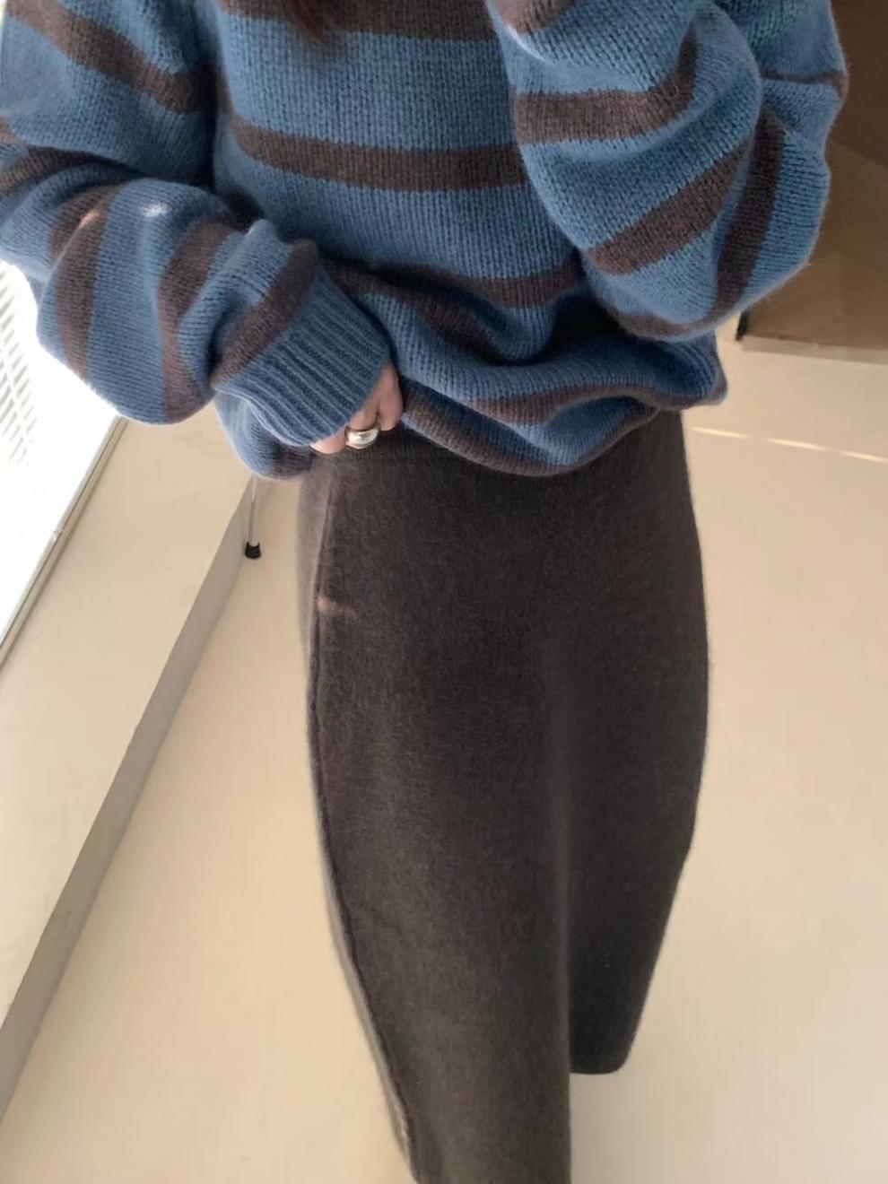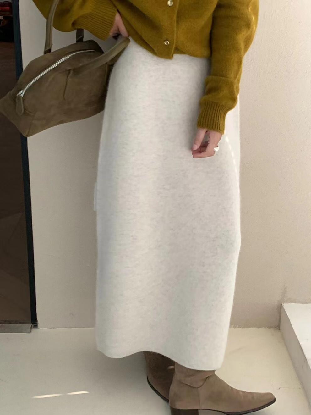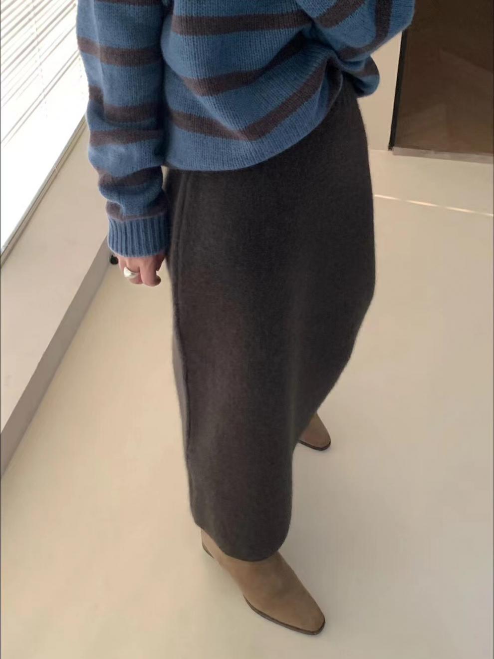 Falda de Punto de Cintura Alta de Moda para Mujer 2024 Otoño e Invierno Nueva Versátil Adelgazante Media Longitud Línea A Cadera Falda Larga