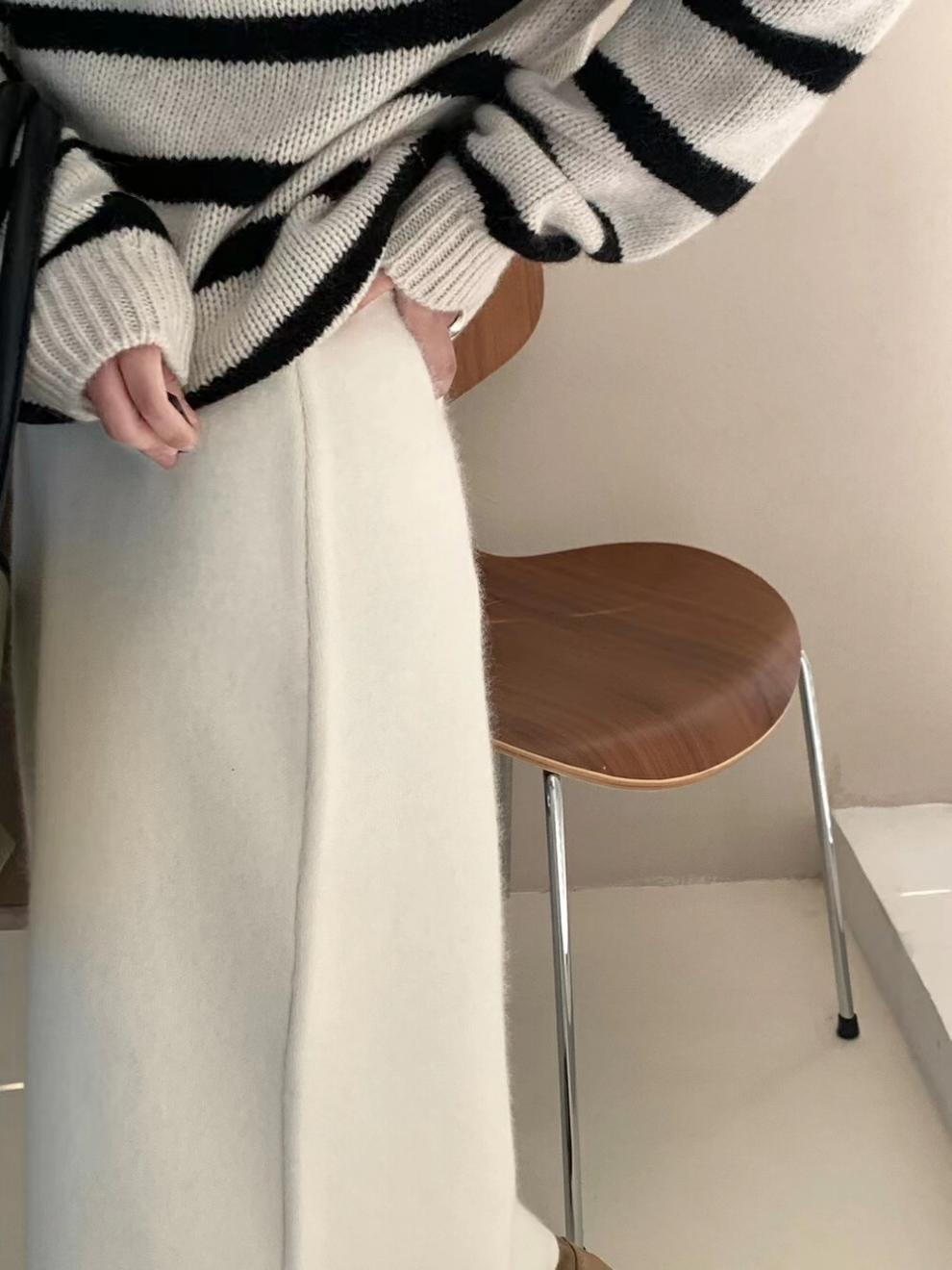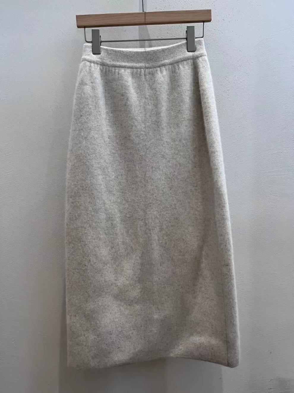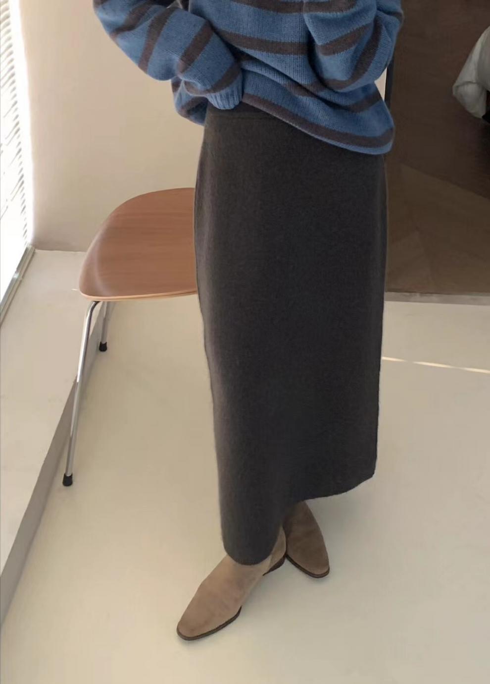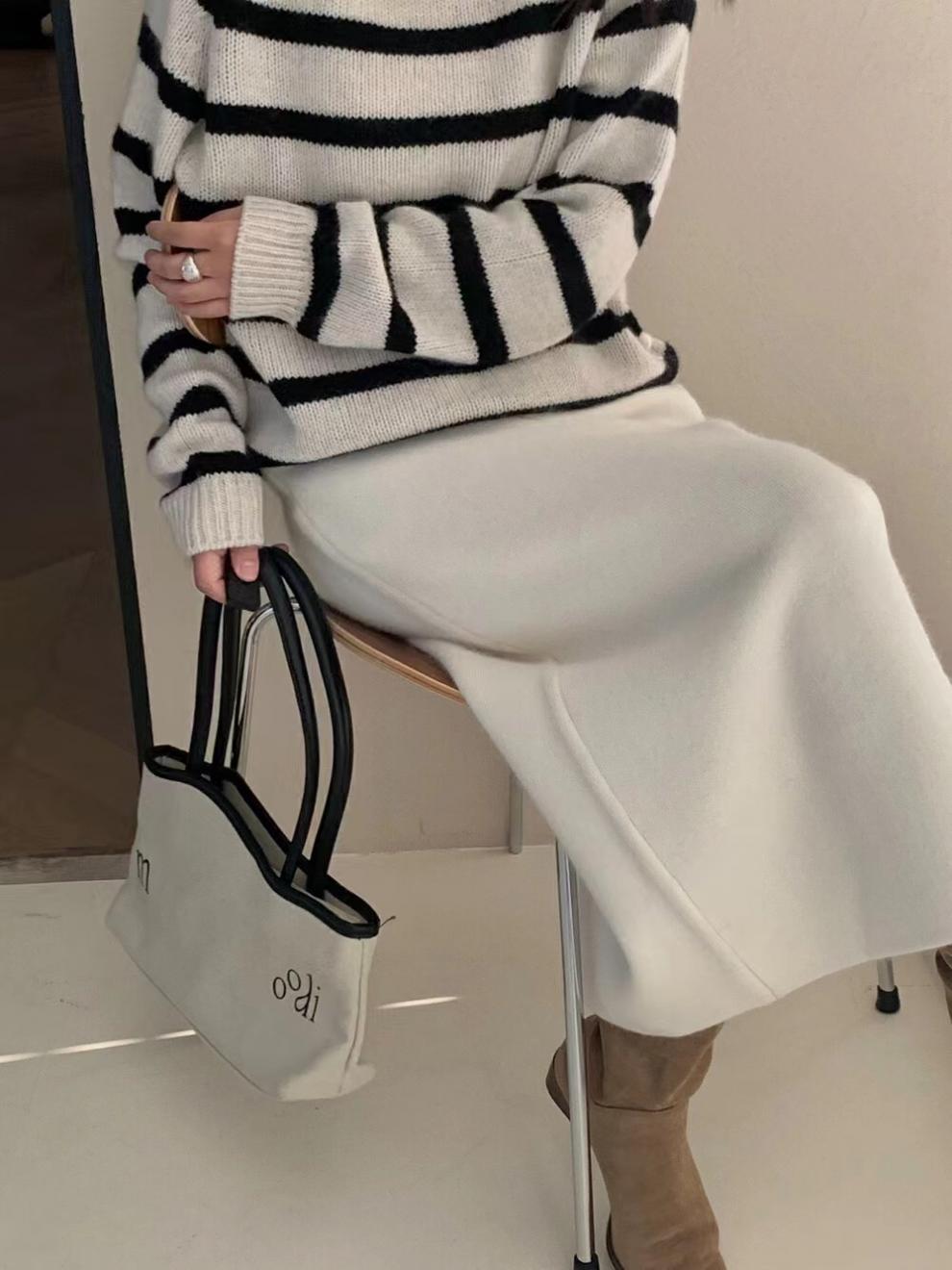 Falda de Punto de Cintura Alta de Moda para Mujer 2024 Otoño e Invierno Nueva Versátil Adelgazante Media Longitud Línea A Cadera Falda Larga