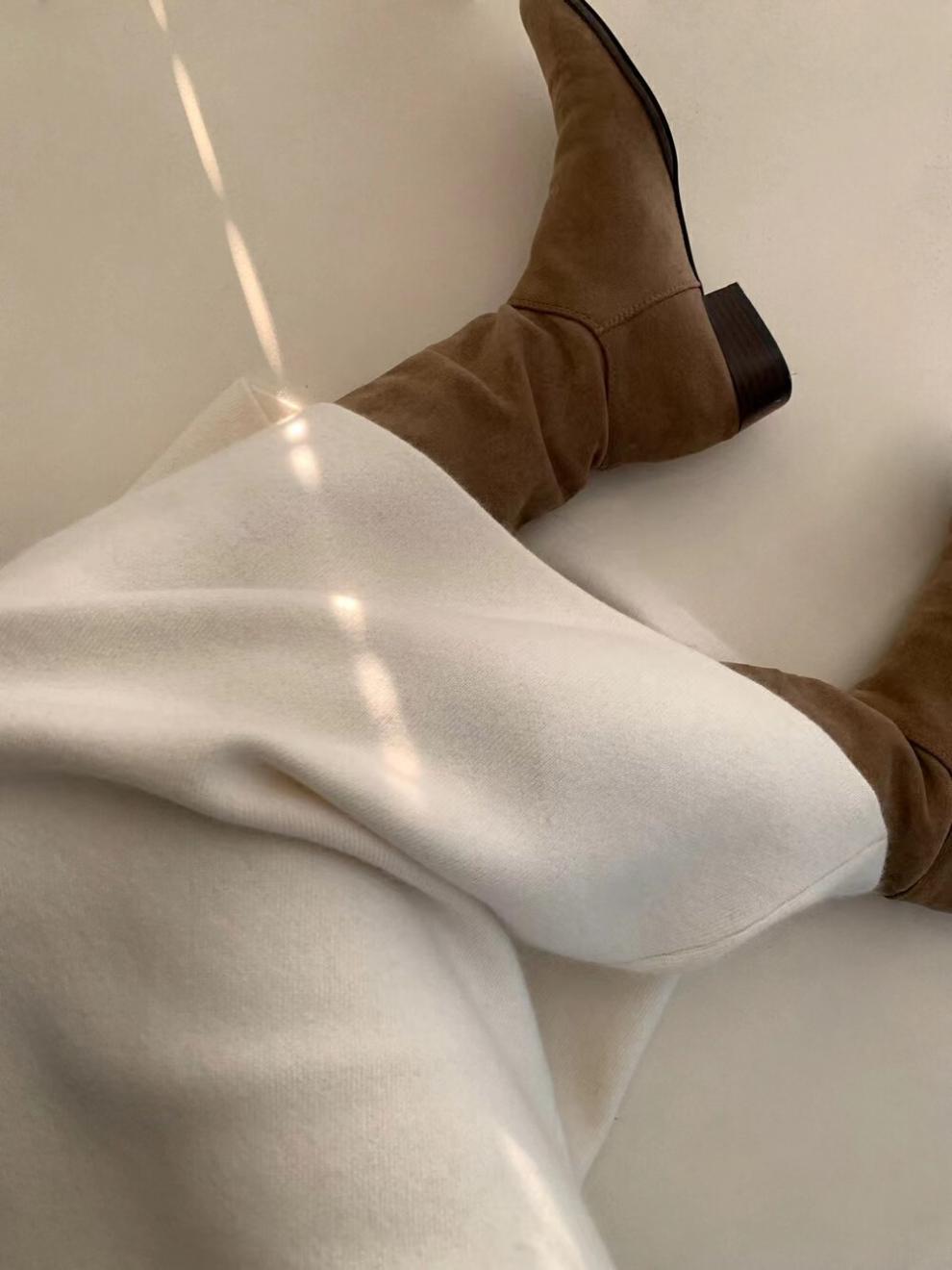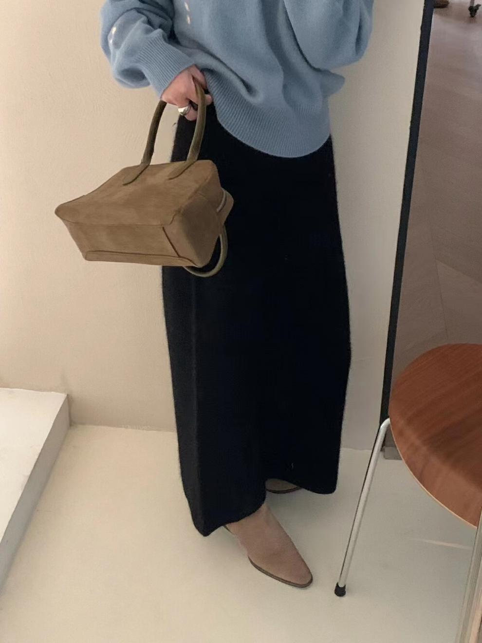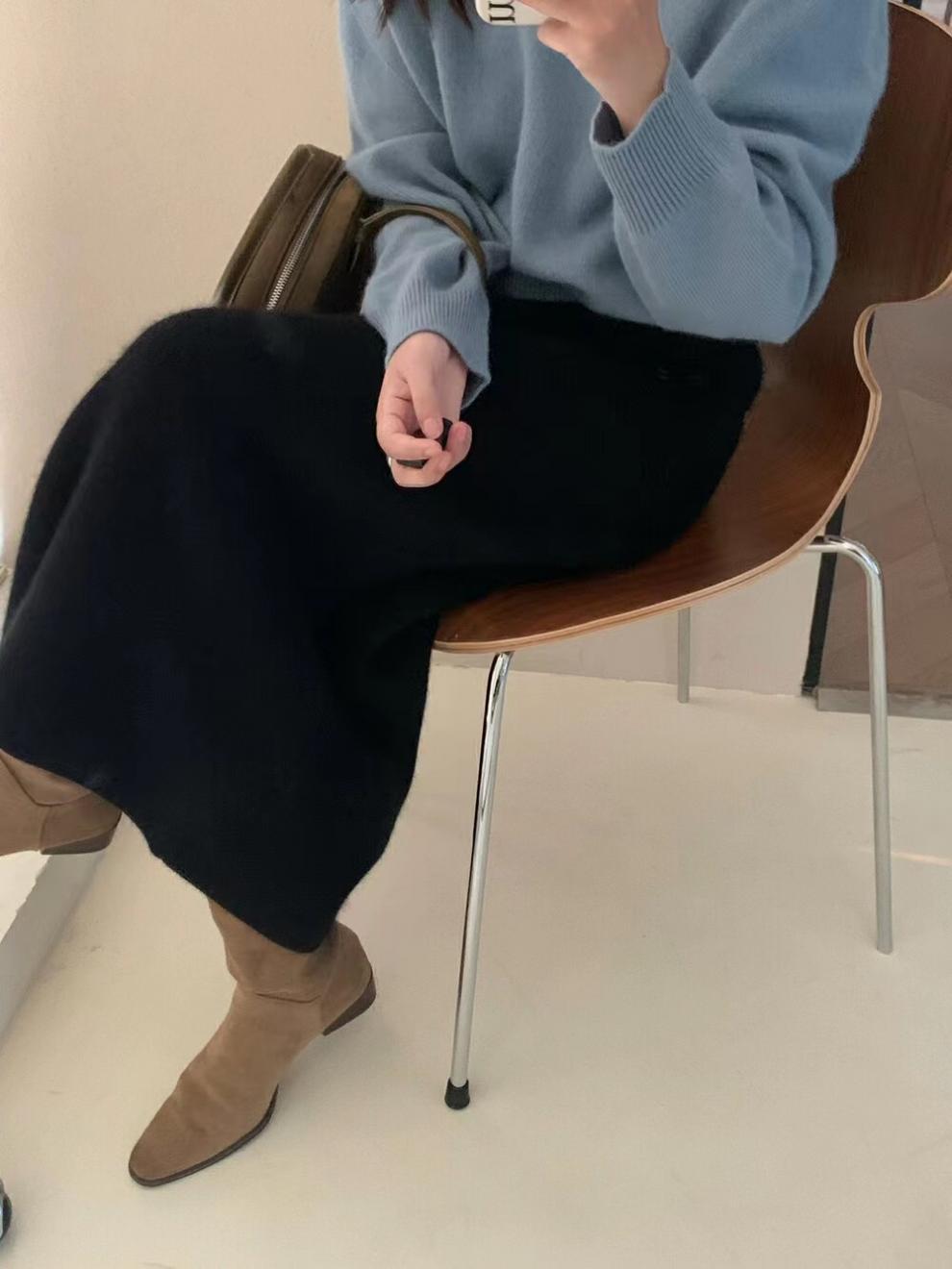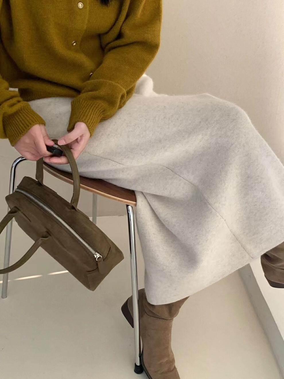 Falda de Punto de Cintura Alta de Moda para Mujer 2024 Otoño e Invierno Nueva Versátil Adelgazante Media Longitud Línea A Cadera Falda Larga