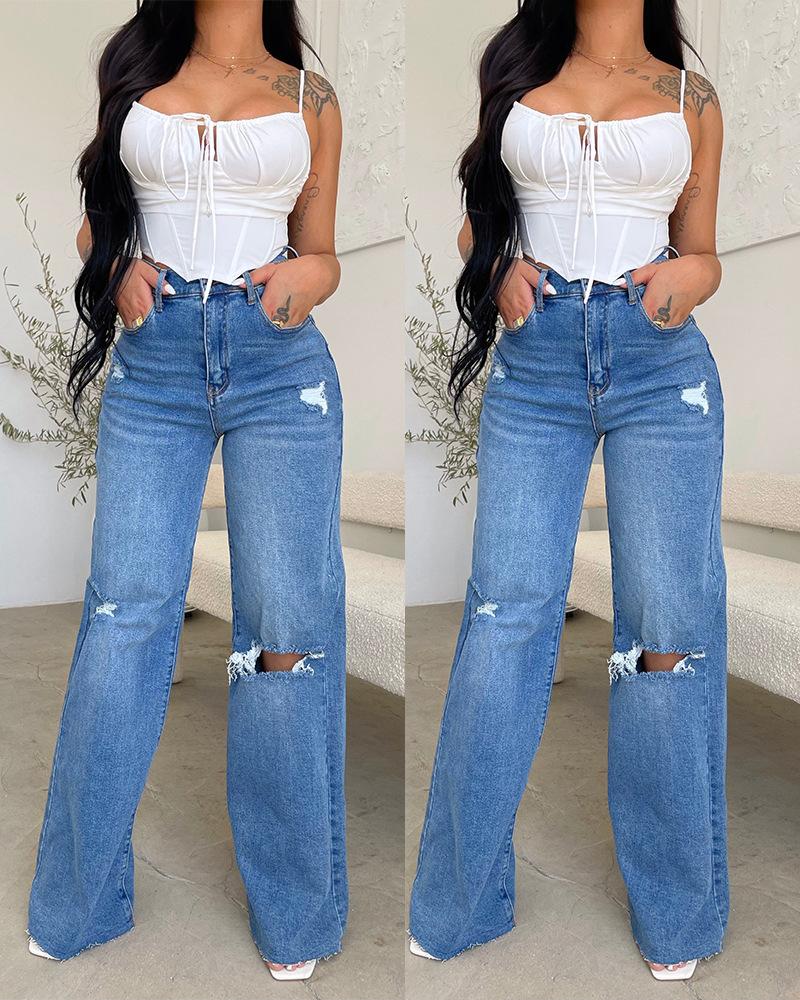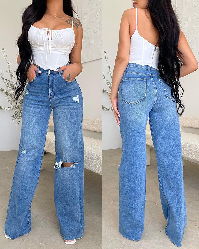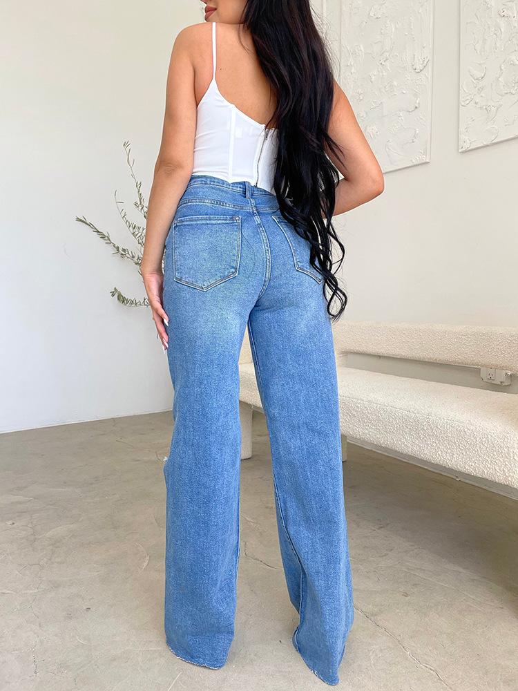 Pantalones vaqueros rectos, holgados y acampanados con cintura rasgada de Amazon Independent Station para mujer
