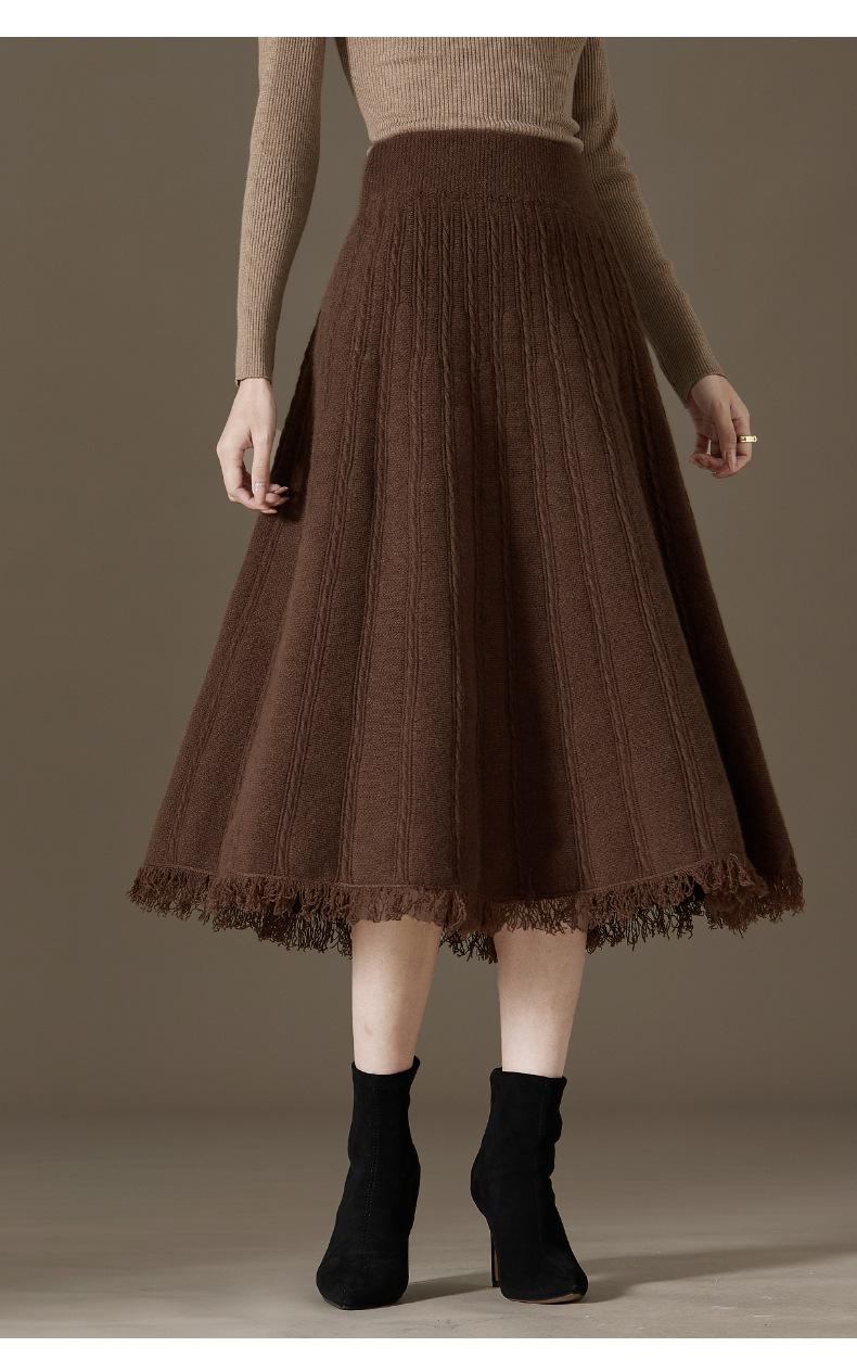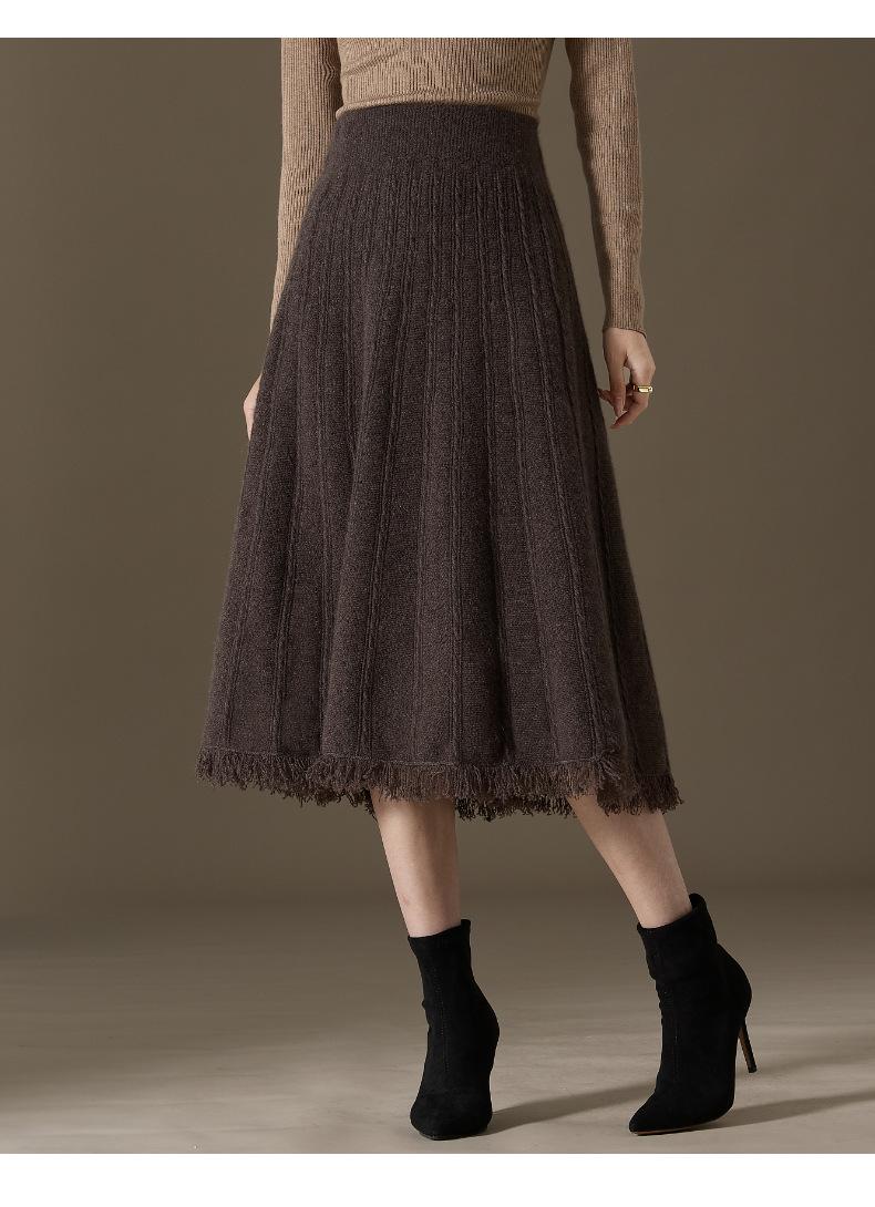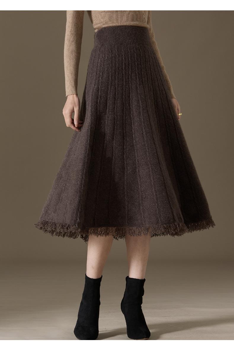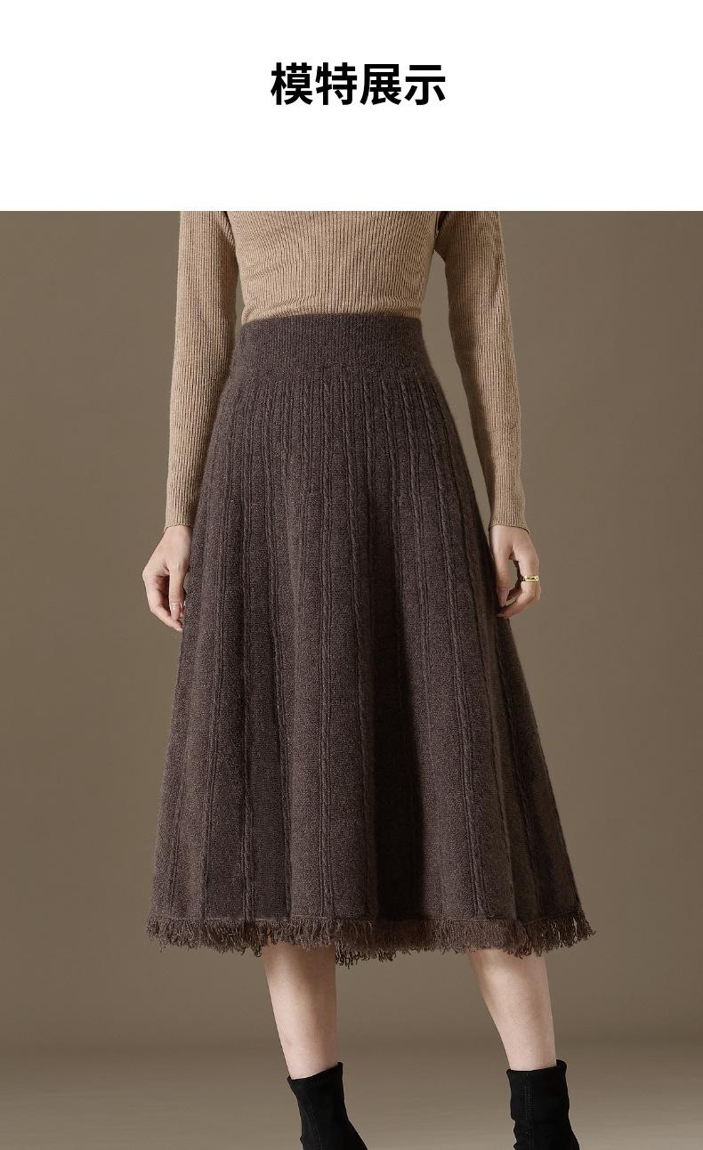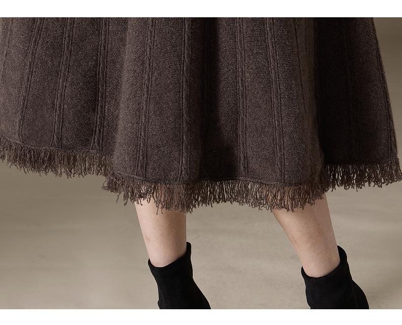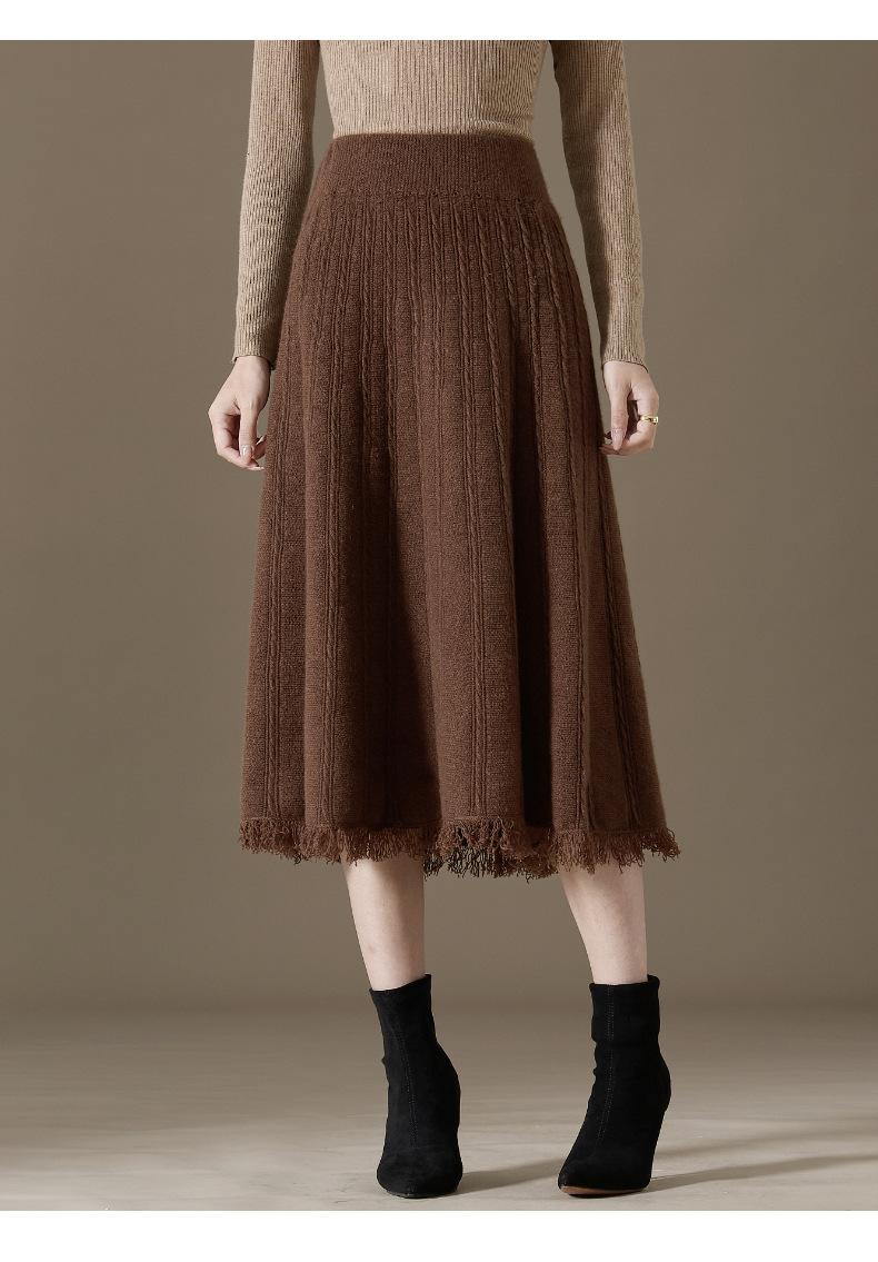 100 Cachemira 2024 Nuevo Falda Línea A Otoño Falda Larga con Flecos Plisada para Mujer Falda Falda Media Longitud