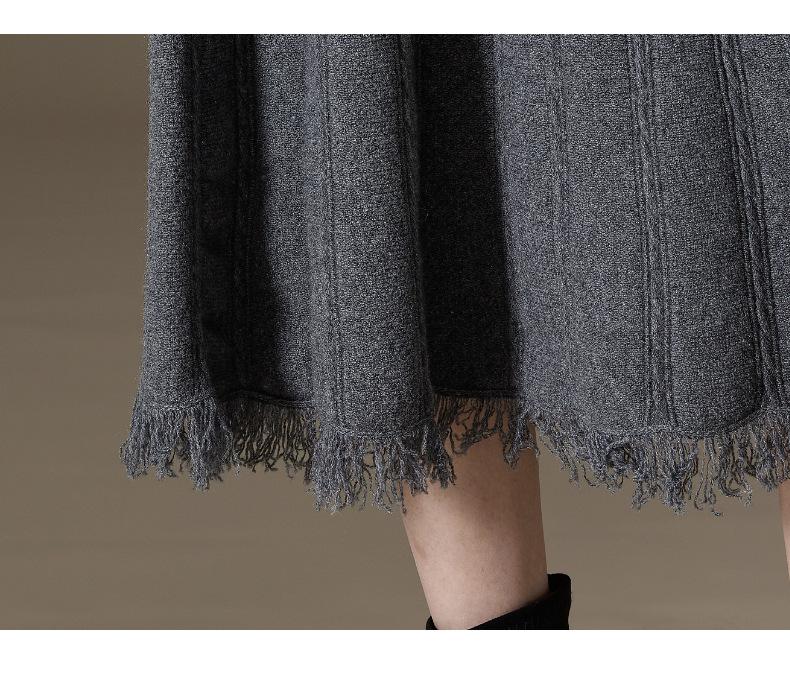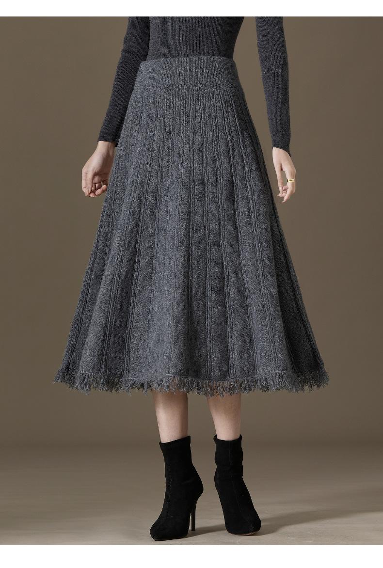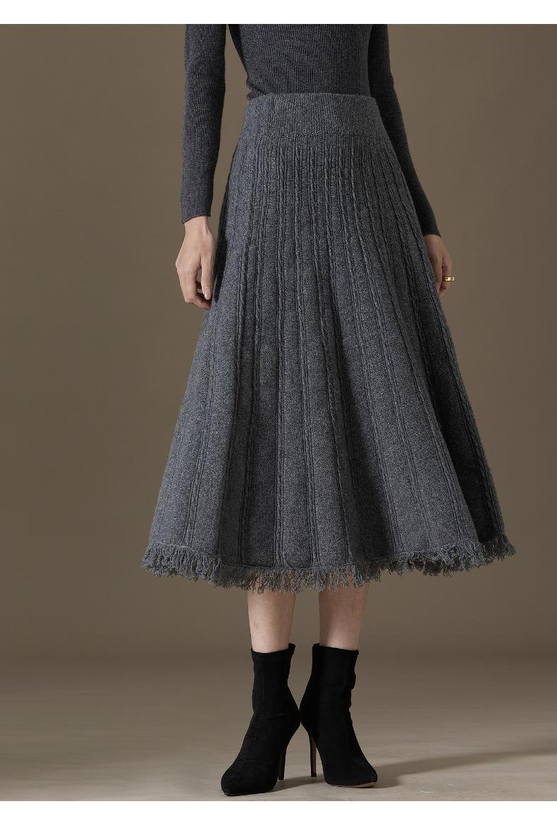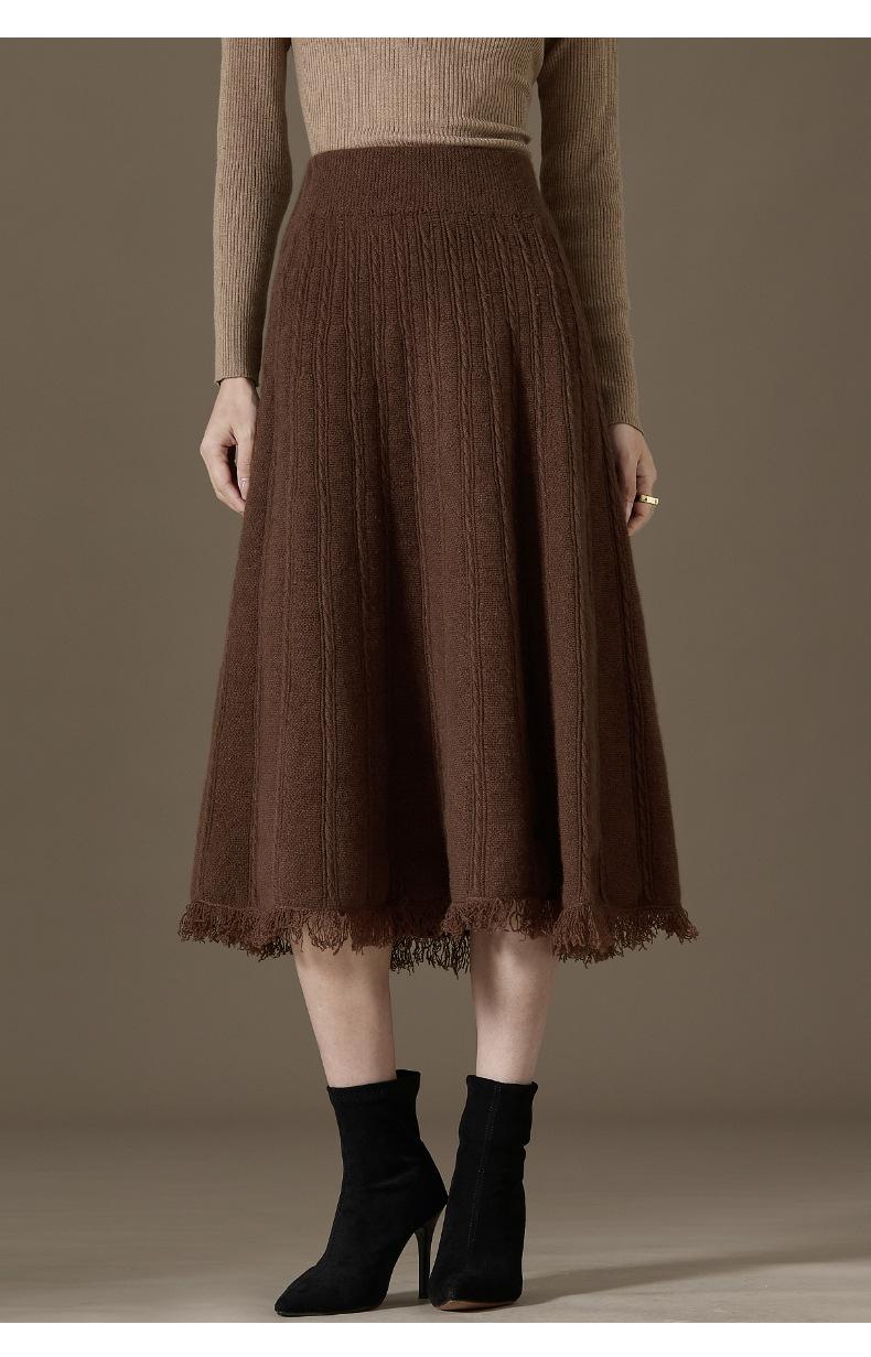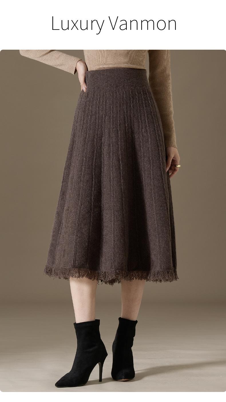 100 Cachemira 2024 Nuevo Falda Línea A Otoño Falda Larga con Flecos Plisada para Mujer Falda Falda Media Longitud