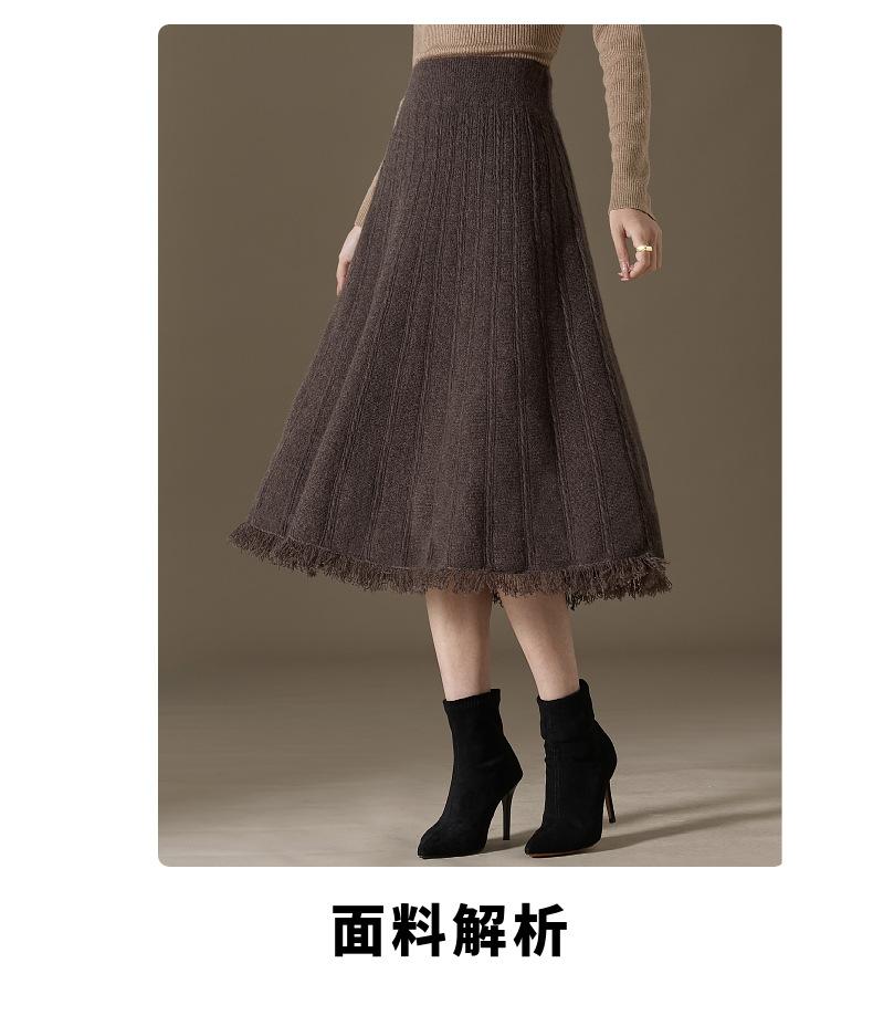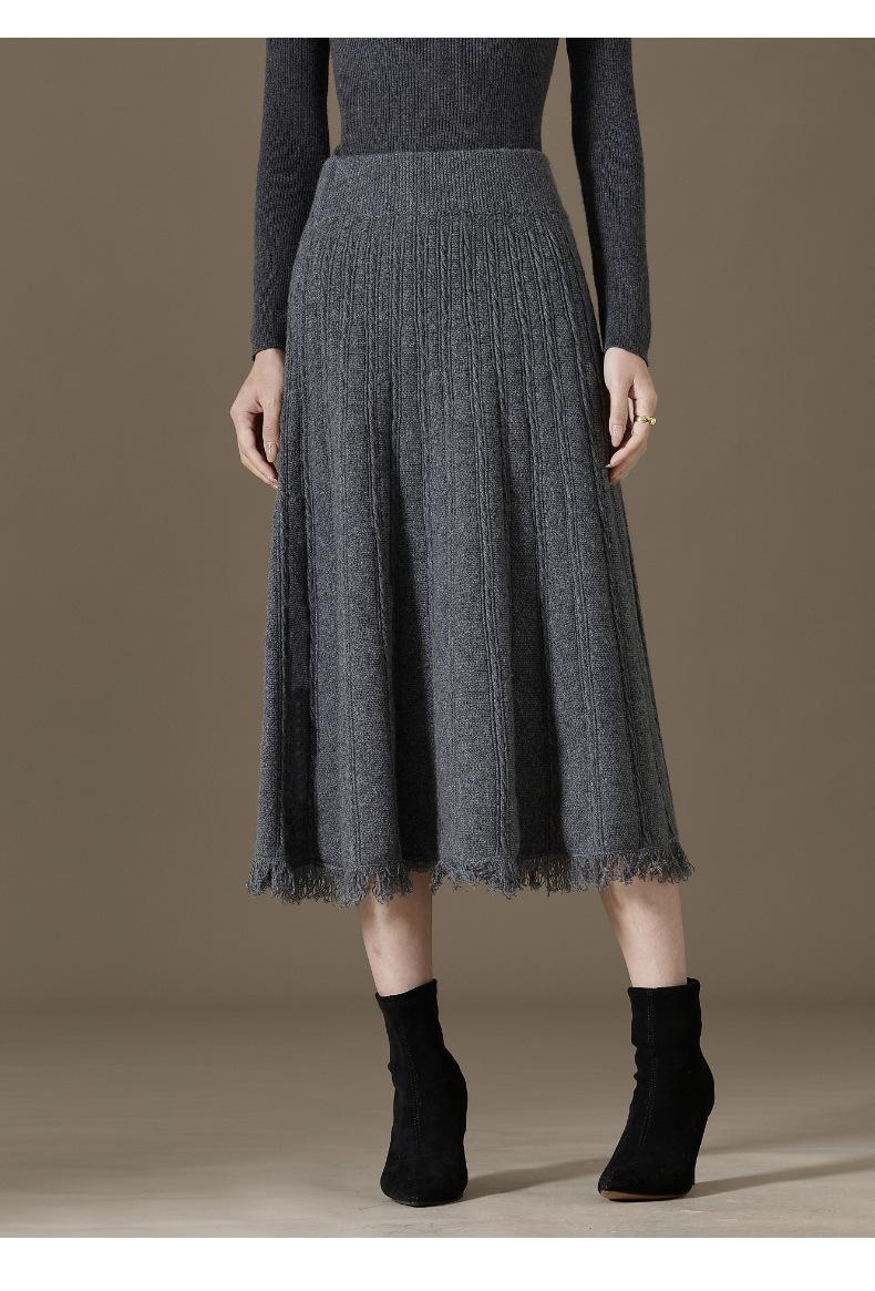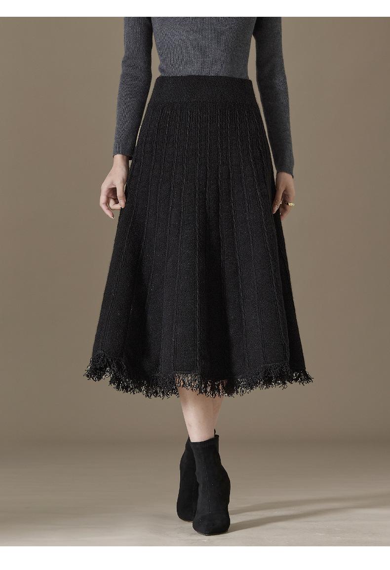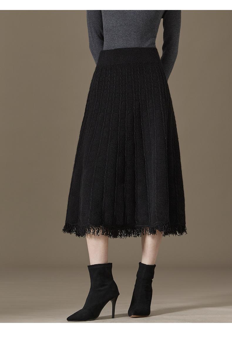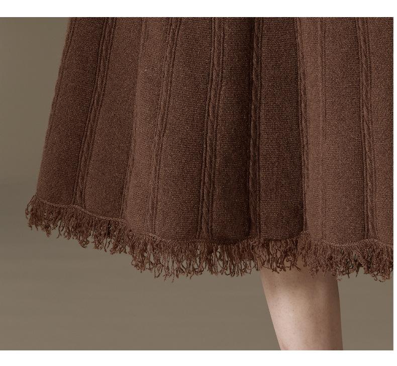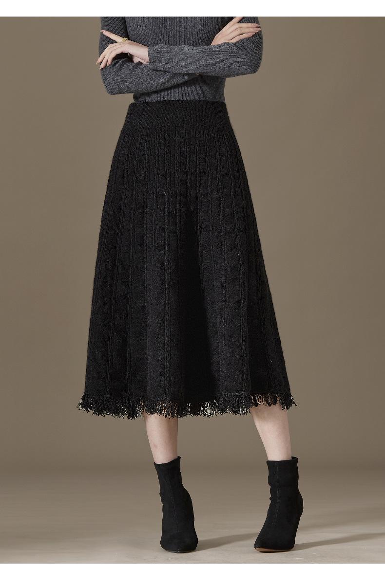 100 Cachemira 2024 Nuevo Falda Línea A Otoño Falda Larga con Flecos Plisada para Mujer Falda Falda Media Longitud