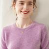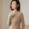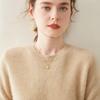 Suéter de Cachemira para Mujer Cuello Redondo Slim Cálido Suéter de Lana Otoño e Invierno Nuevo Suelto Manga Larga Tejido Calado de 7 Agujas Camisa Base Gruesa