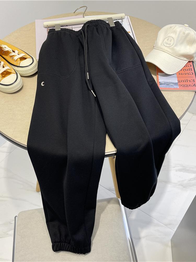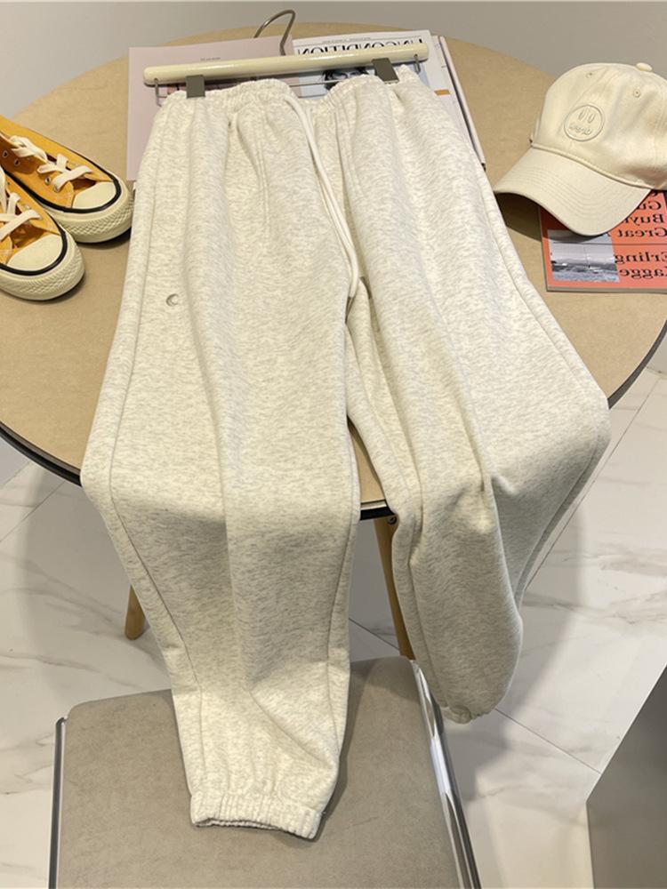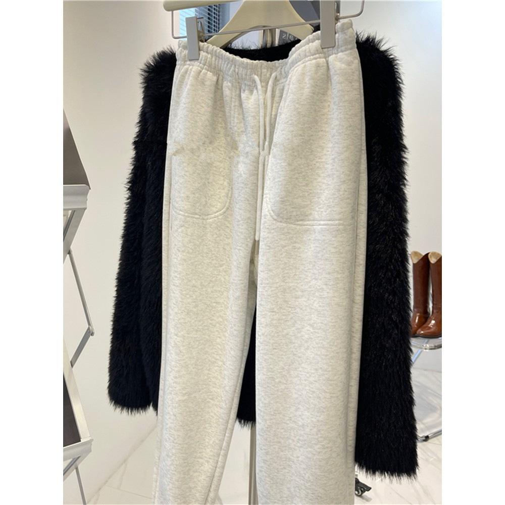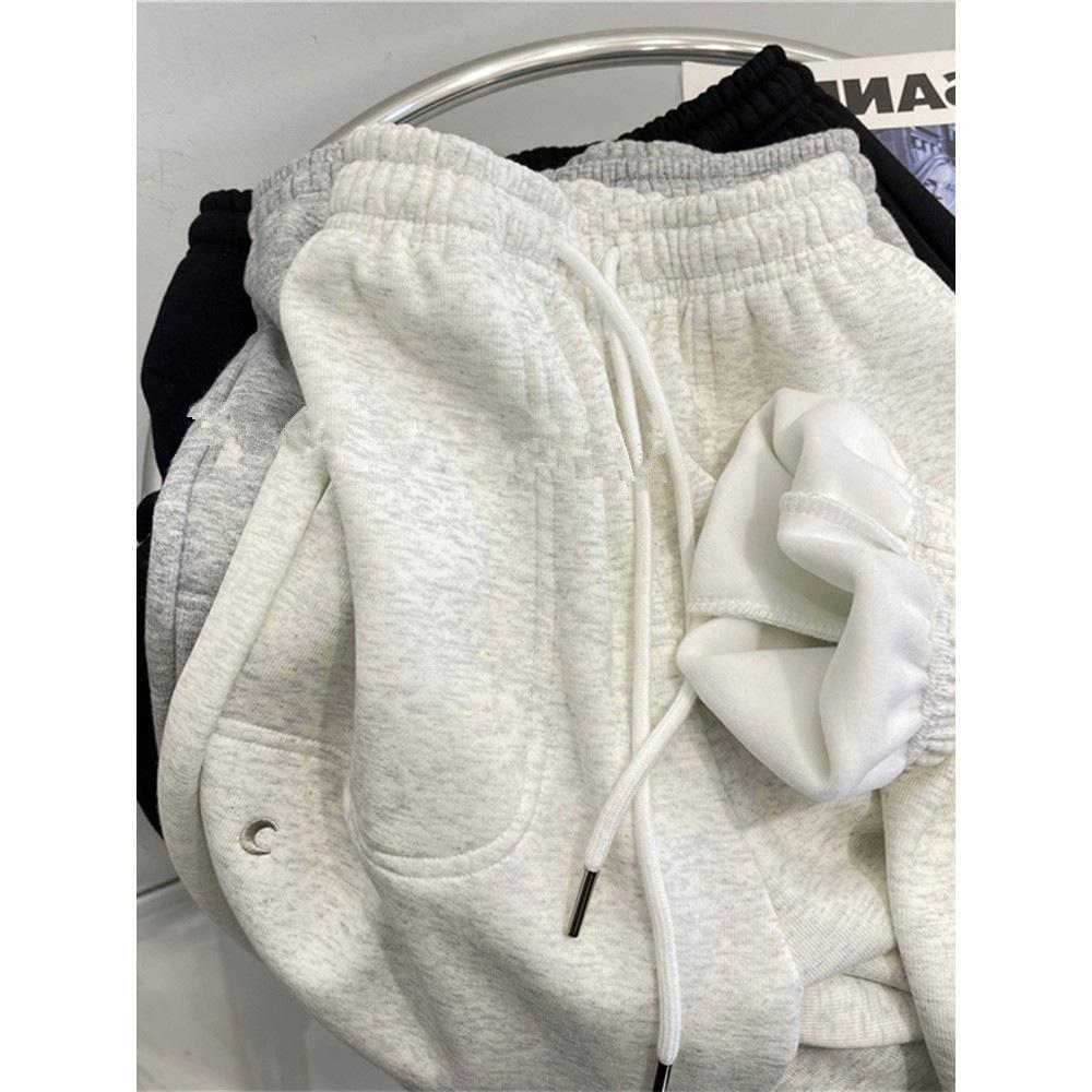 Pantalón deportivo gris claro con forro polar para mujer 2024 otoño e invierno nuevo viento perezoso cintura alta pie mercancía europea pantalones harem marea