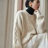 Suéter de cachemira 100% puro para mujer, cuello alto, hilo trenzado grueso, camisa de punto de cachemira, otoño e invierno, nuevo