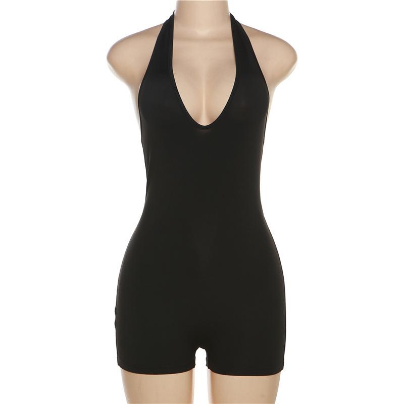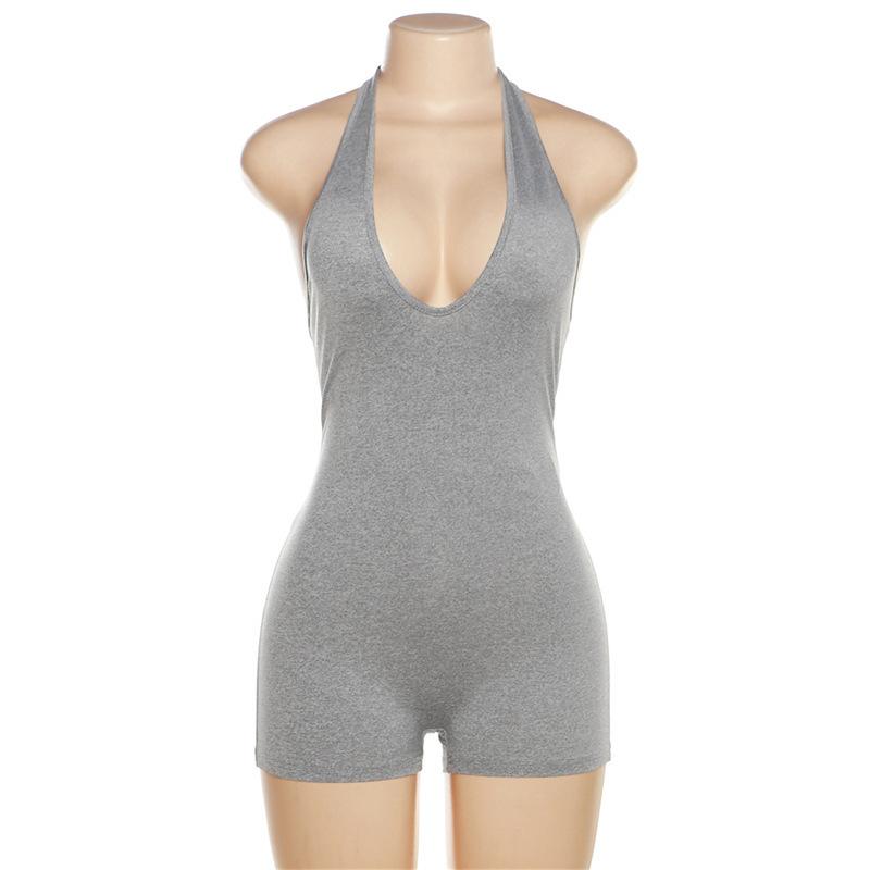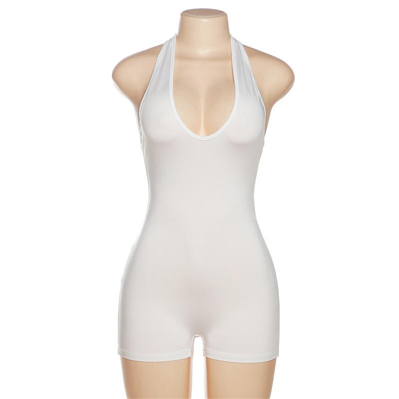 Estilo Europeo y Americano 2023 Verano Nuevo Sexy Casual Cuello Bajo Halter Cintura Alta Ajustado Espalda Descubierta Mono Corto de Una Pieza para Mujer