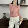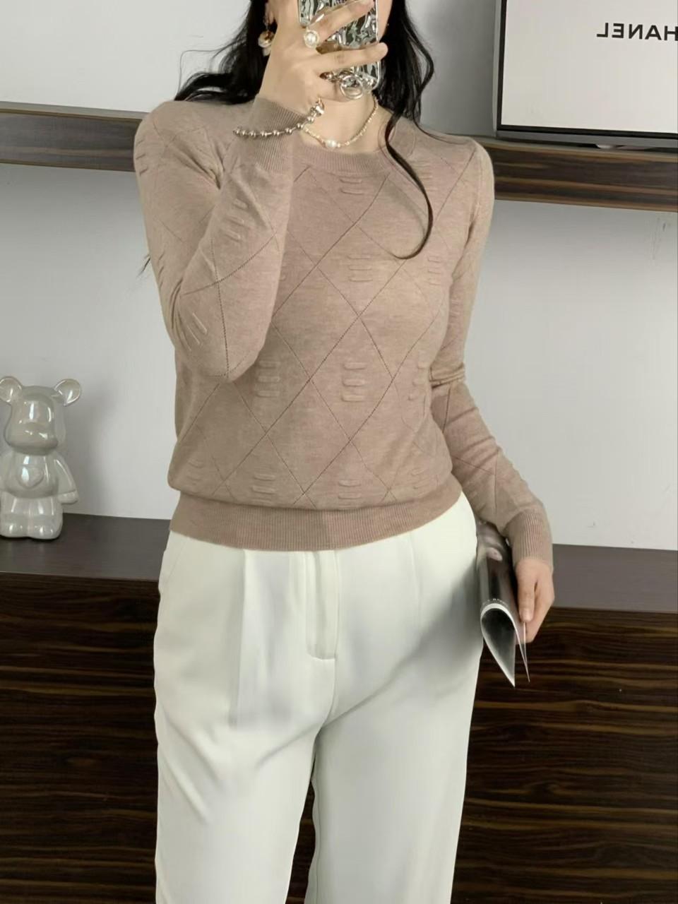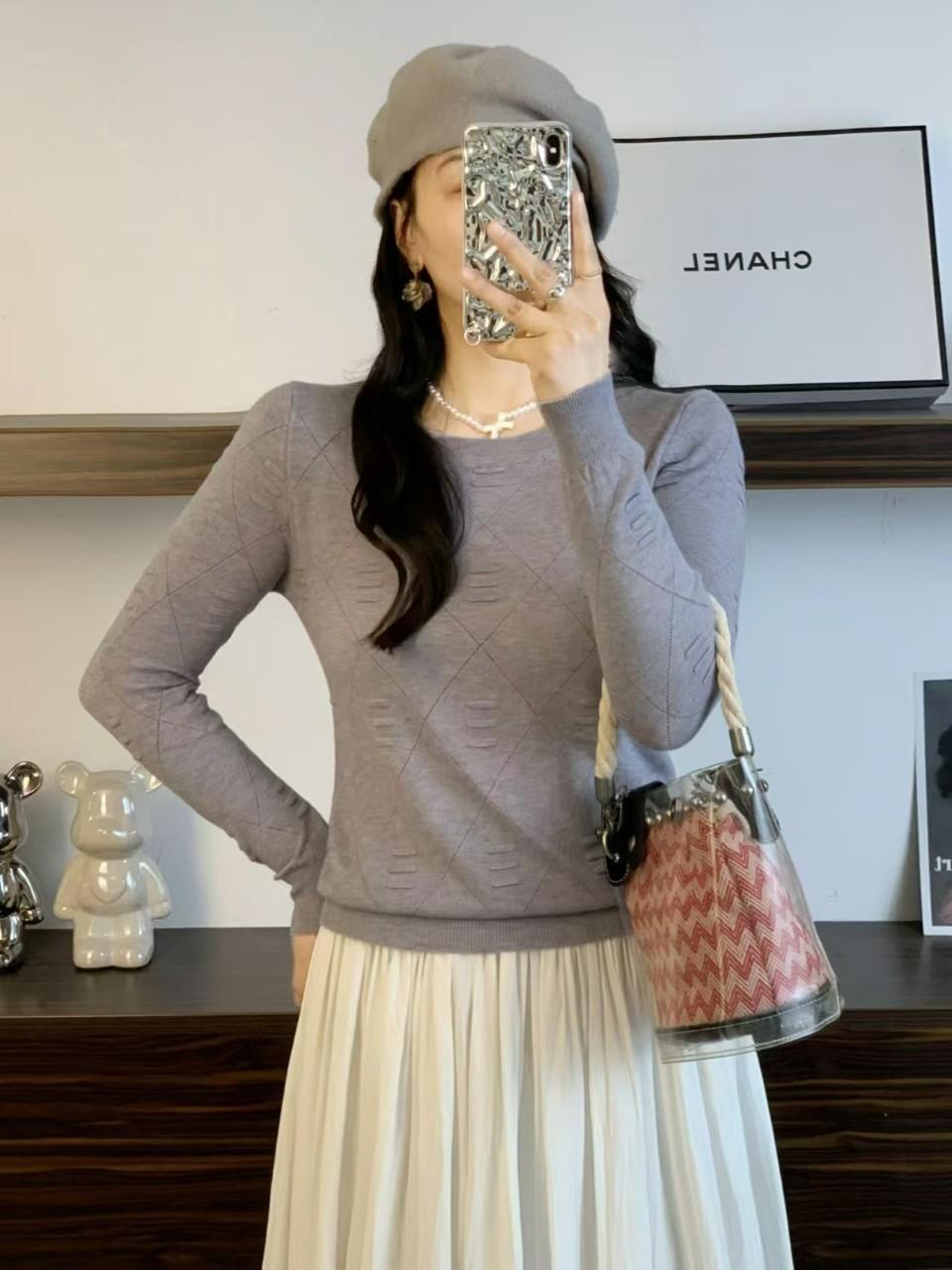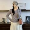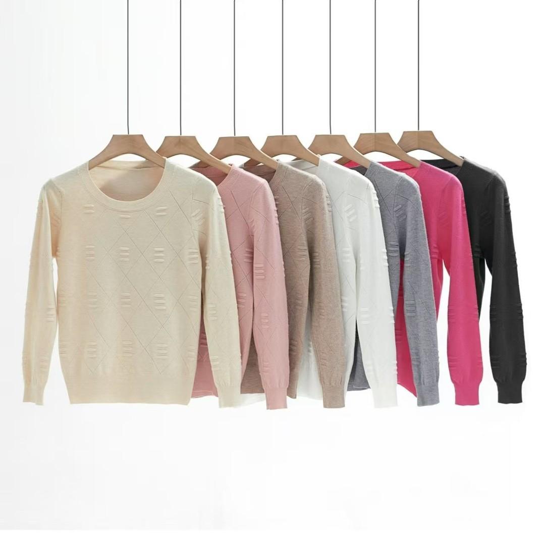 Otoño e Invierno Nuevo Suéter Elegante de Punto Combinable Manga Larga Cuello Redondo Holgado Color Sólido Top Camiseta Base Suéter para Mujer