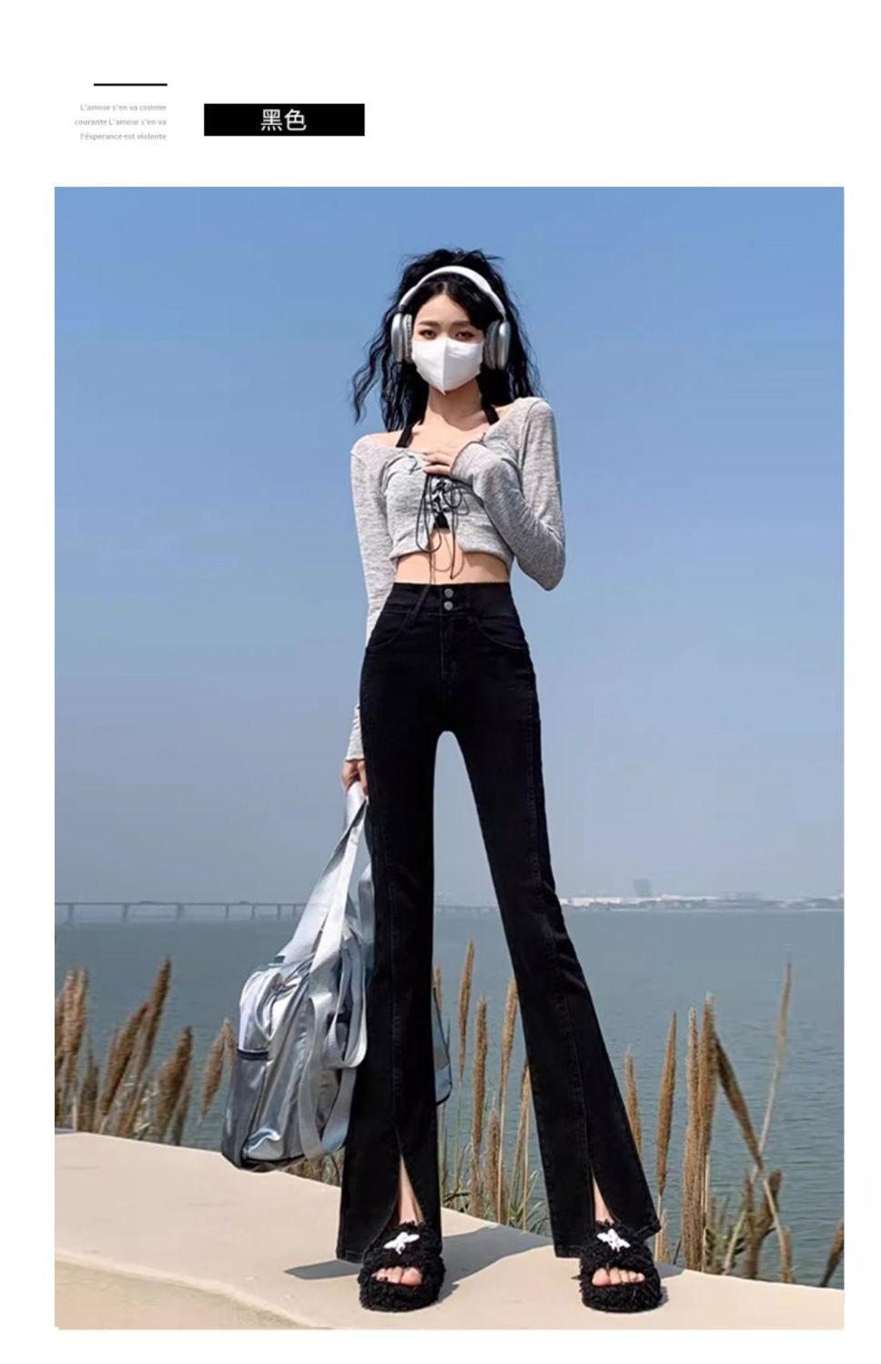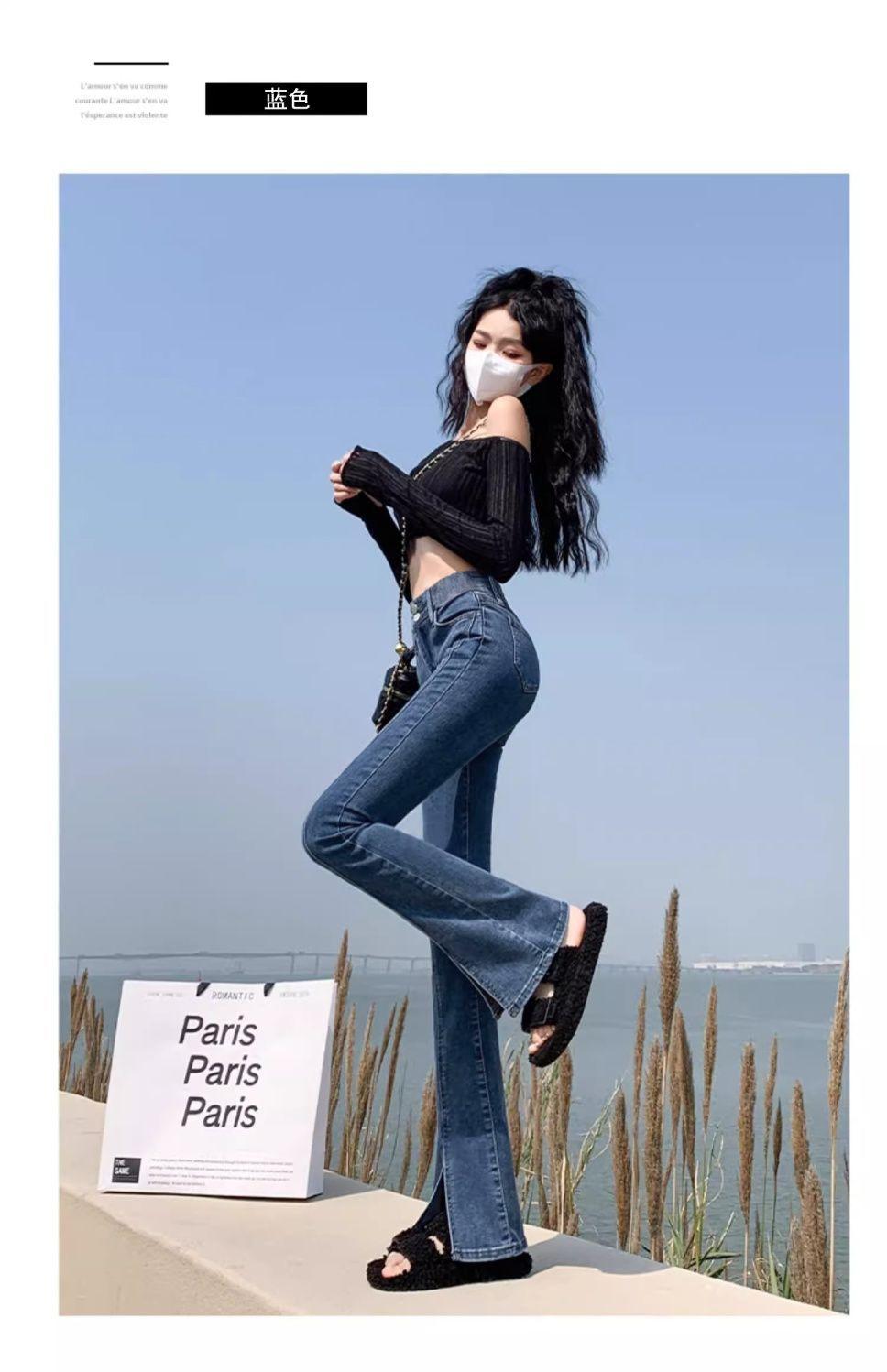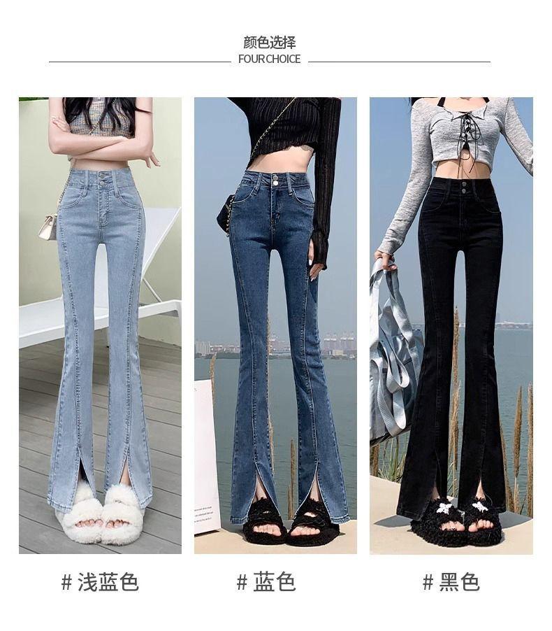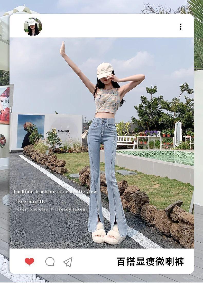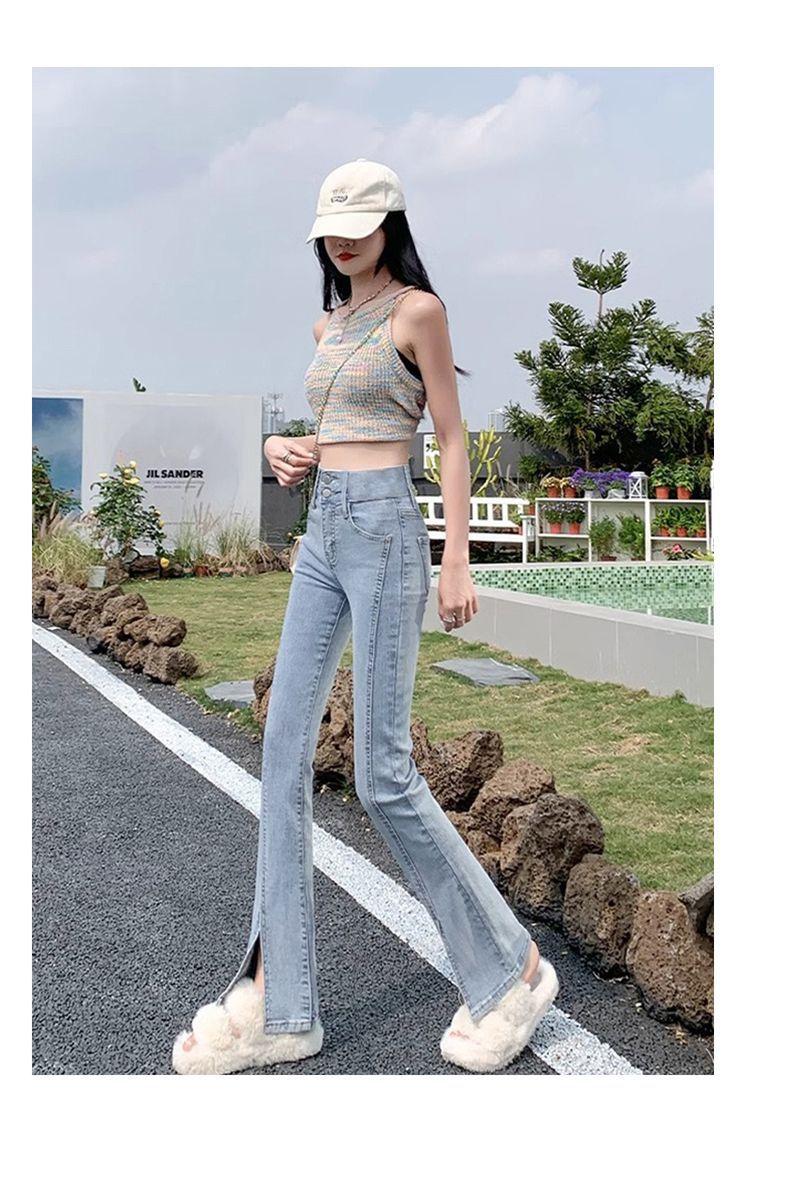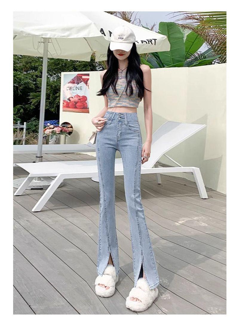 Pantalones acampanados con abertura en color claro, microjeans para mujer, novedad de verano 2024, pantalones adelgazantes de cintura alta con diseño de herradura