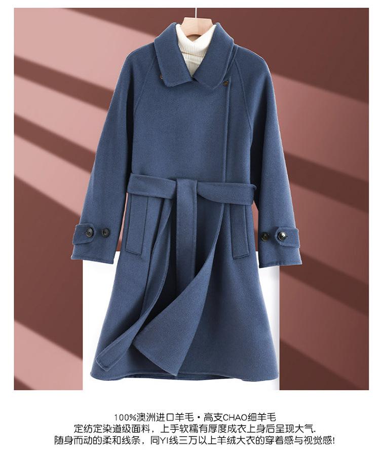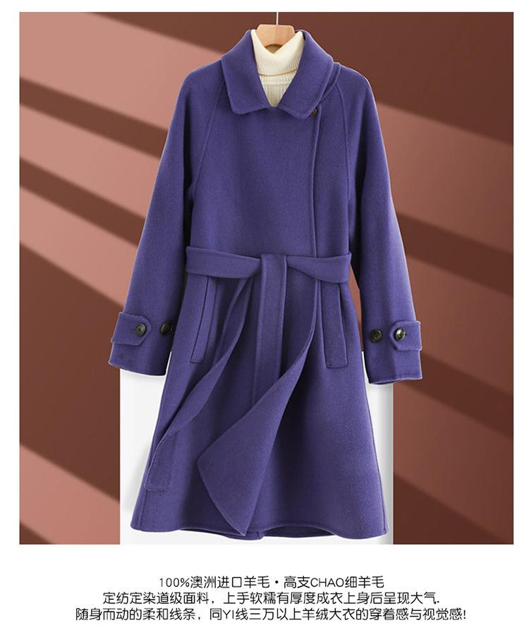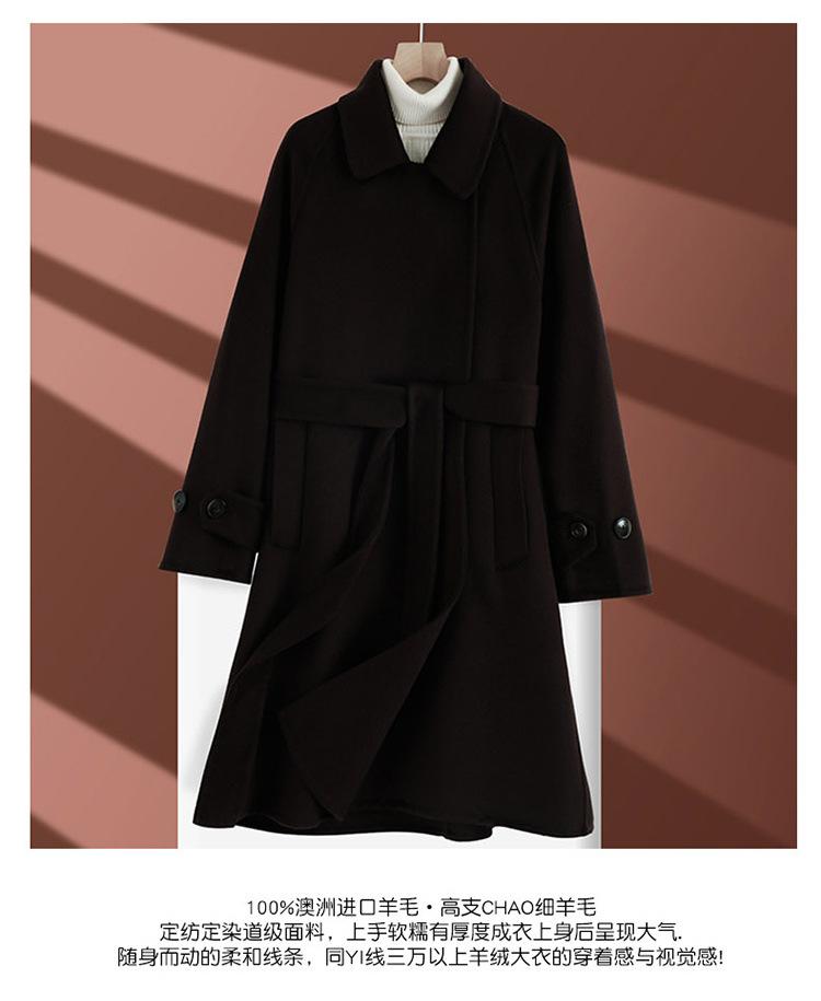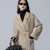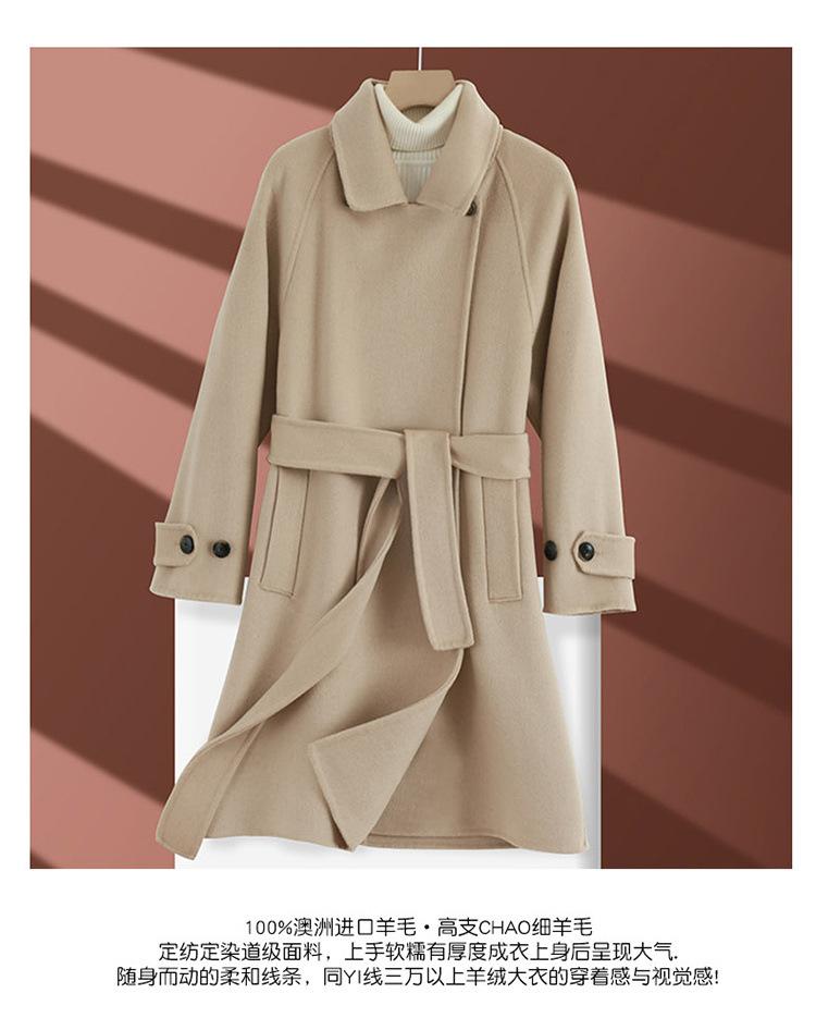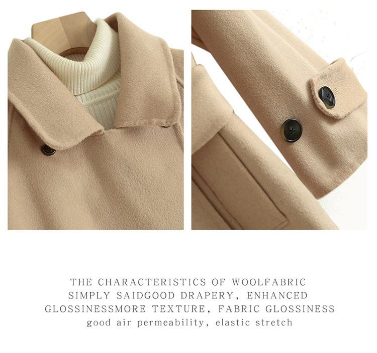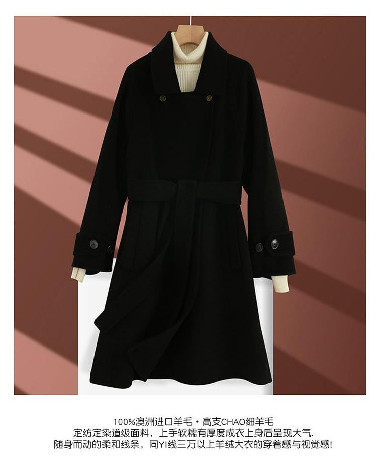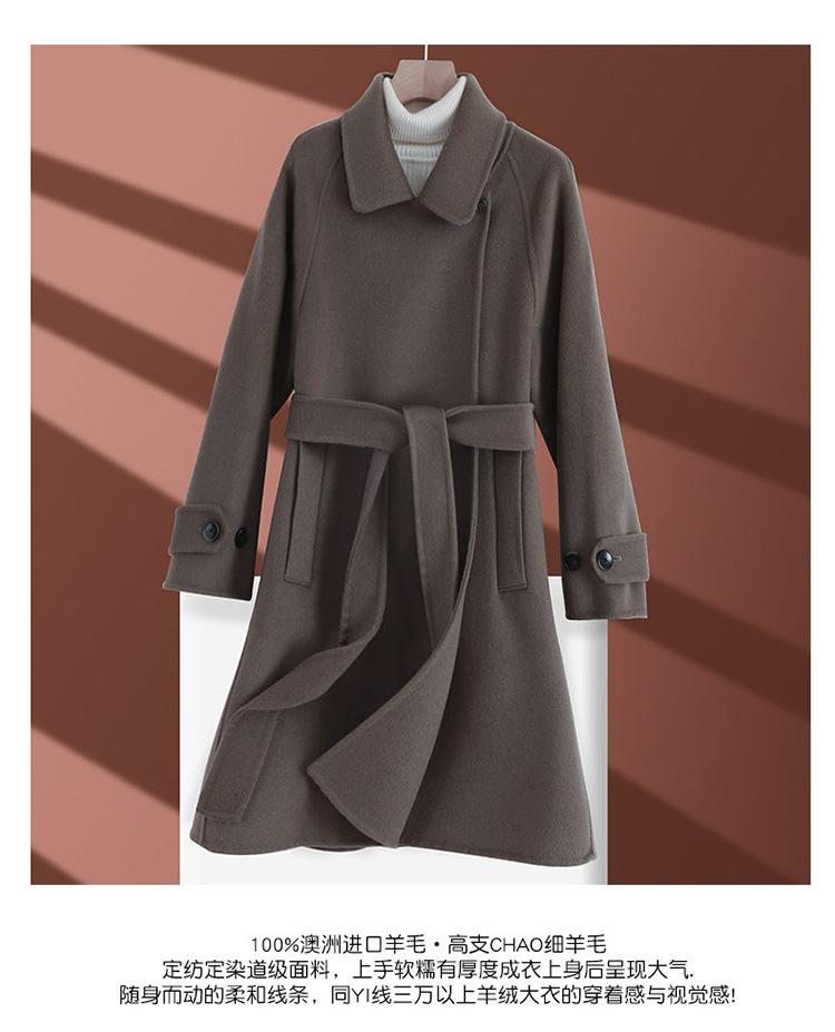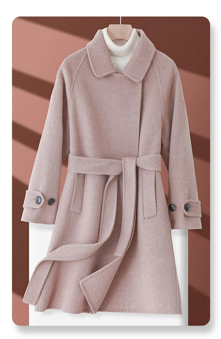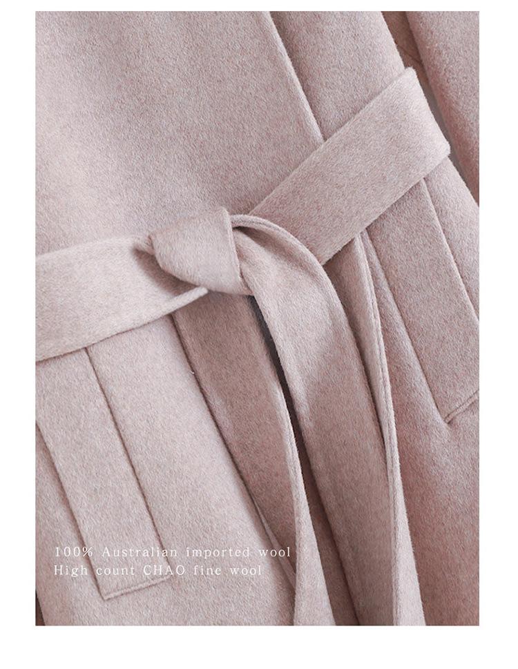 Abrigo de Cachemira de Doble Vista Nuevo de Otoño e Invierno para Mujer de Largo Medio con Cordones Manga de Color Sólido Imagen para Abrigo de Lana Pura Petite