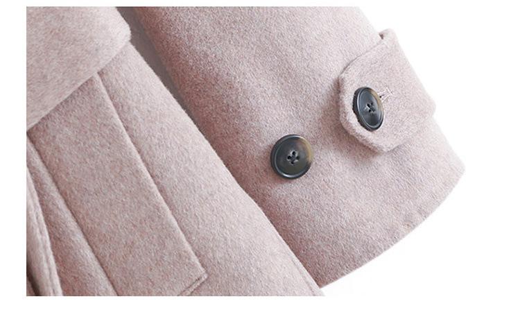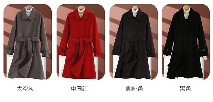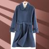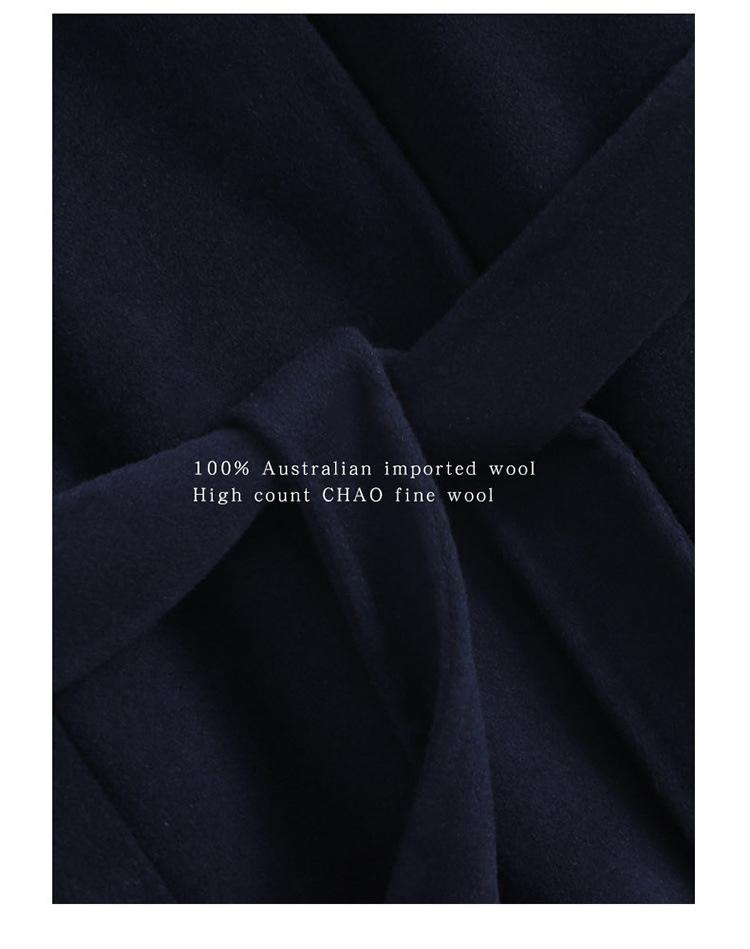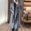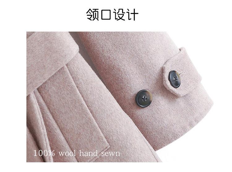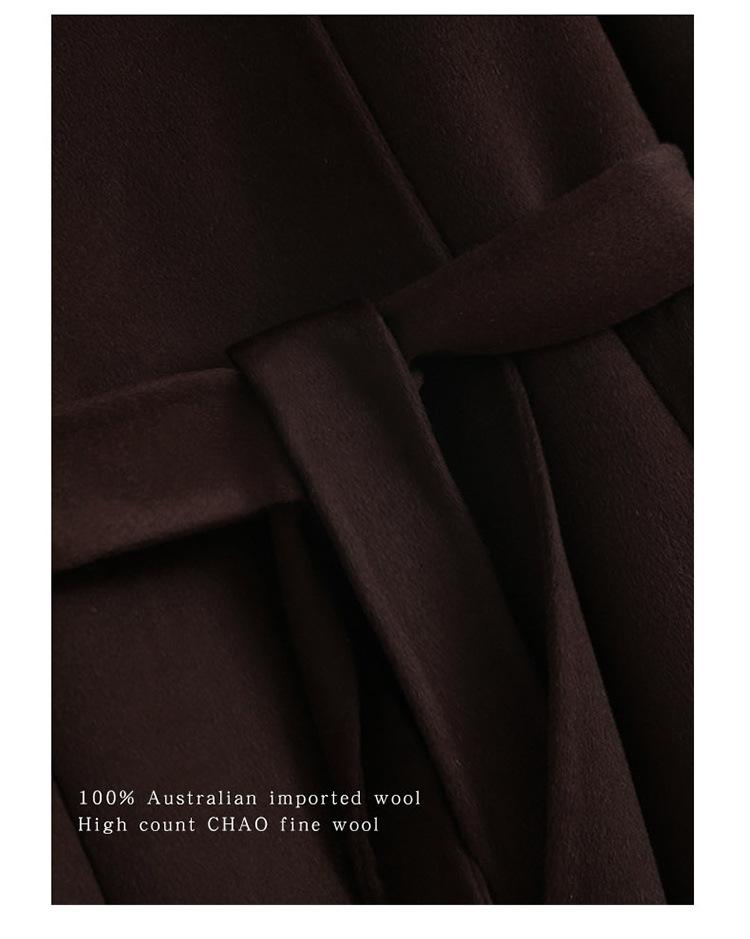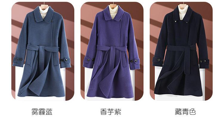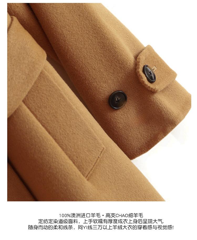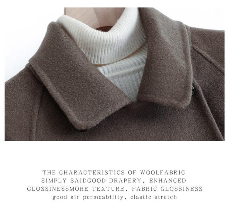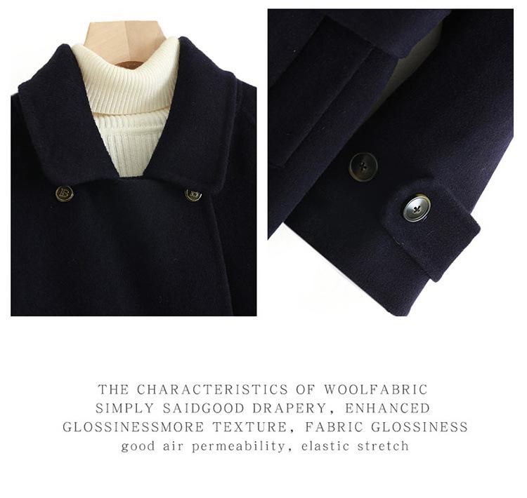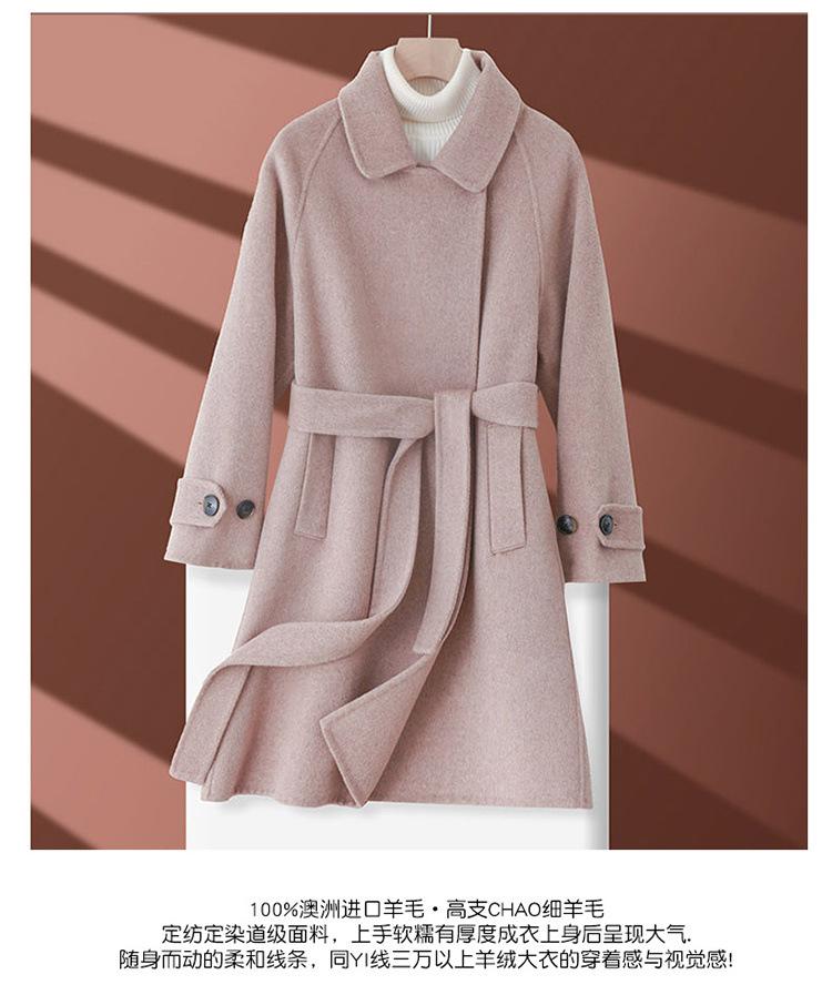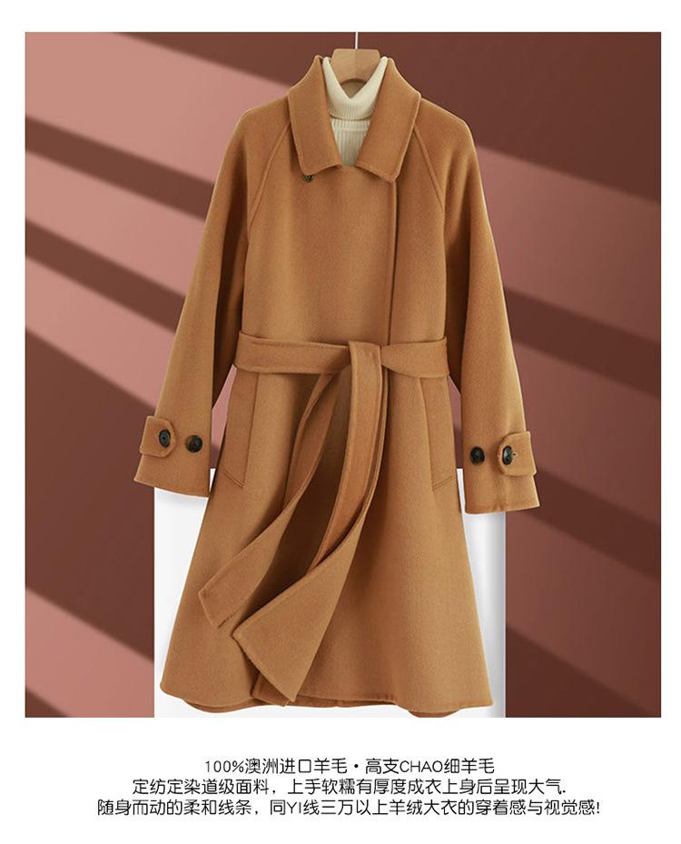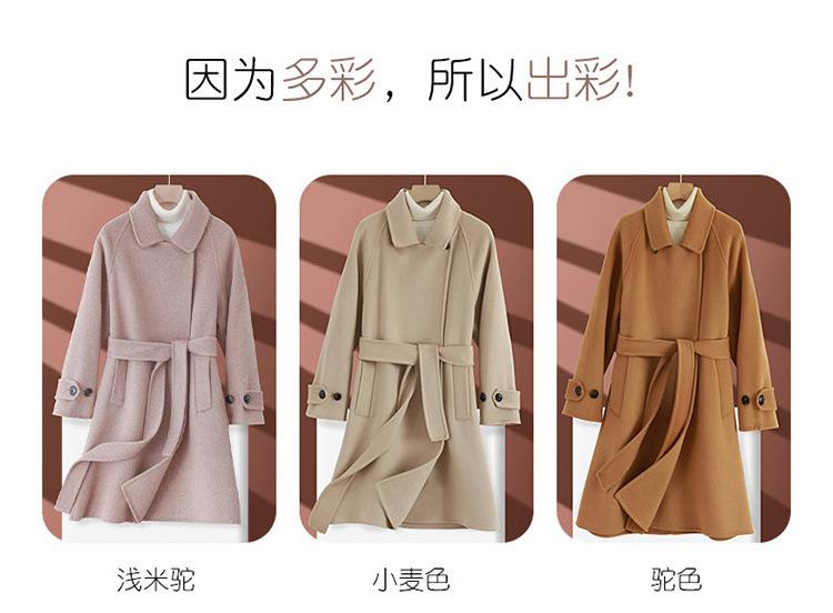 Abrigo de Cachemira de Doble Vista Nuevo de Otoño e Invierno para Mujer de Largo Medio con Cordones Manga de Color Sólido Imagen para Abrigo de Lana Pura Petite