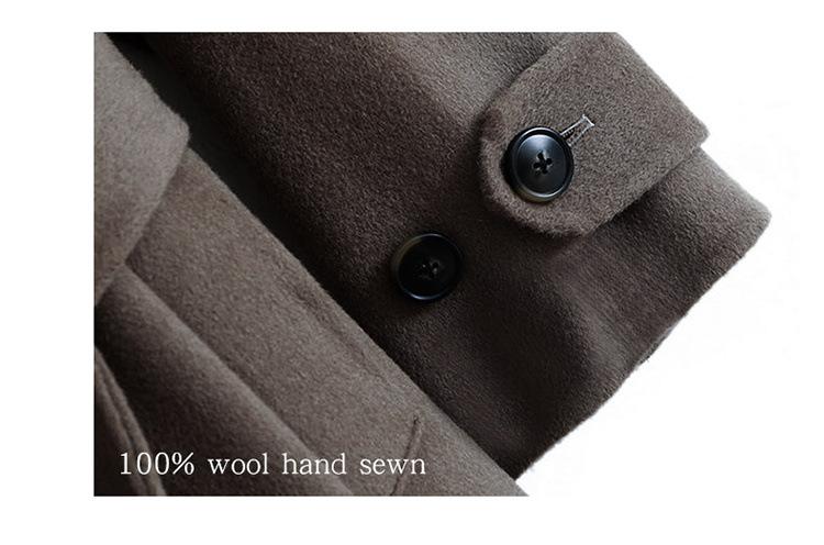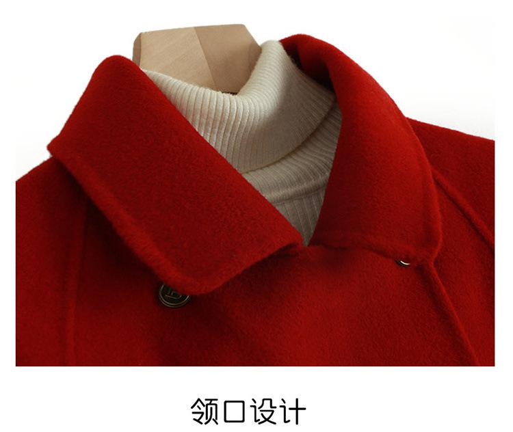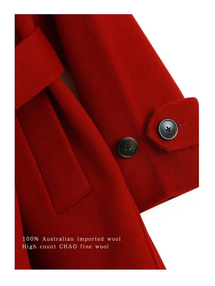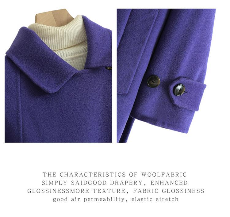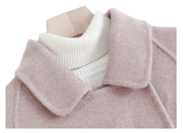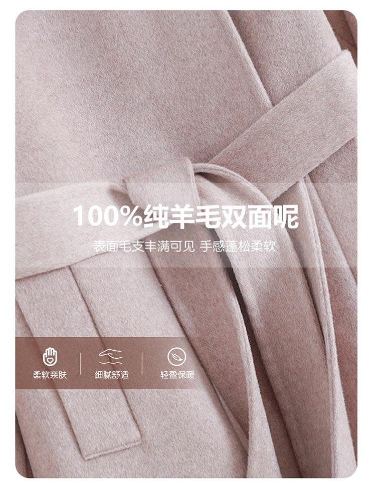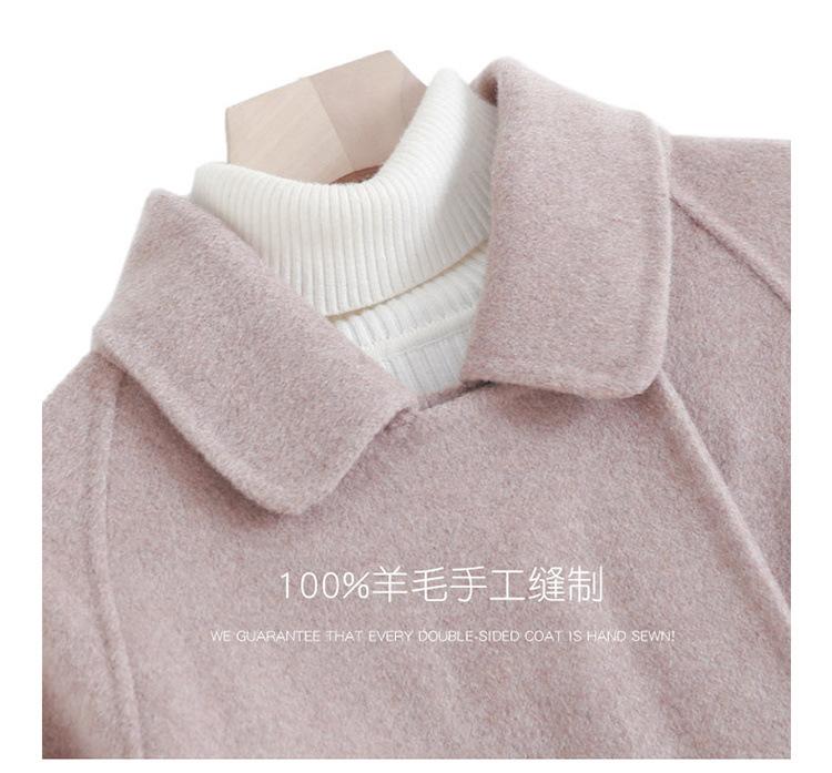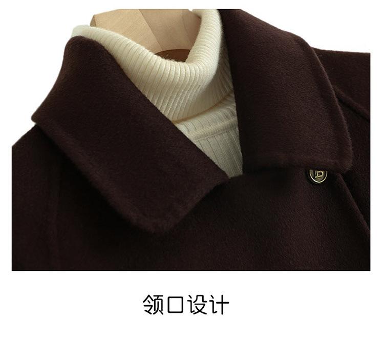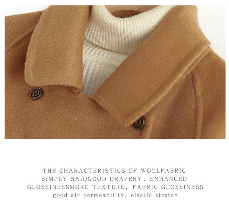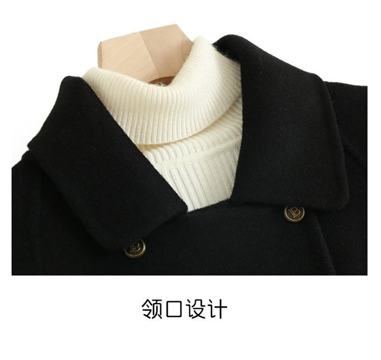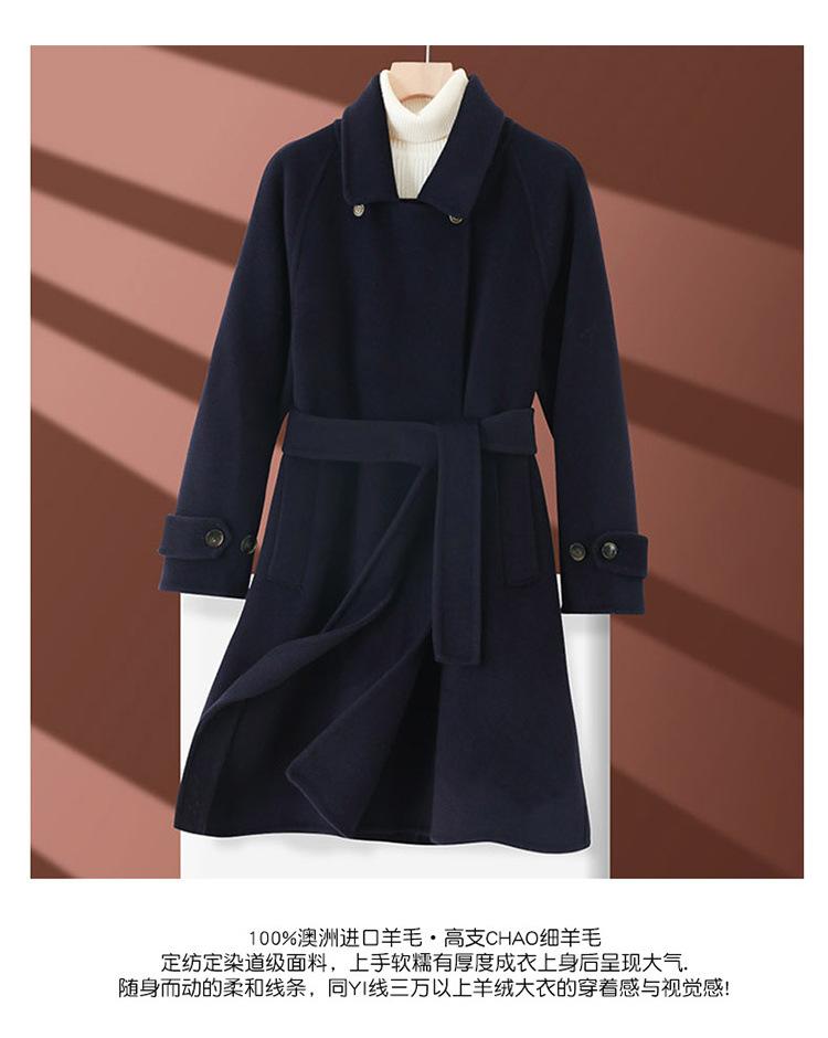 Abrigo de Cachemira de Doble Vista Nuevo de Otoño e Invierno para Mujer de Largo Medio con Cordones Manga de Color Sólido Imagen para Abrigo de Lana Pura Petite