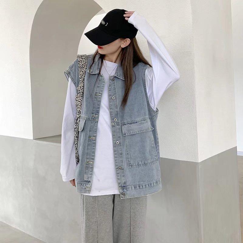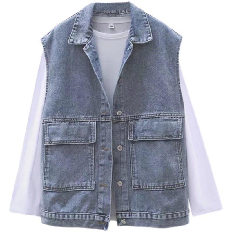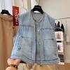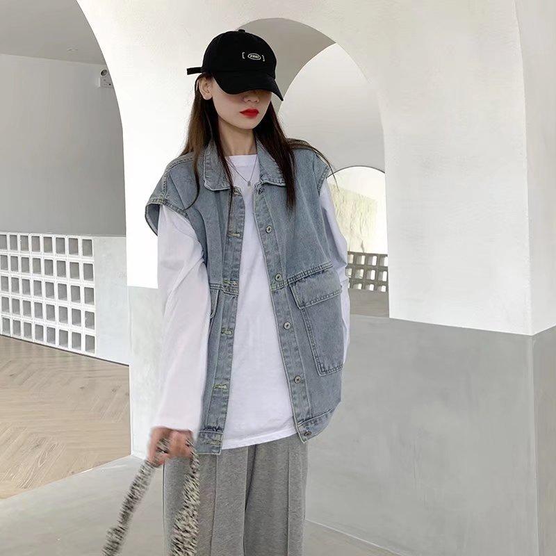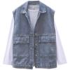 Chaleco de mezclilla de verano para mujer 2022 Combinación total Nuevo Retro Suelto Sin mangas Ropa exterior Chaqueta de traje delgada y a la moda para verano