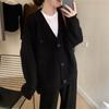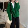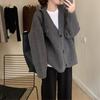 Cárdigan de Punto de Color Puro con Cuello en V Estilo Coreano Ropa Exterior para Mujer Primavera y Otoño Ropa Exterior Estilo Holgado Perezoso Moda Suéter Suave y Ceroso Top