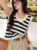 Camisola de punto a rayas con huecos para mujer, prenda exterior de verano, diseño interior, camiseta corta sin mangas para chica atractiva