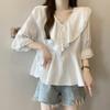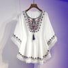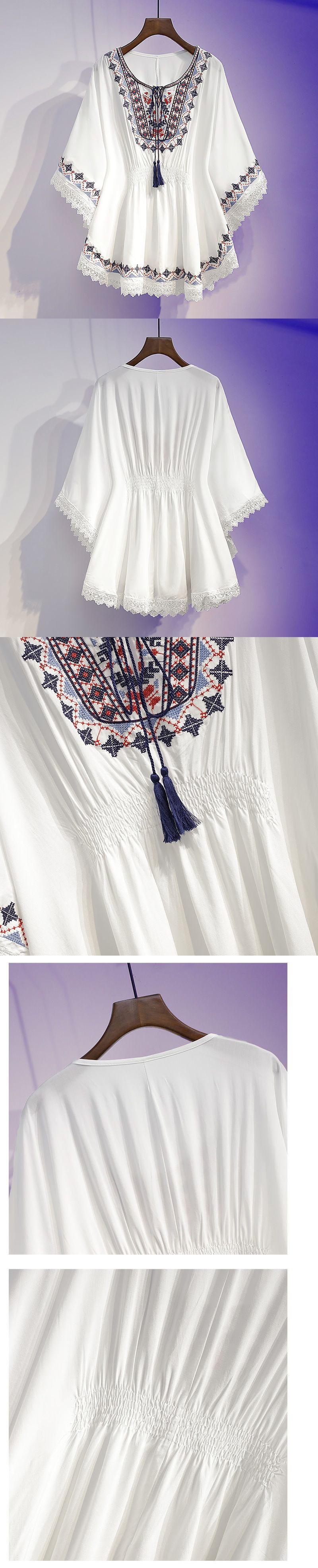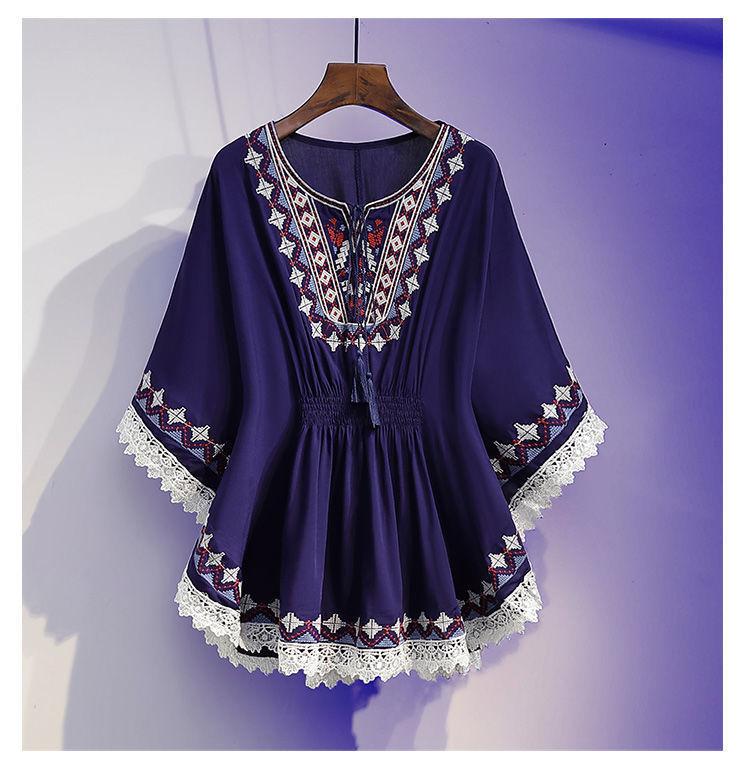 Camisas para mujer, verano 2024, nuevo estilo, ropa de talla grande para mujer, aspecto adelgazante que cubre el vientre, camisa de gasa de estilo étnico retro.