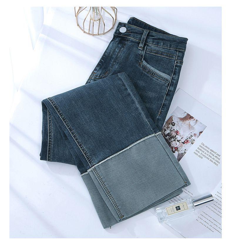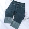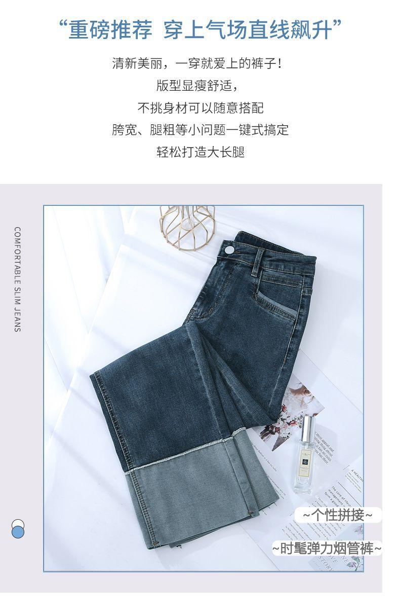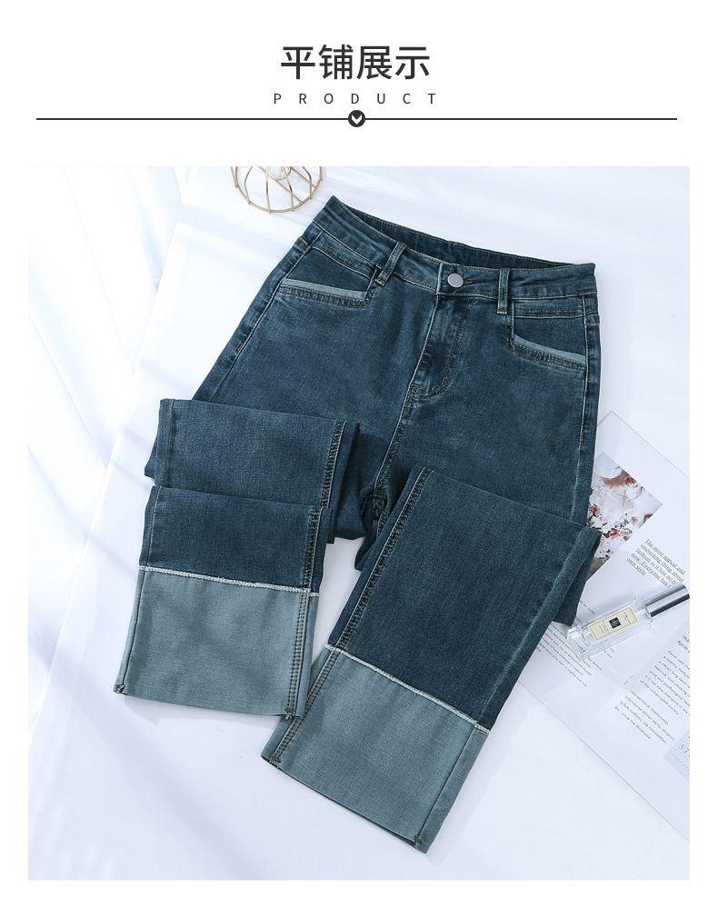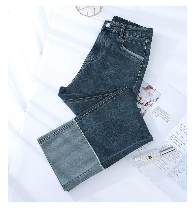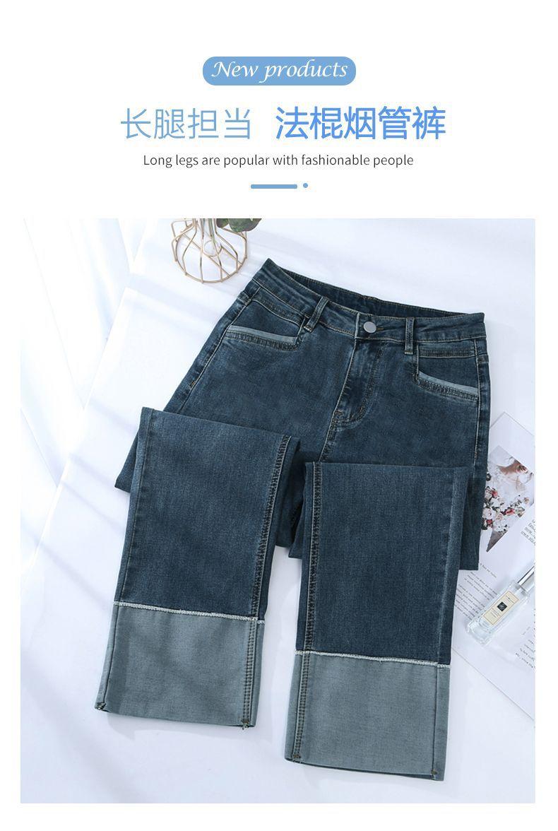 Pantalones vaqueros rectos de cintura alta con remangados vintage para mujer, primavera 2024, nuevos pantalones adelgazantes con costuras elásticas.