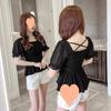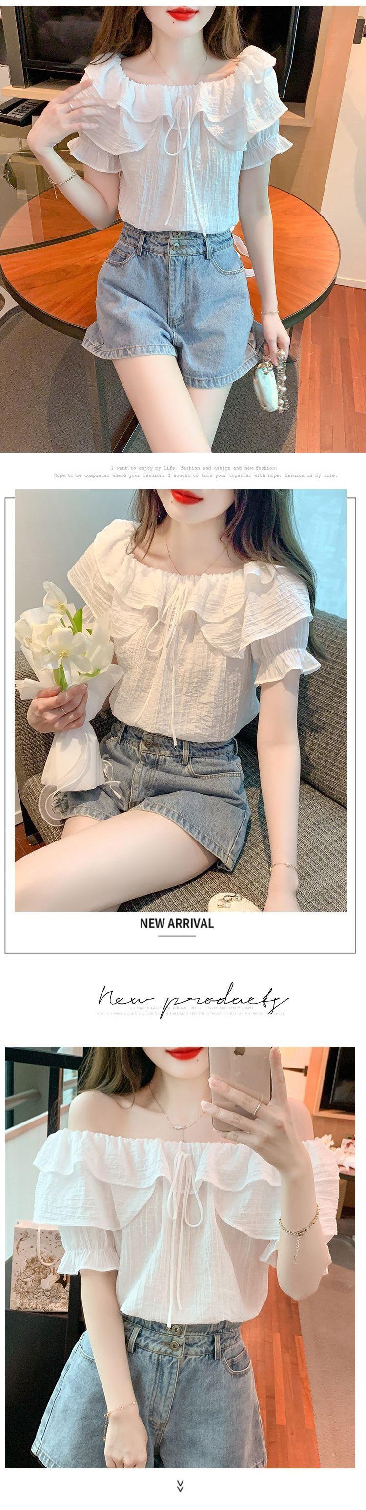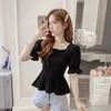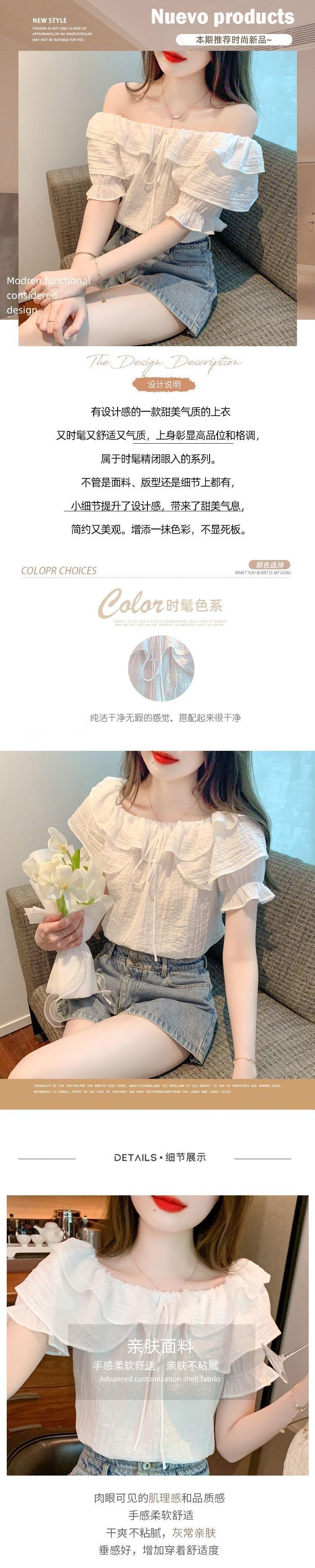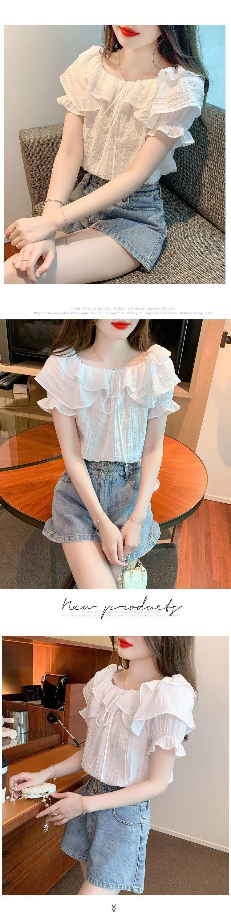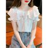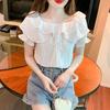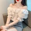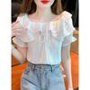 Blusa francesa con volantes para mujer, diseño veraniego, elegante camisa con cordón, camisa de gasa con mangas abullonadas.