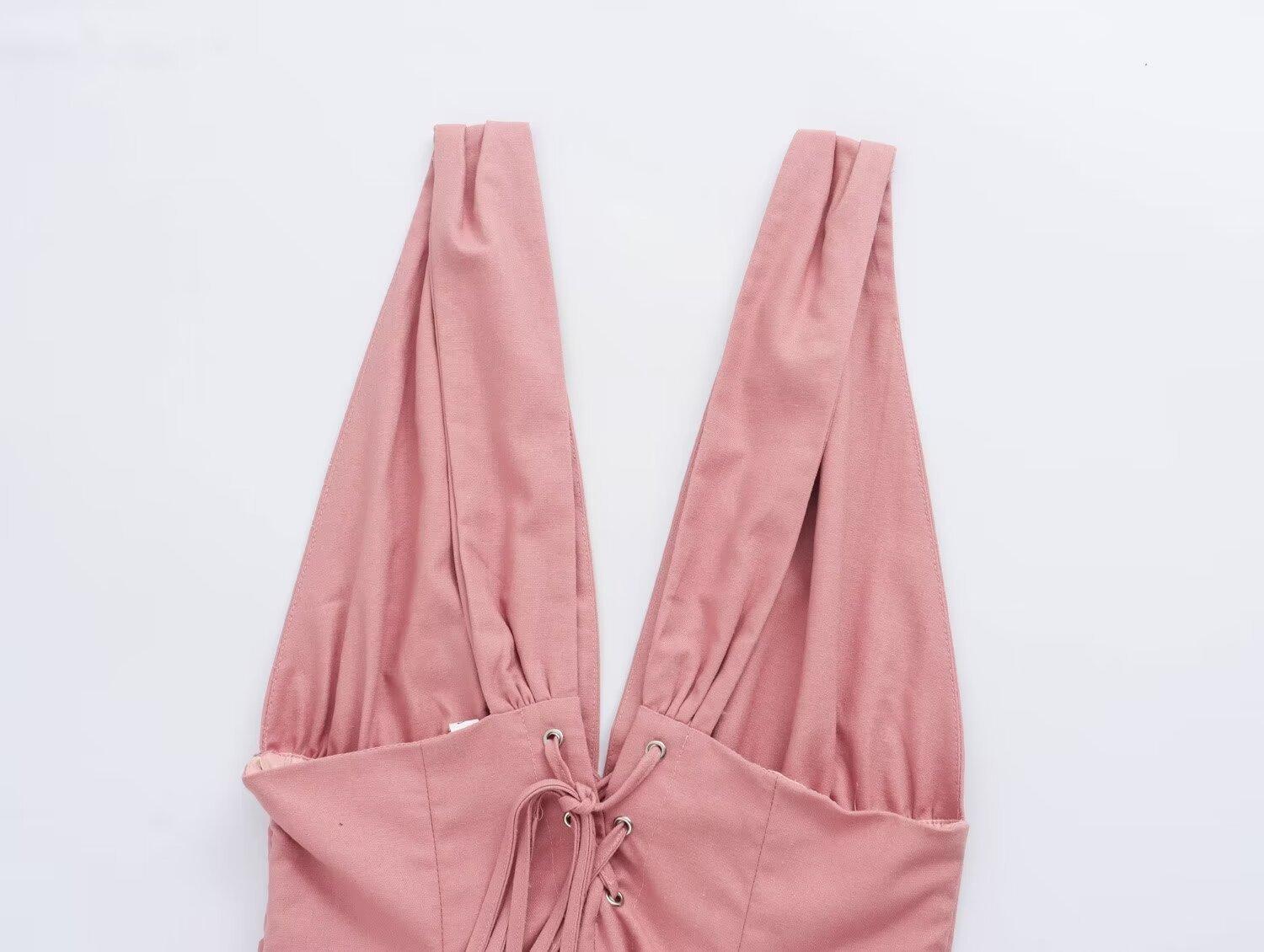 Vestido ajustado con cuello en V, sin mangas y tirantes, para mujer europea y americana, verano 2024, comercio transfronterizo de Amazon