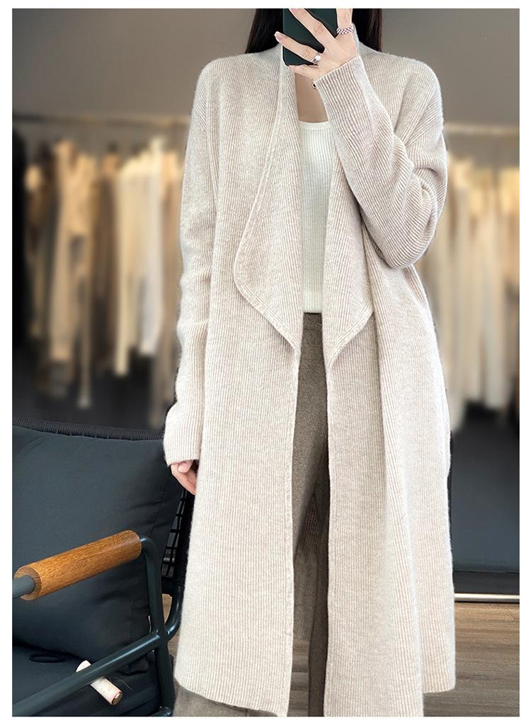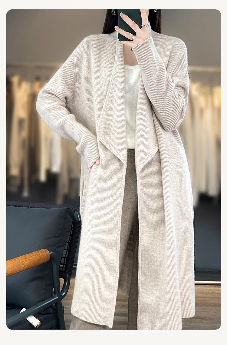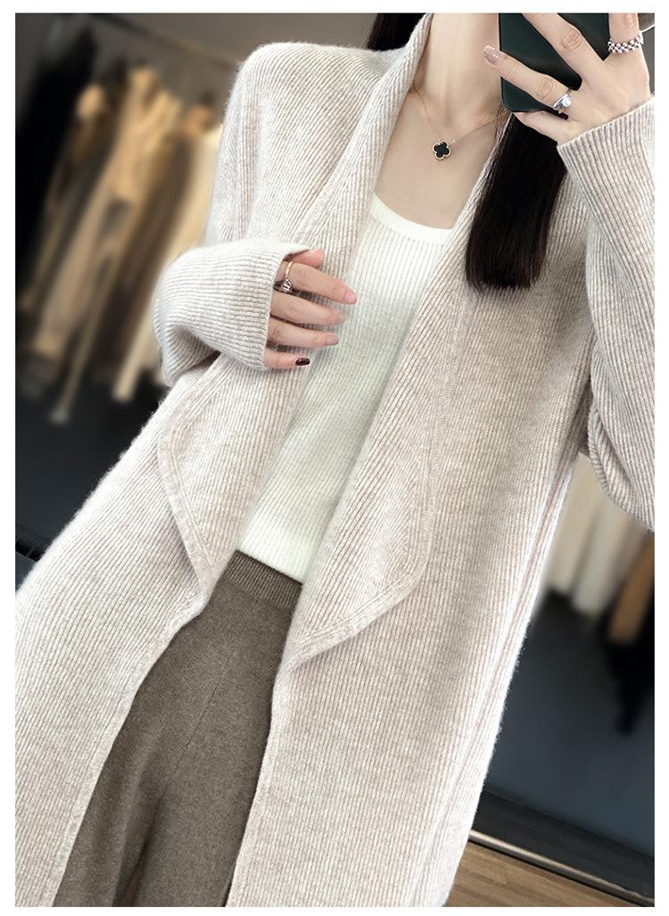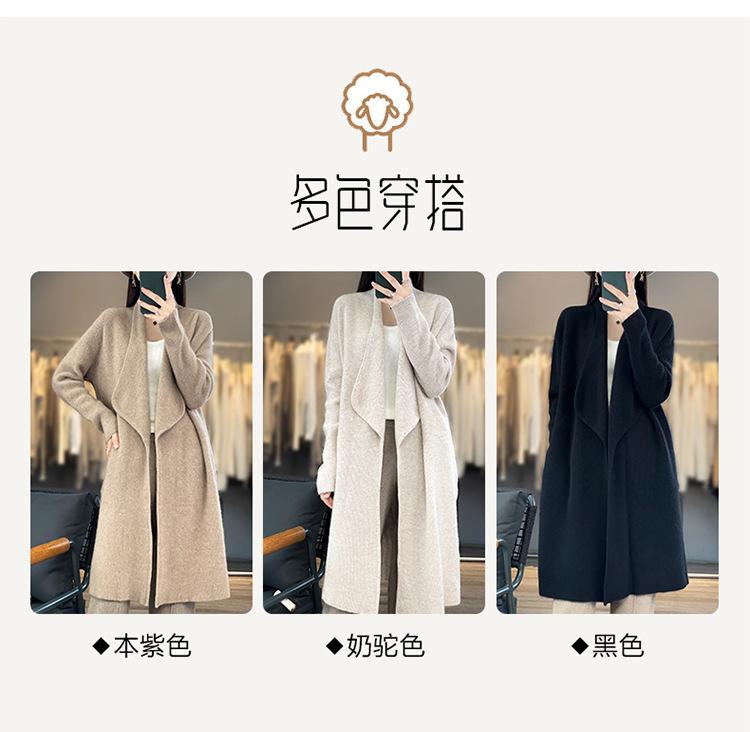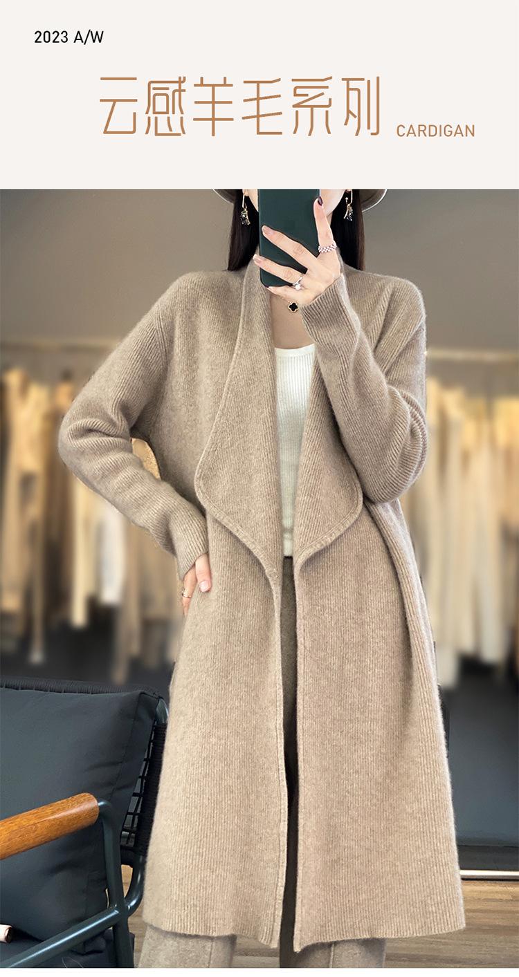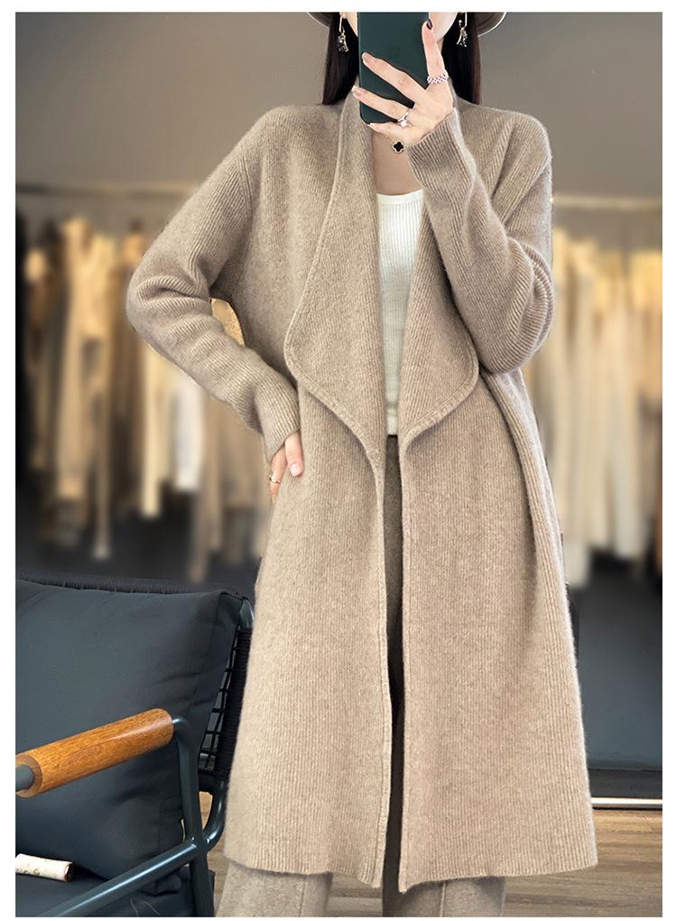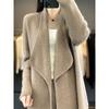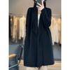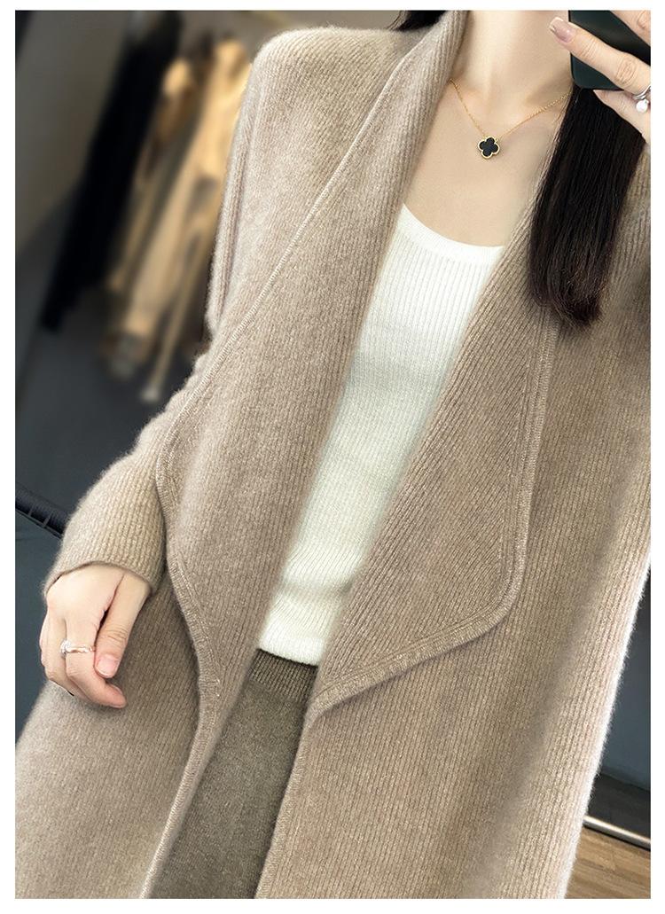 Abrigo de lana 100% pura para mujer, otoño e invierno 2023, cárdigan de punto grueso, abrigo holgado de longitud media