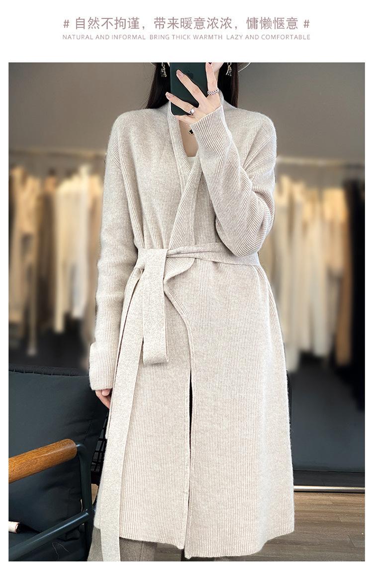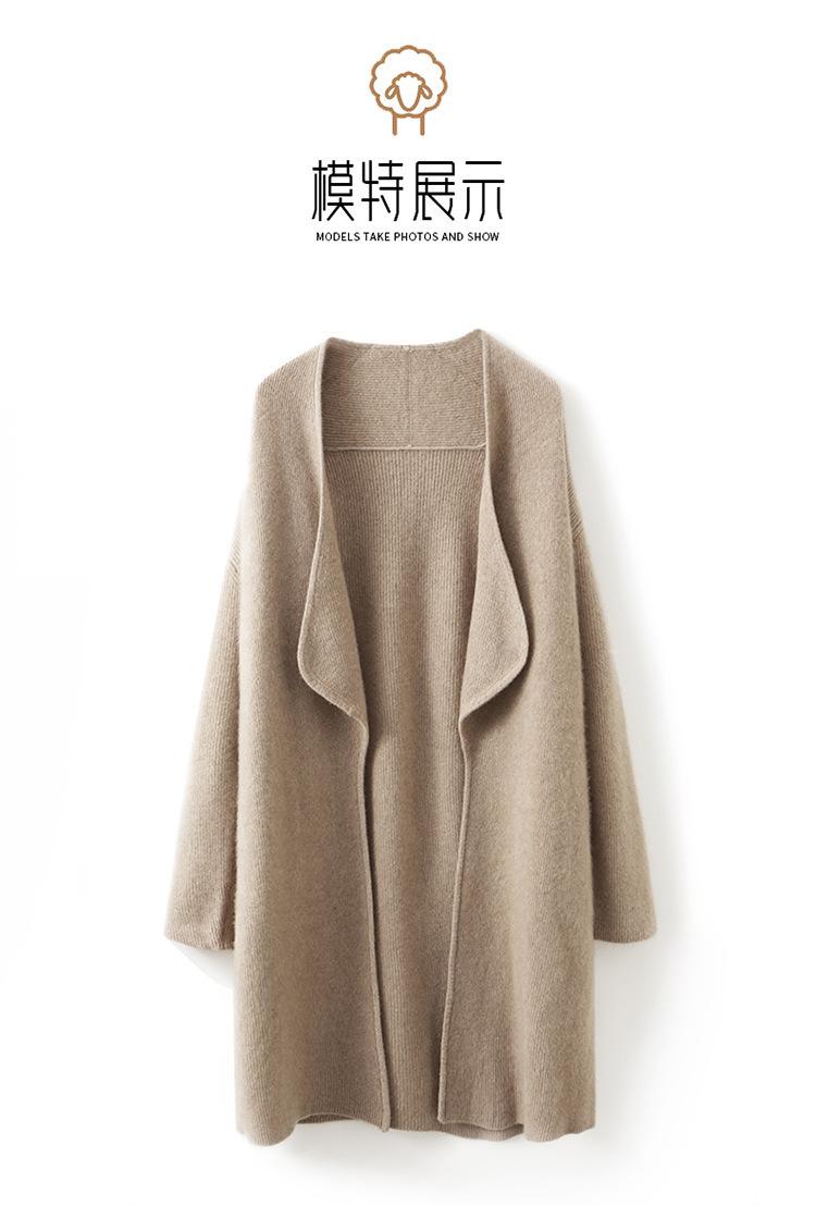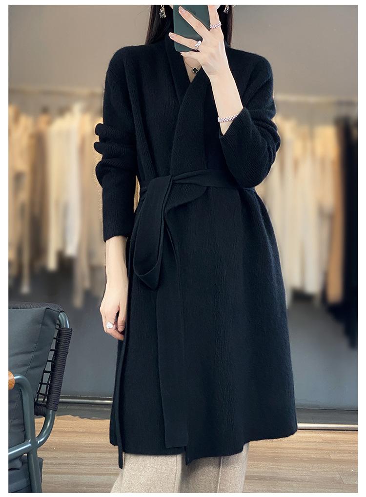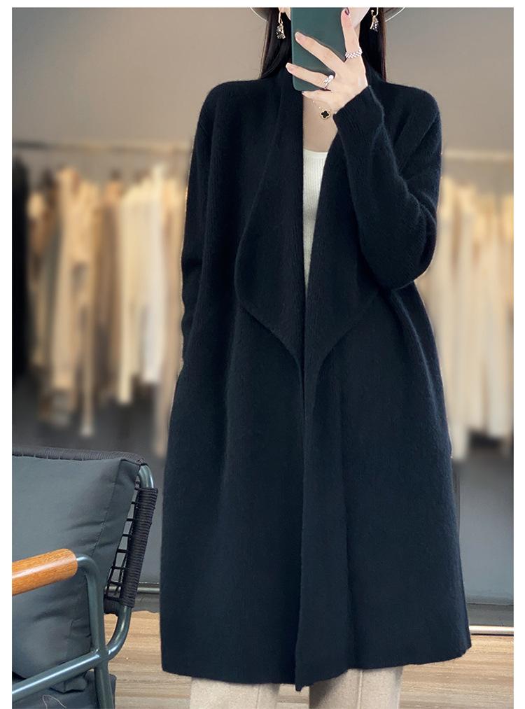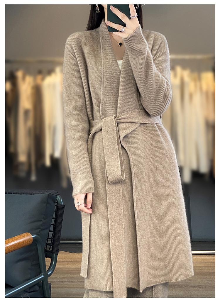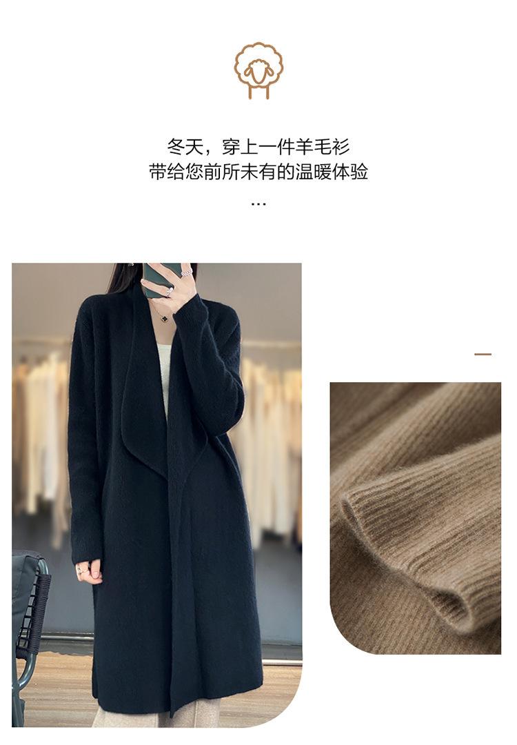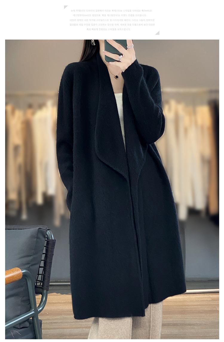 Abrigo de lana 100% pura para mujer, otoño e invierno 2023, cárdigan de punto grueso, abrigo holgado de longitud media