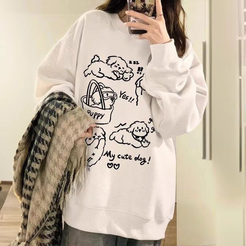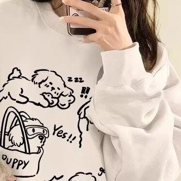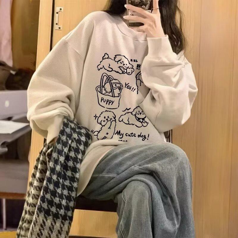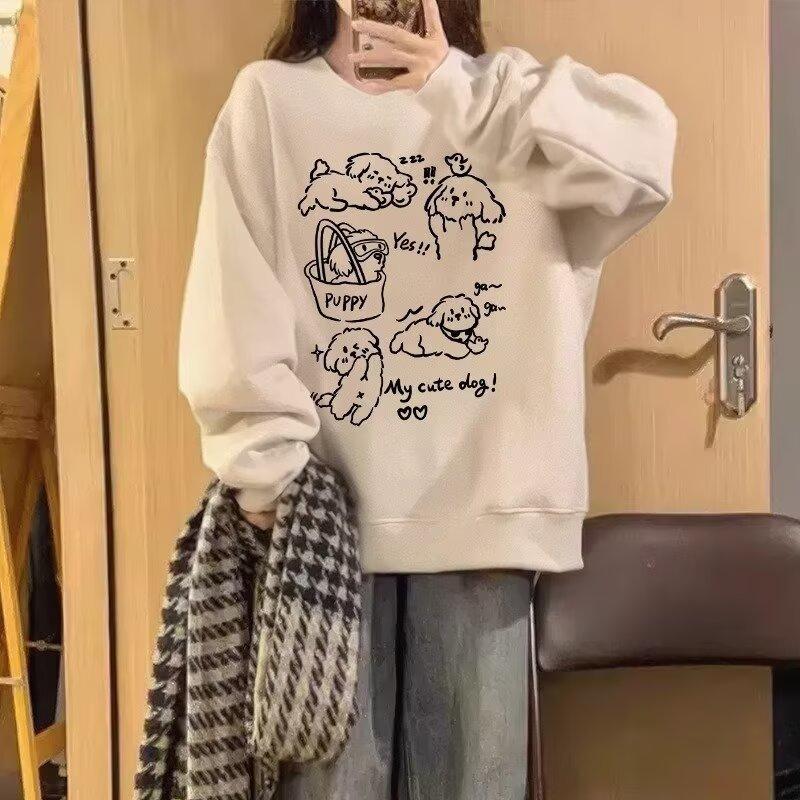 Sudadera de cuello redondo sin capucha de estilo americano de marca de moda retro estilo perezoso para mujer otoño e invierno con forro polar tamaño pequeño de moda superior