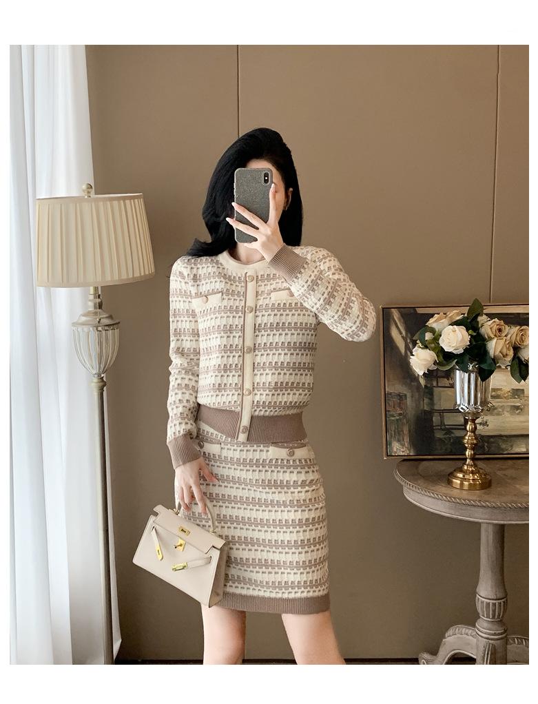 Conjunto de dos piezas de punto estilo socialité francés falda para mujer otoño 2025 nuevo moda de alta gama traje casual
