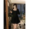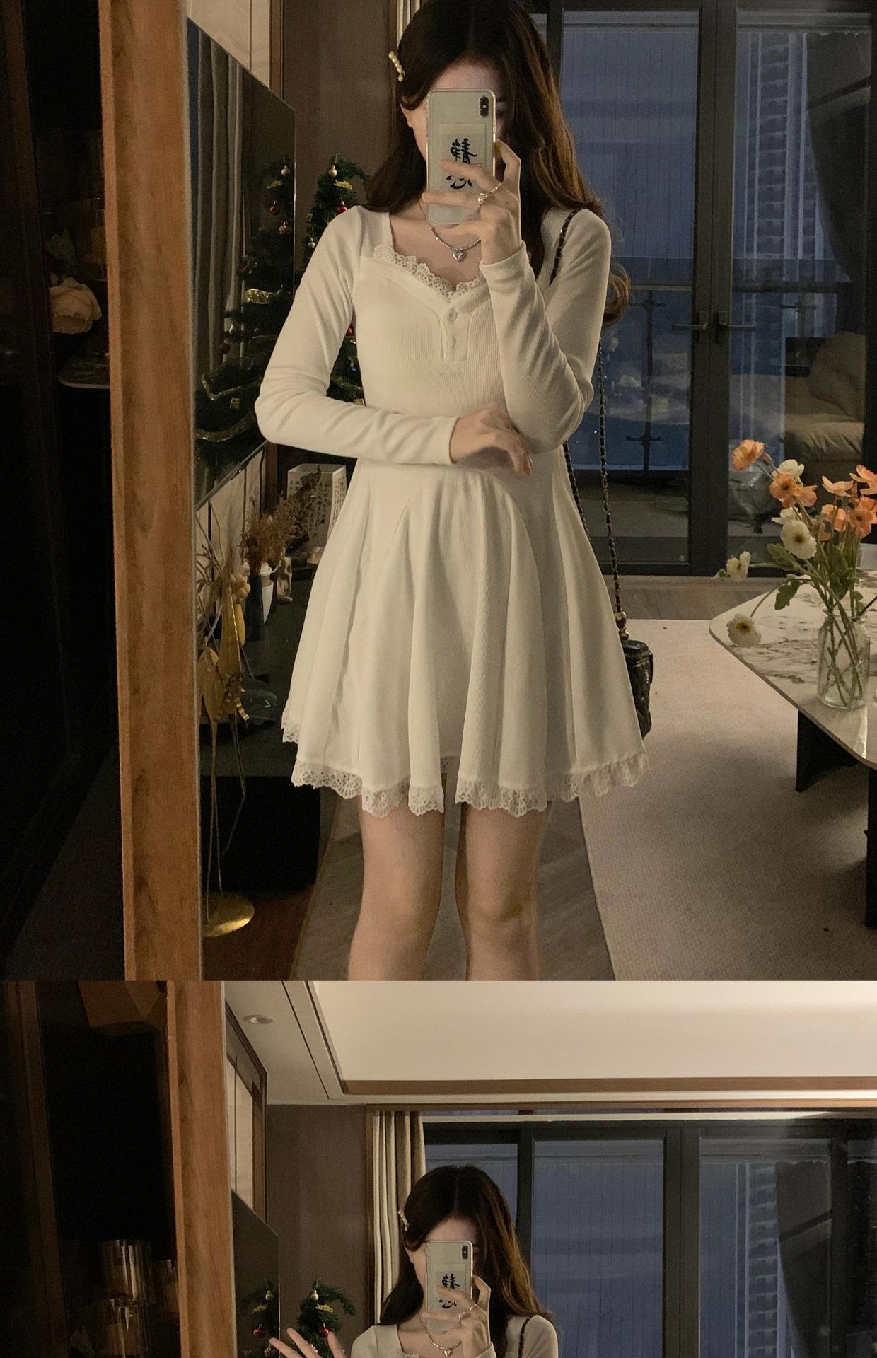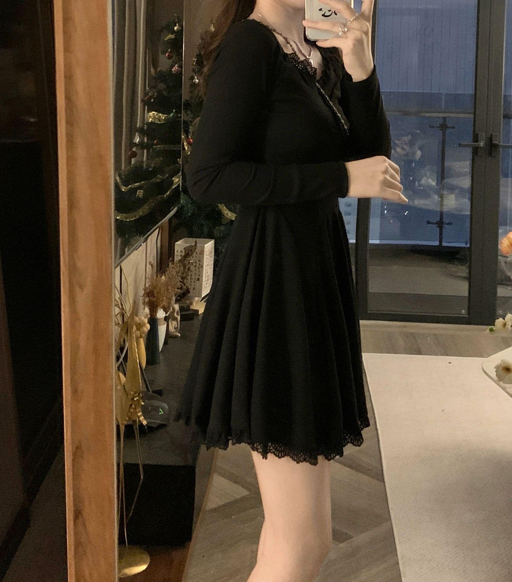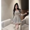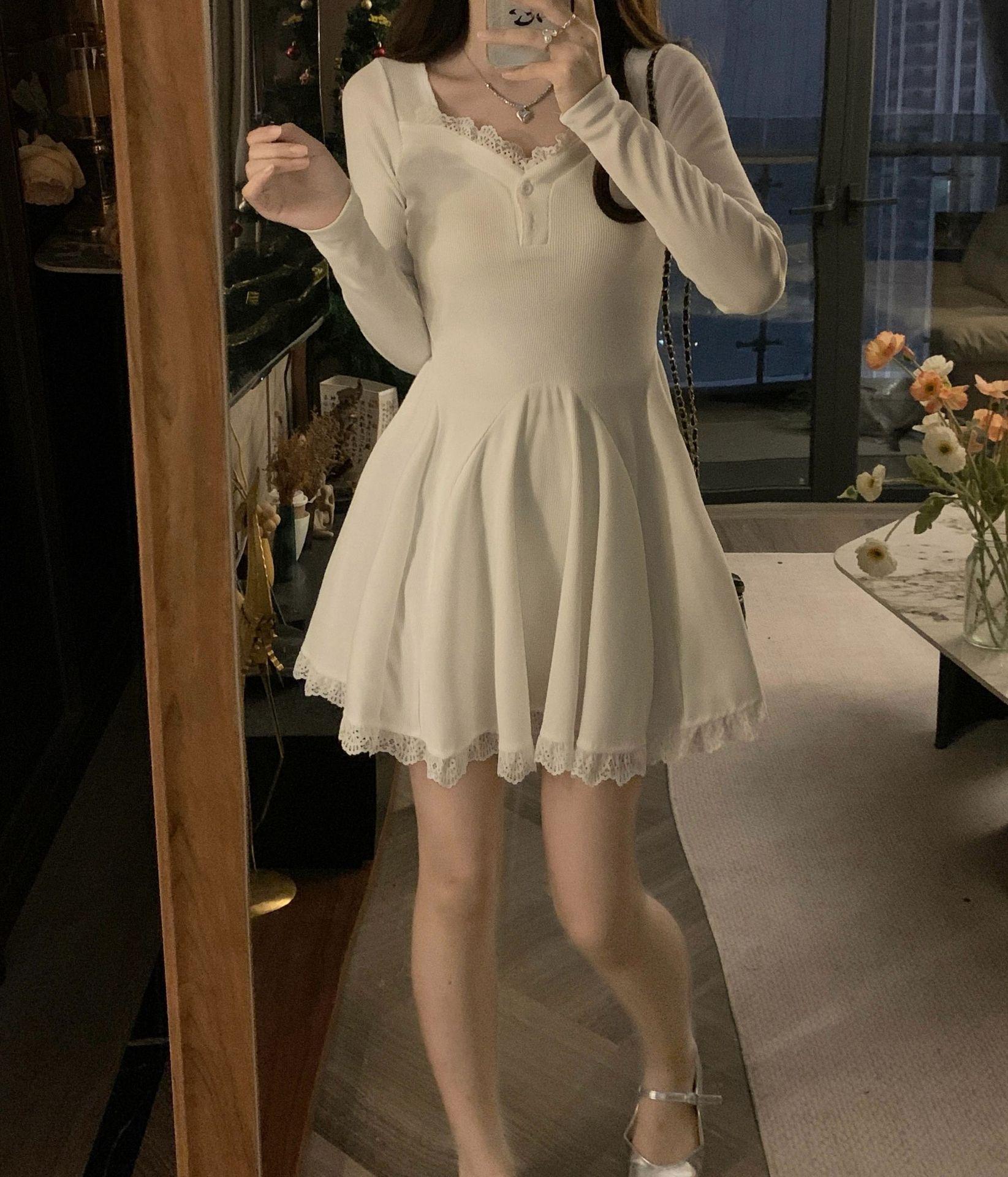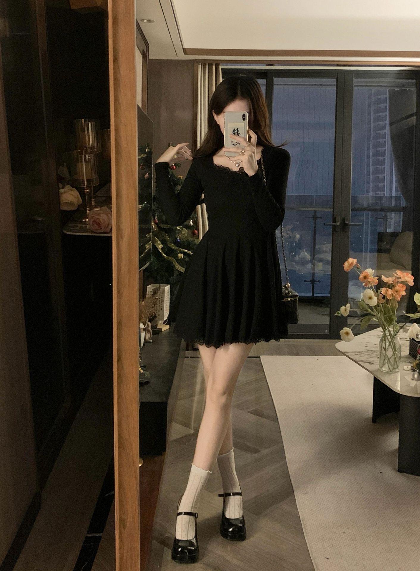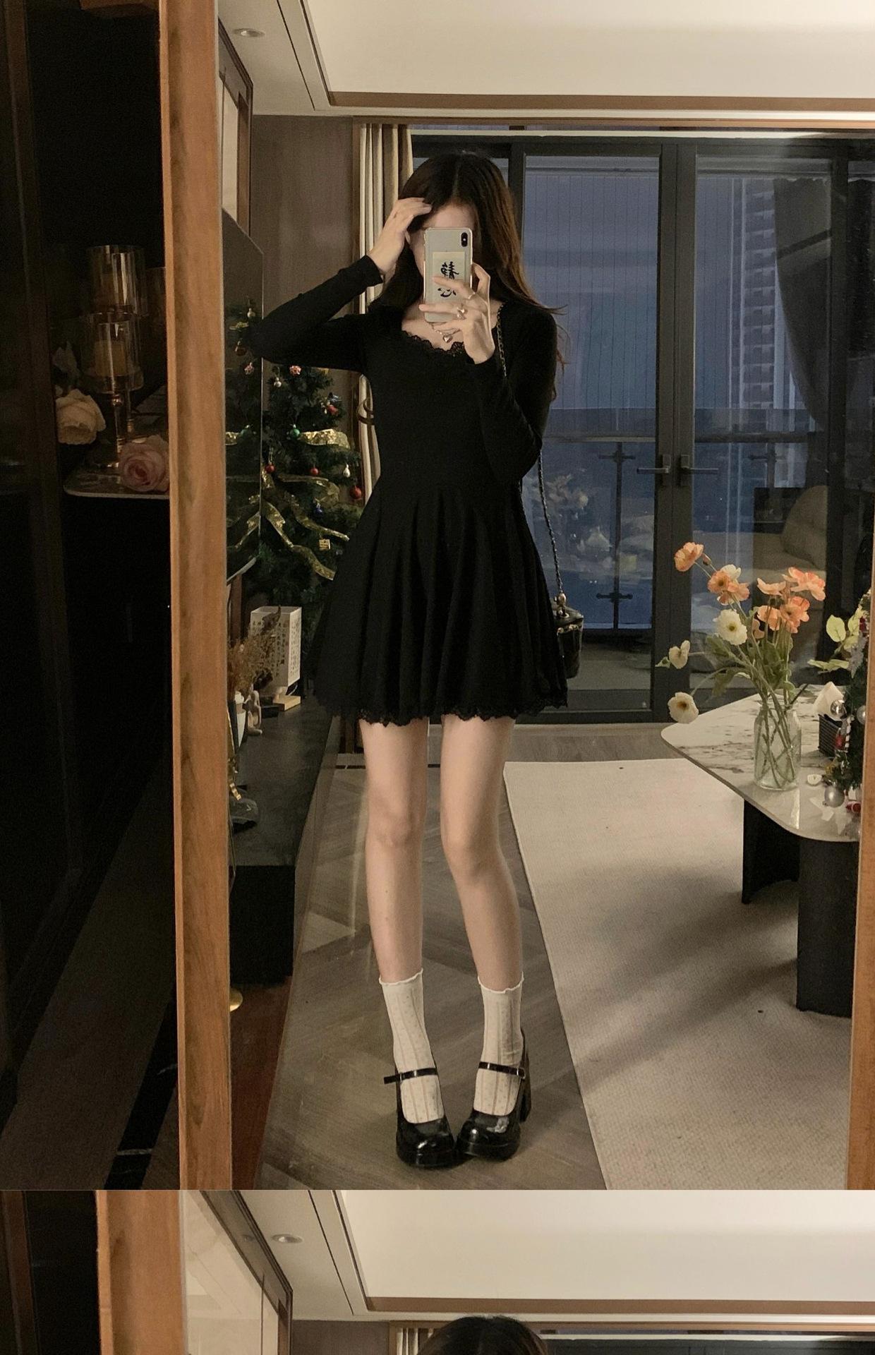 Vestido de Encaje Sexy de Deseo Puro para Mujer 2024 Nuevo Otoño Manga Larga Entallado Spice Girl Falda Tutú Falda Corta