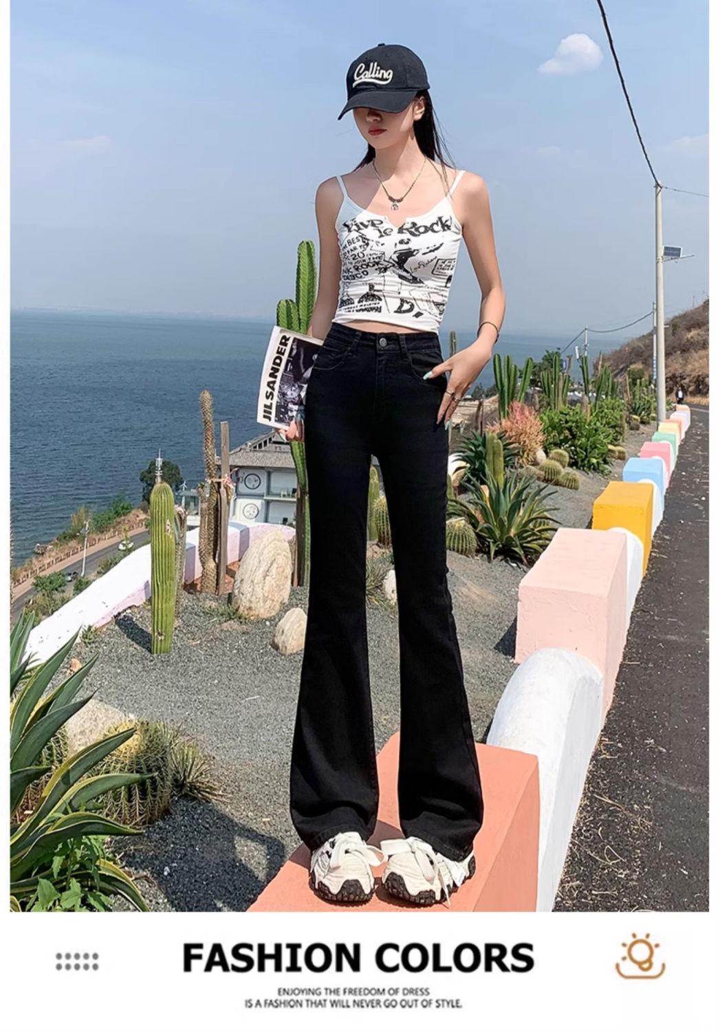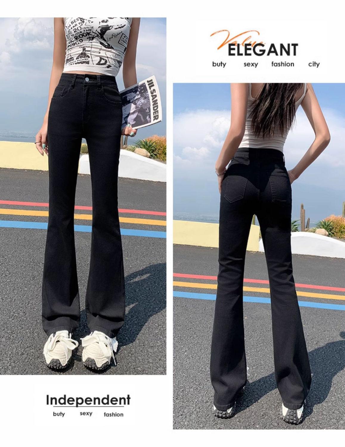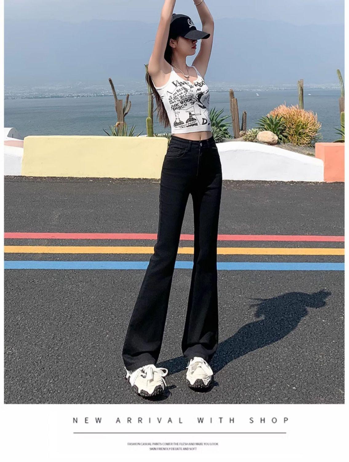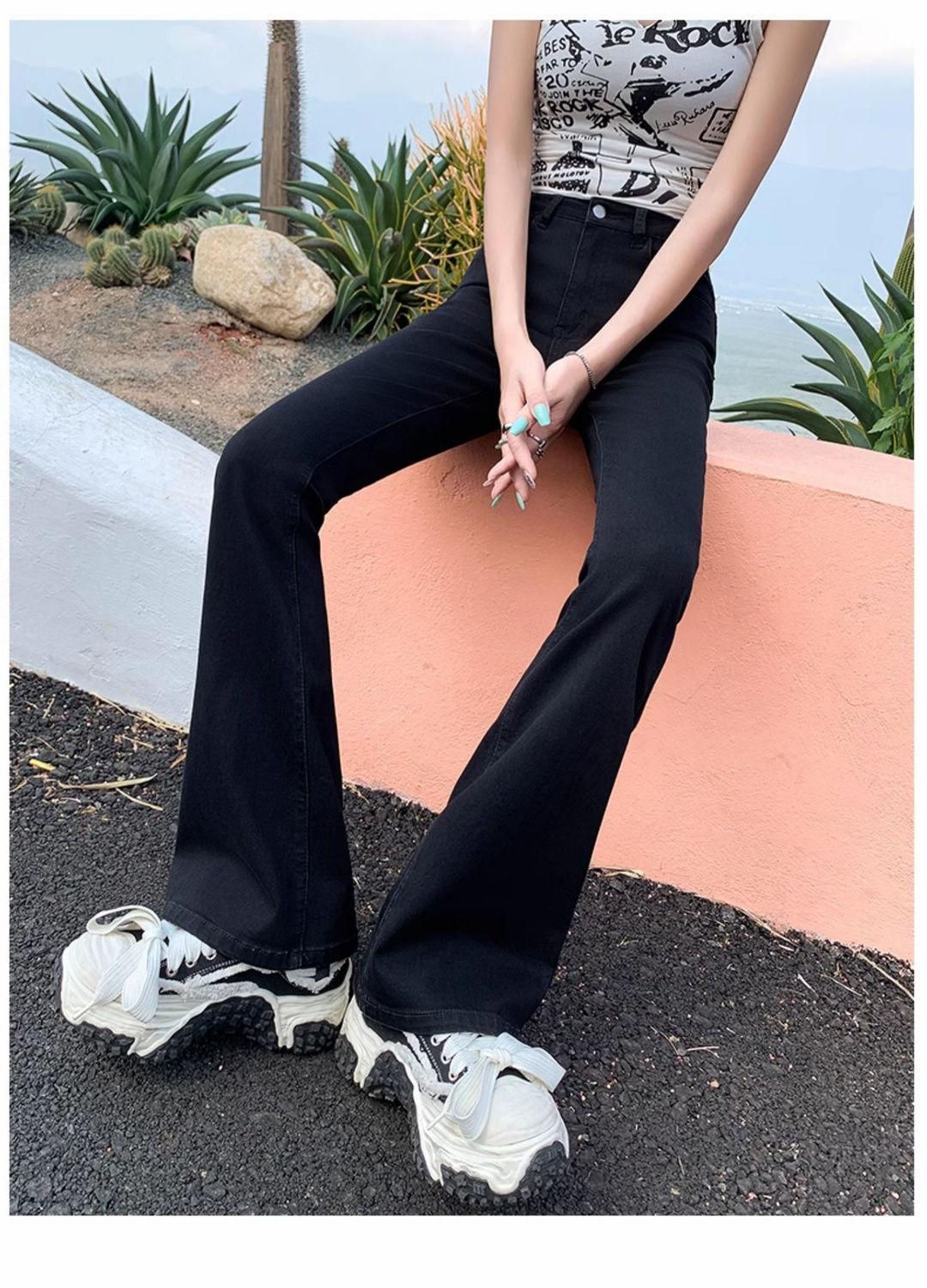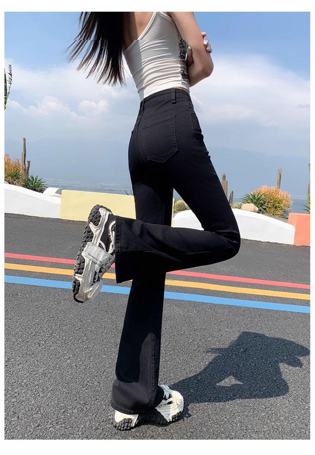 Vaqueros negros ajustados para mujer, primavera y otoño, estilo coreano, novedad de 2024, cintura alta, elásticos, adelgazantes, con diseño de herradura, acampanados para niños.