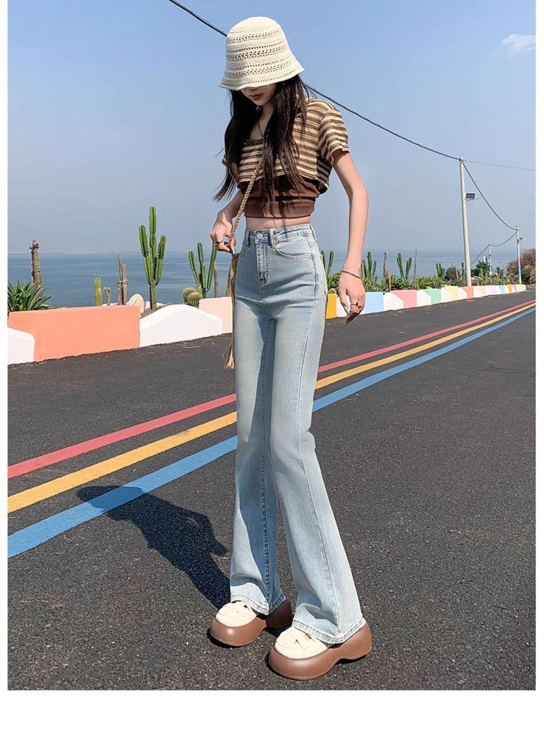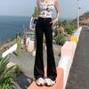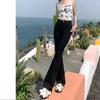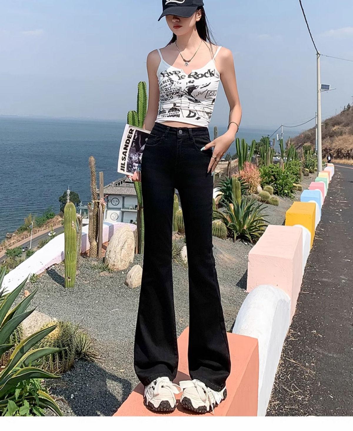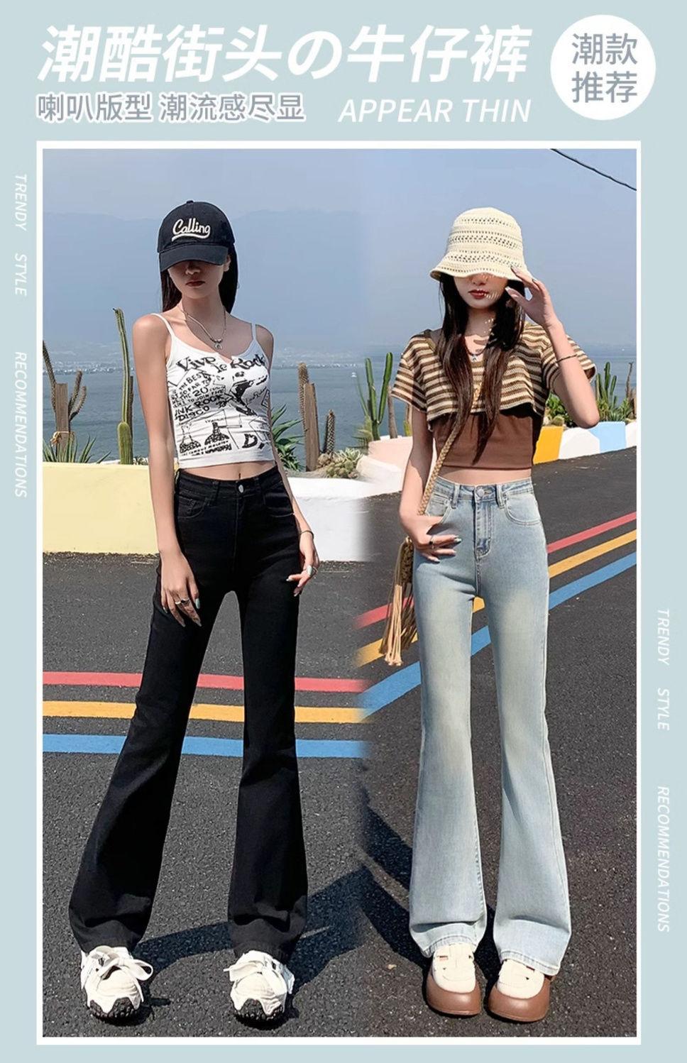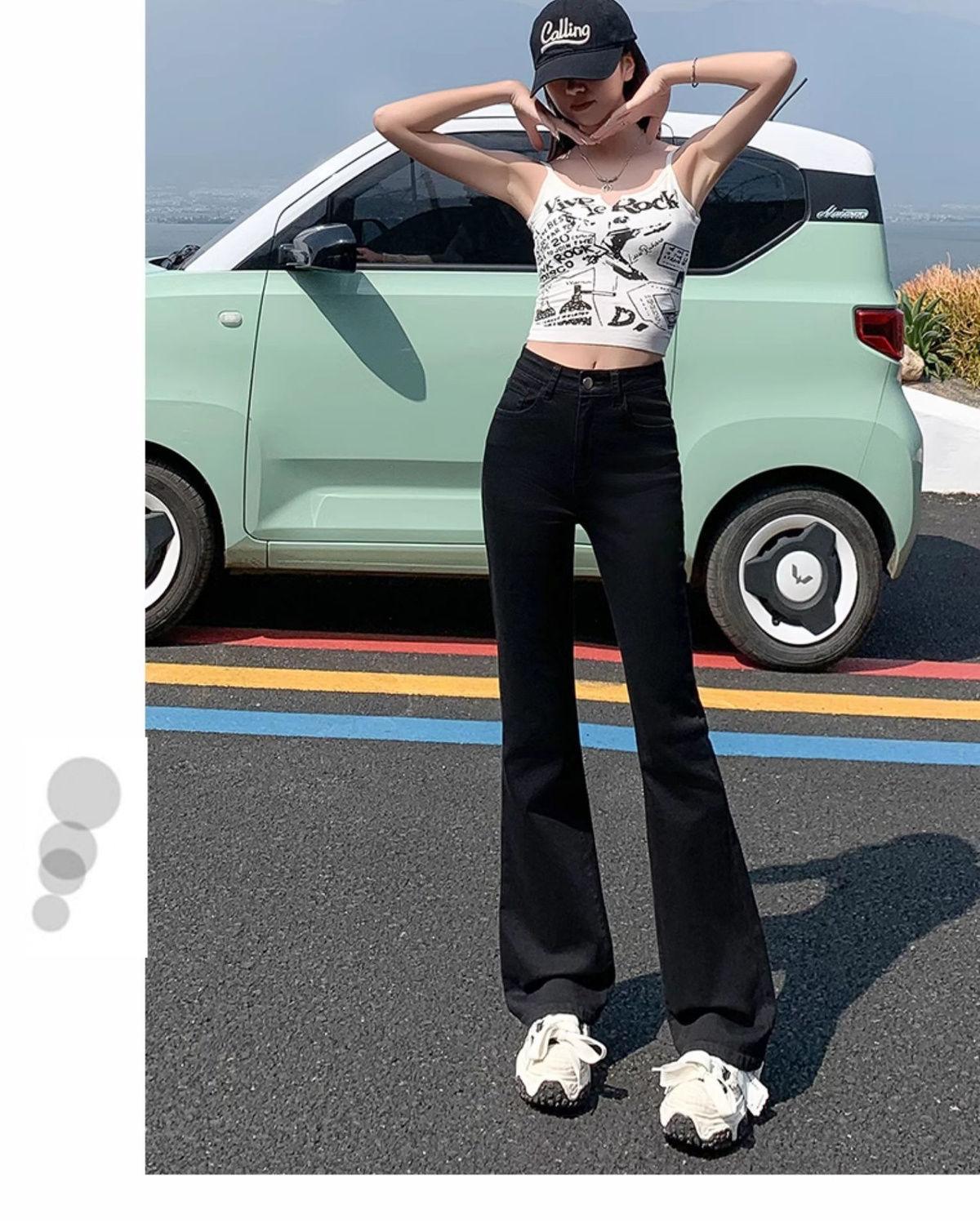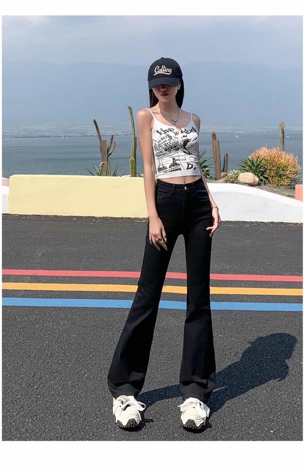 Vaqueros negros ajustados para mujer, primavera y otoño, estilo coreano, novedad de 2024, cintura alta, elásticos, adelgazantes, con diseño de herradura, acampanados para niños.