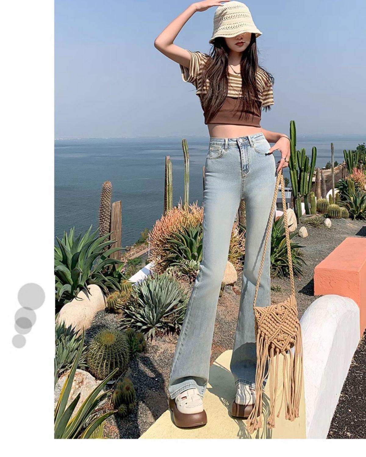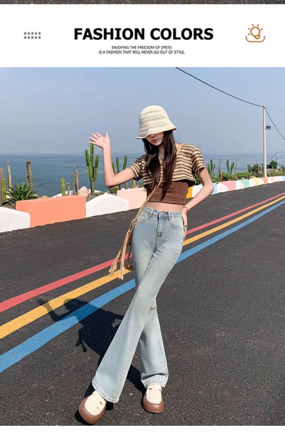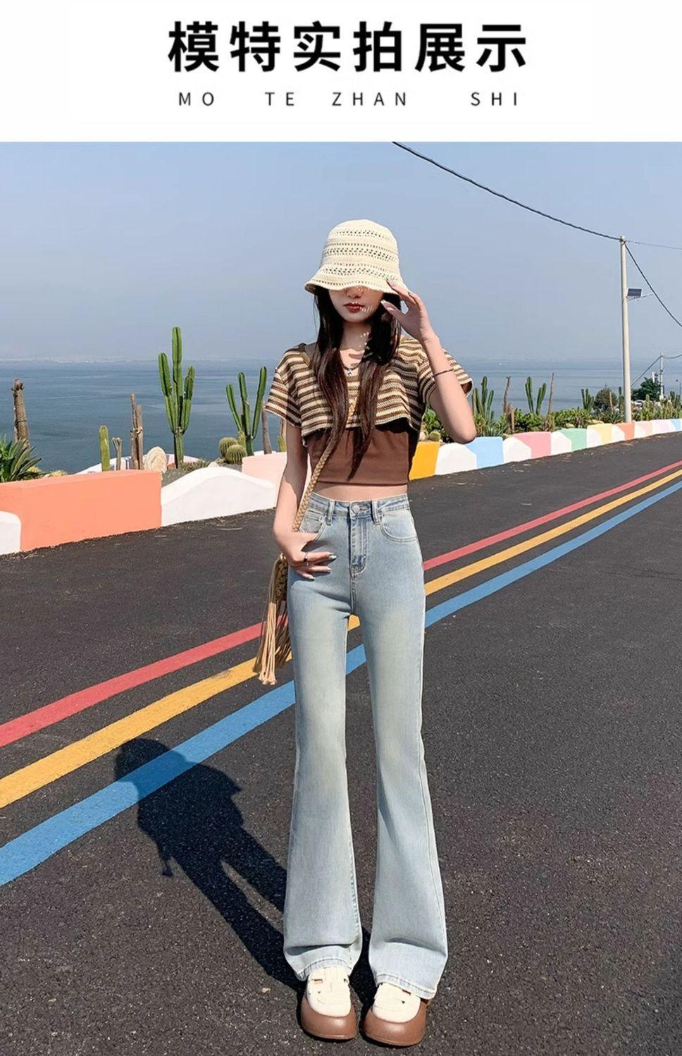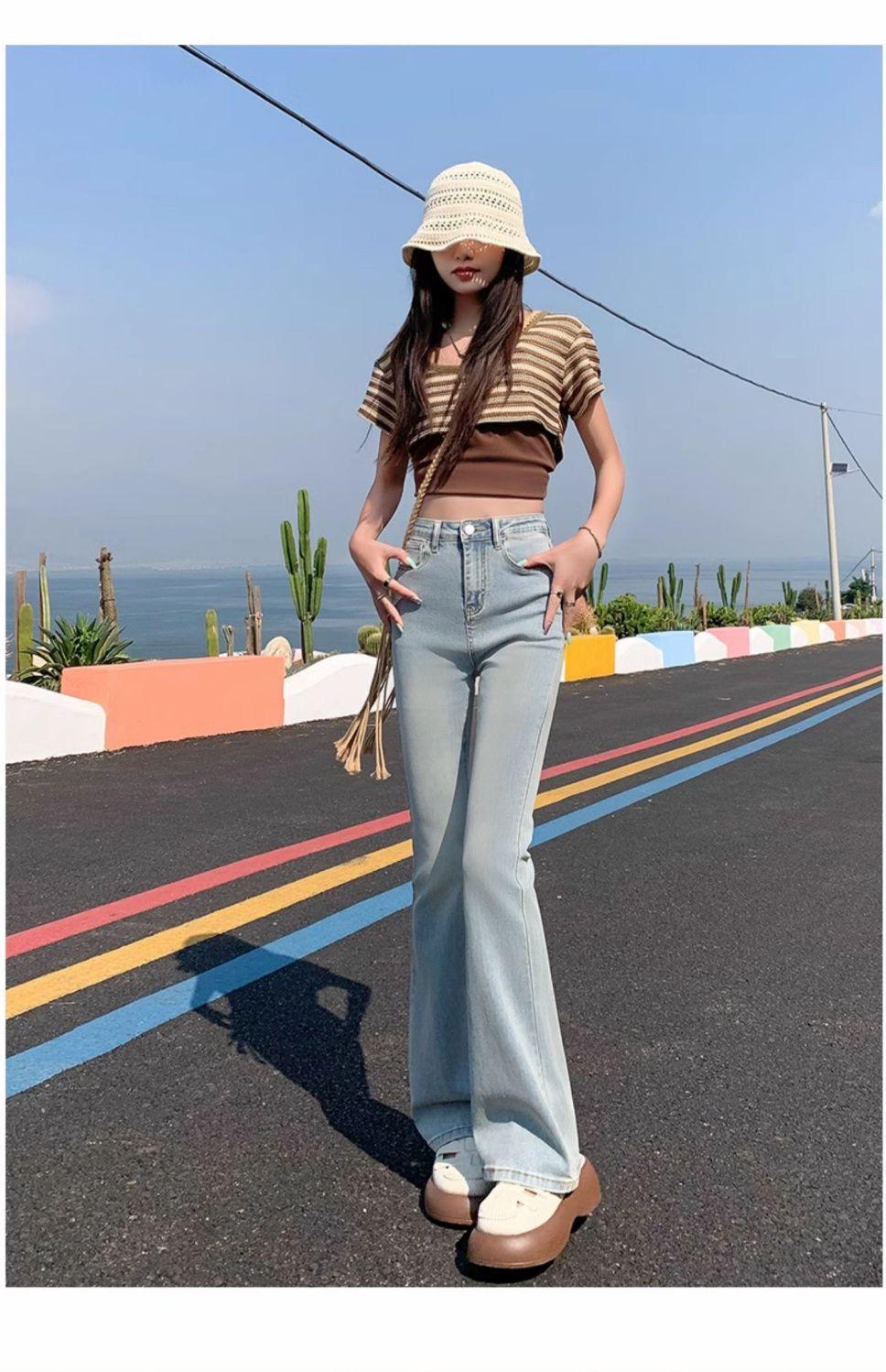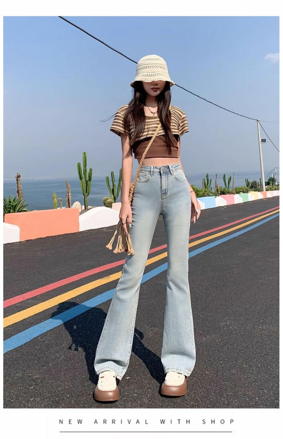 Vaqueros negros ajustados para mujer, primavera y otoño, estilo coreano, novedad de 2024, cintura alta, elásticos, adelgazantes, con diseño de herradura, acampanados para niños.