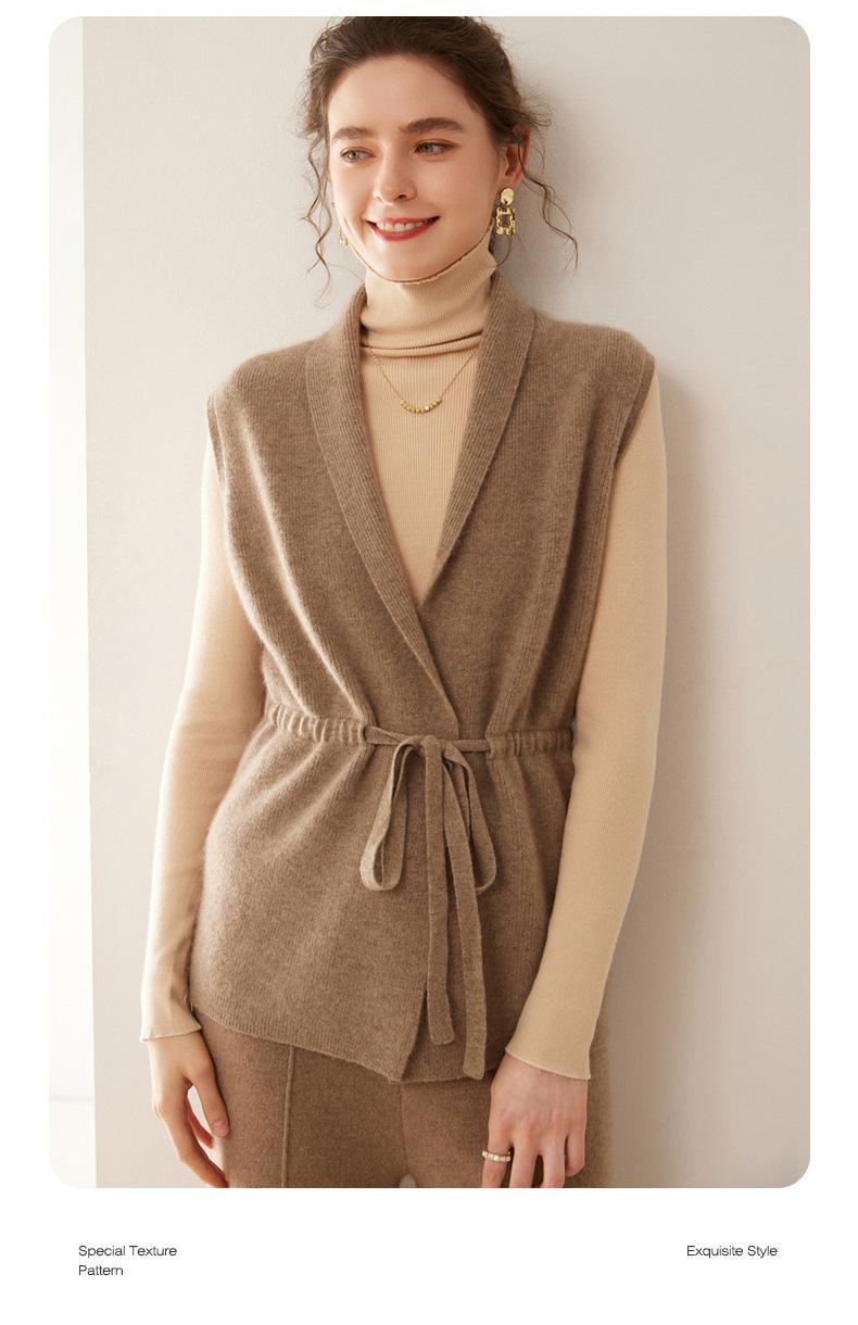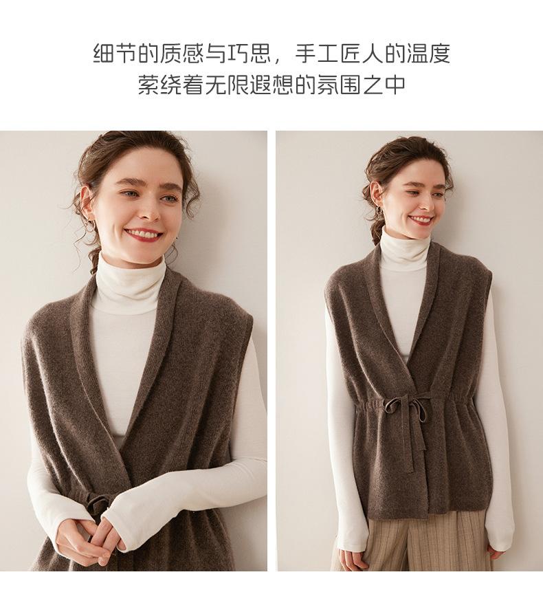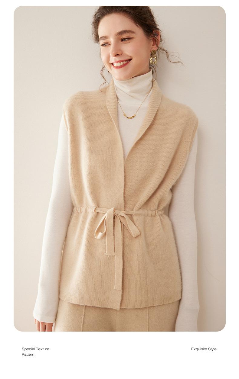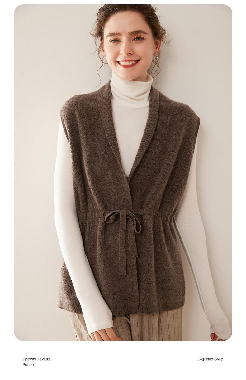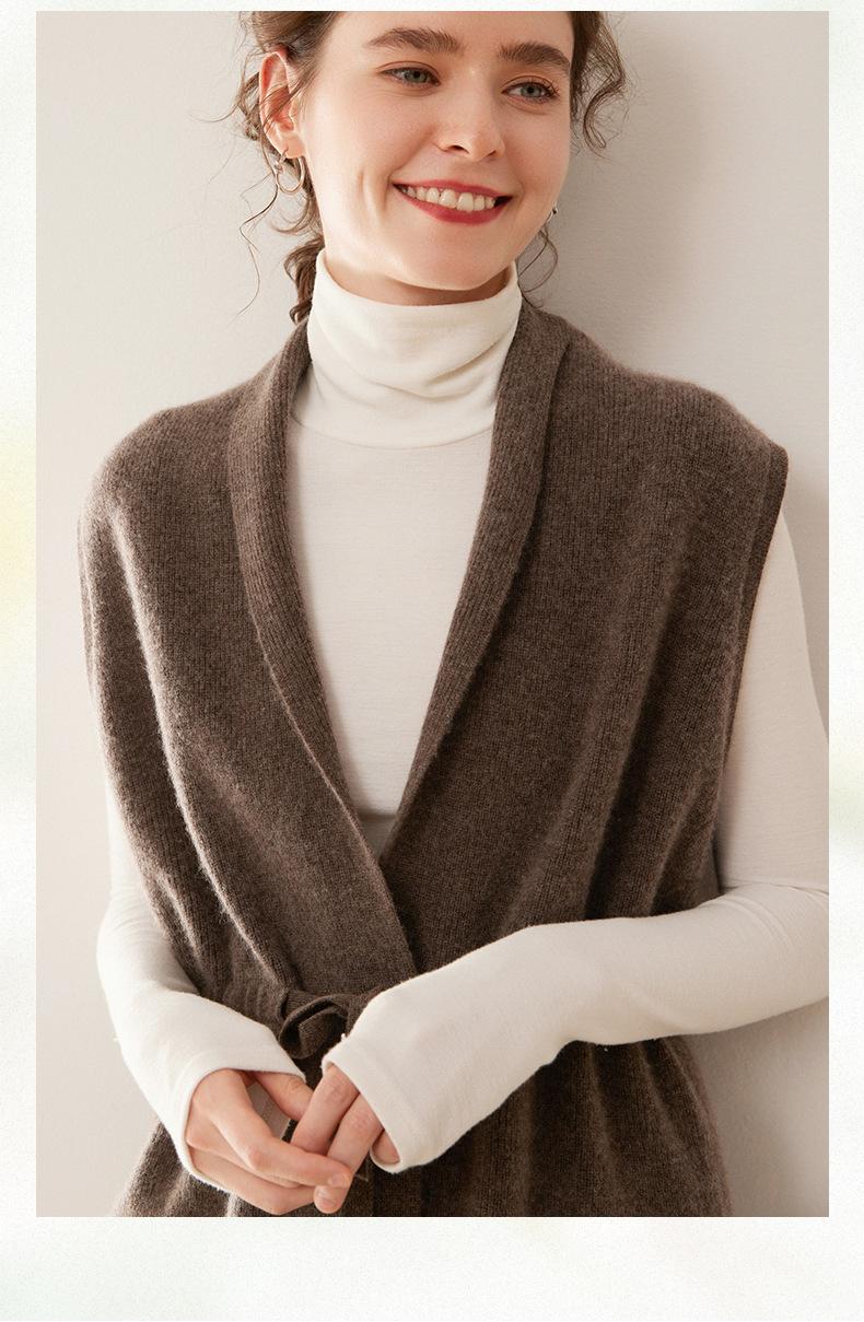 Cárdigan de punto sin mangas de cachemira para otoño e invierno, suéter con tirantes medios para mujer, chaleco de cachemira para mujer
