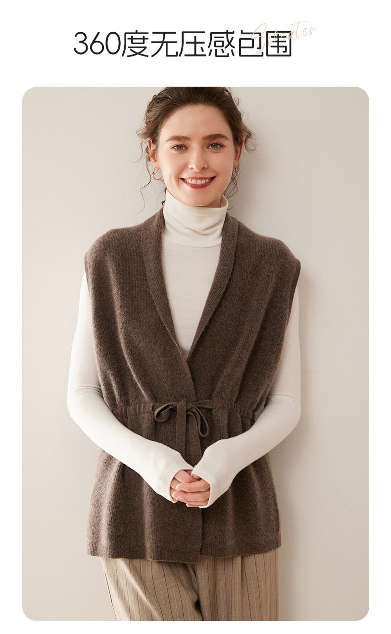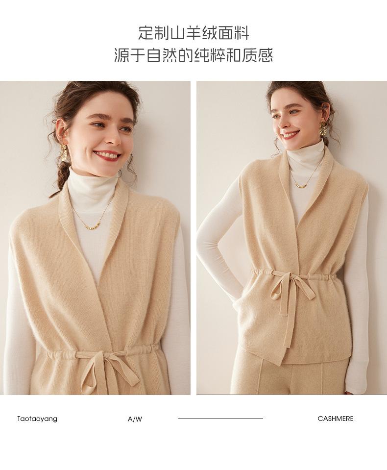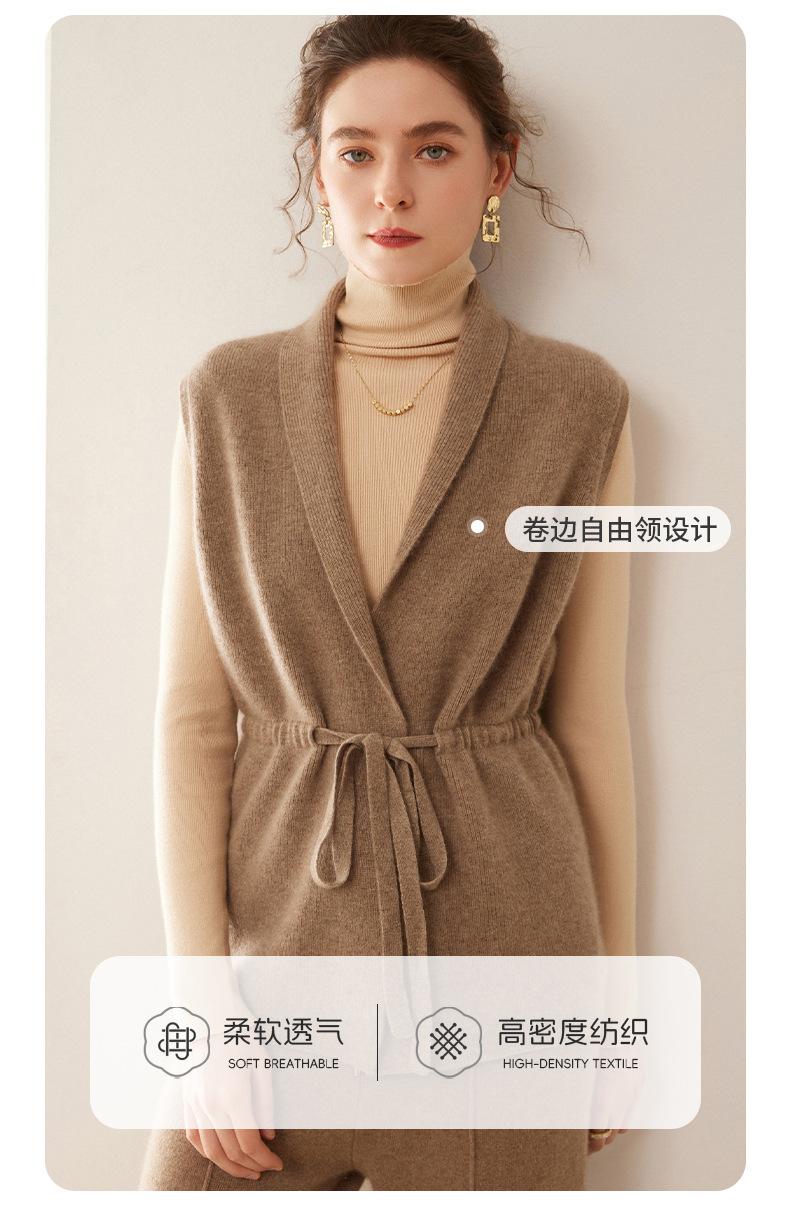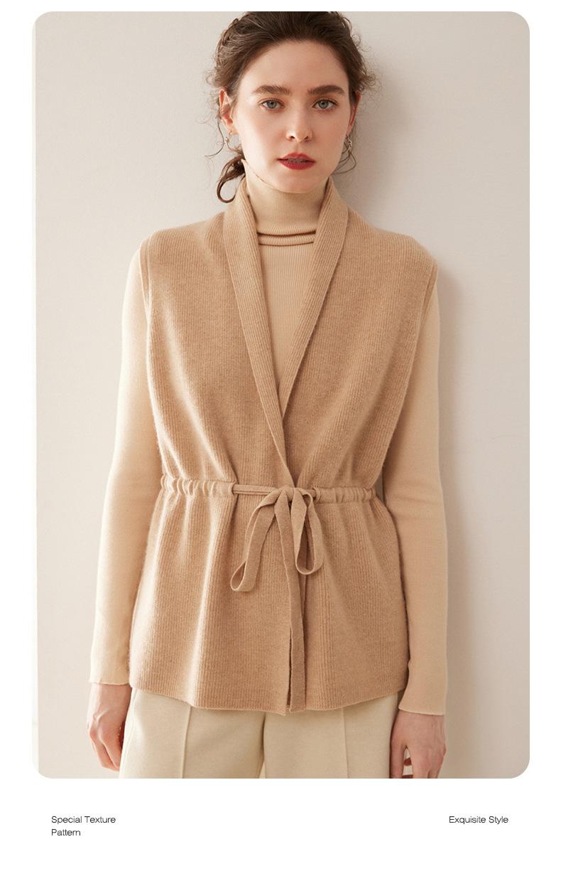 Cárdigan de punto sin mangas de cachemira para otoño e invierno, suéter con tirantes medios para mujer, chaleco de cachemira para mujer