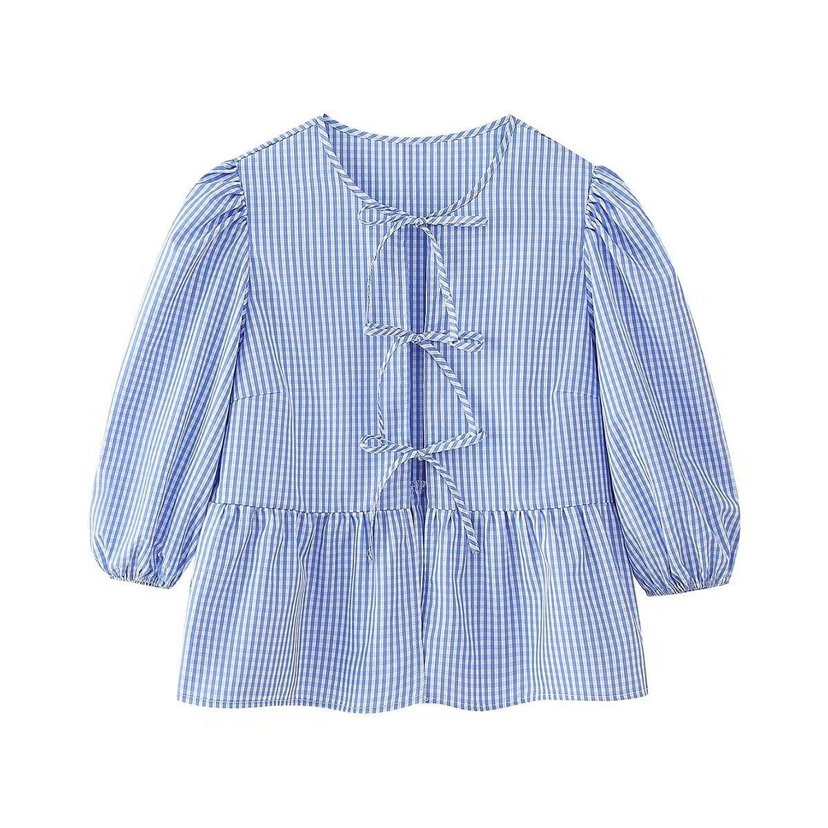 Amazon Comercio Exterior Transfronterizo Mujeres Europeas y Americanas 2024 Verano Nuevo Estilo Europeo y Americano Manga Siete Puntos Top con Cordones