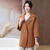 Abrigo de otoño e invierno de color liso con solapa de longitud media, elegante y moderno, informal, de imitación de visón, de lana de doble cara para madres.