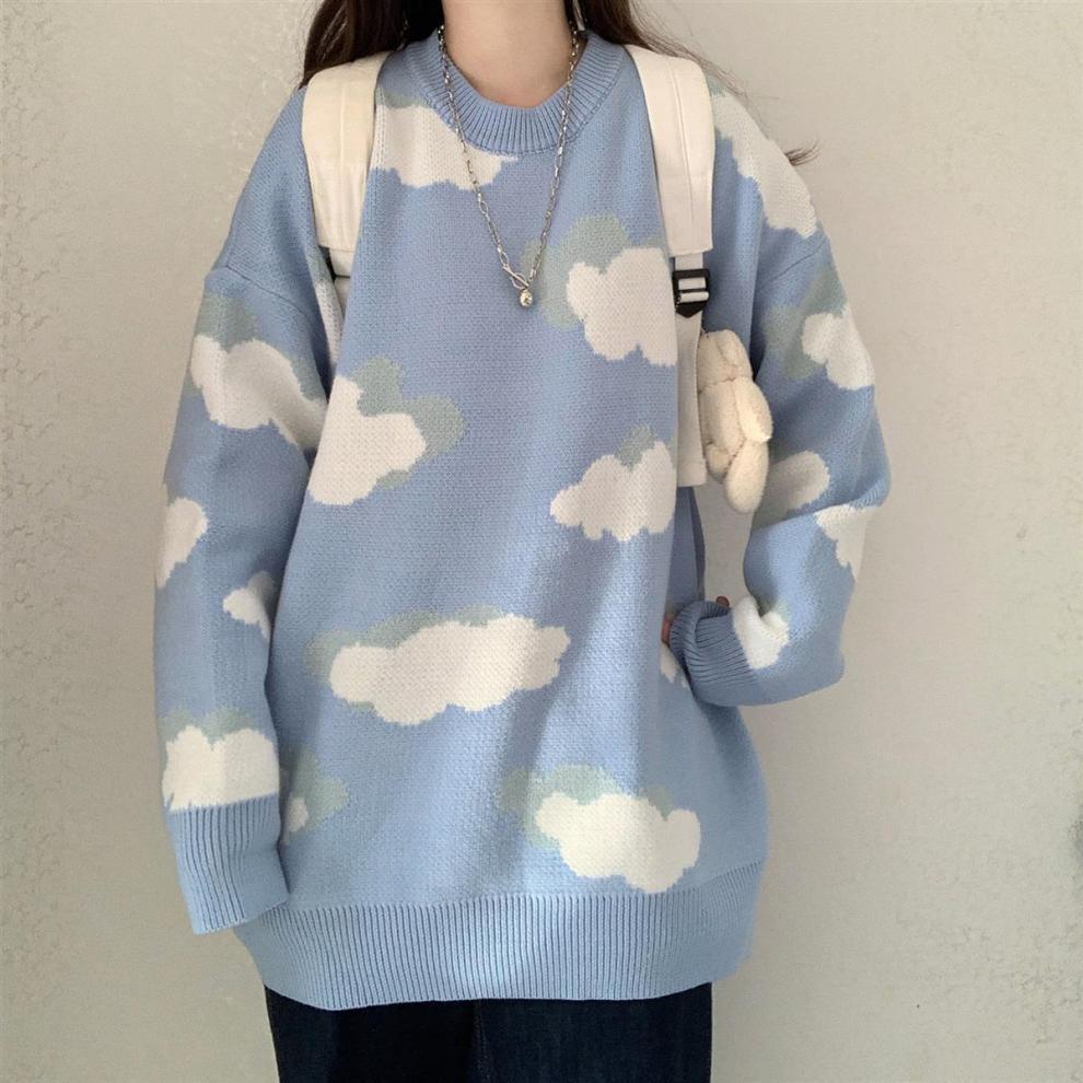 Suéter holgado de cuello en V estilo coreano para otoño e invierno, camisa de punto de estilo perezoso, suéter de manga larga, chaleco, abrigo para estudiante femenina