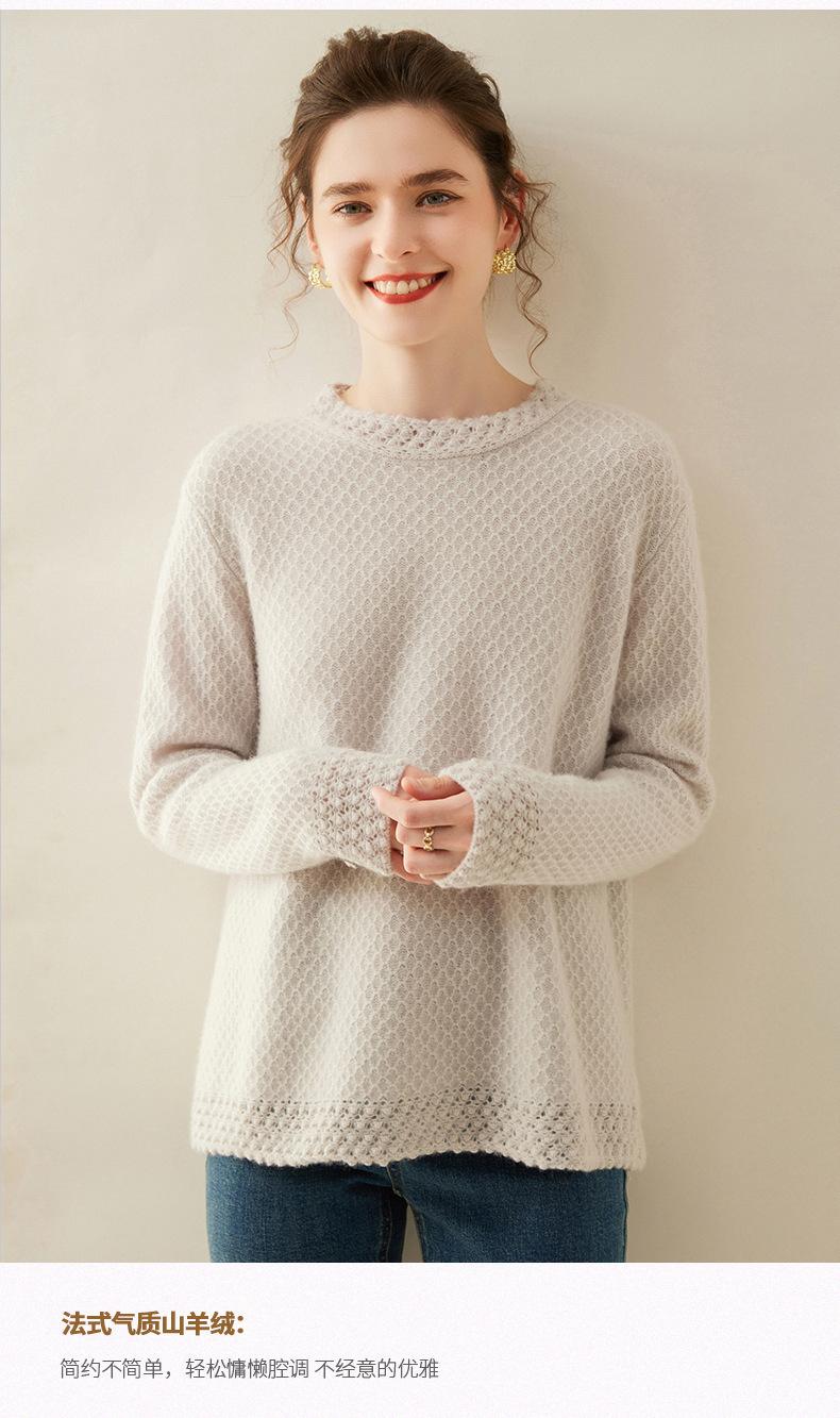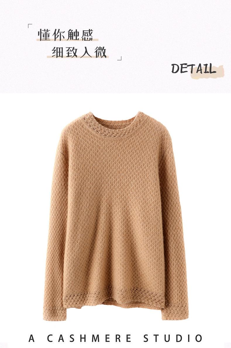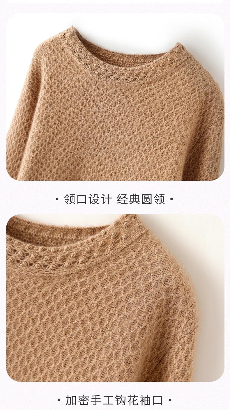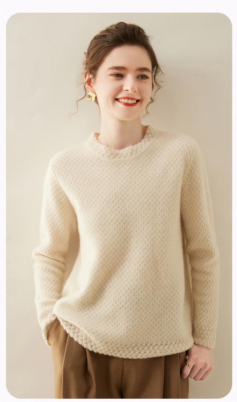 Suéter de punto de cachemira para mujer, de manga larga, cuello redondo, holgado, moderno y grueso, de lana.