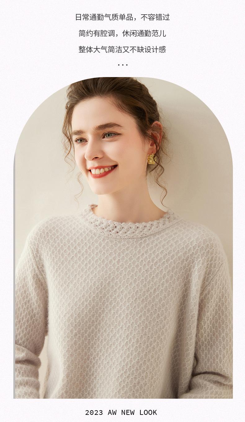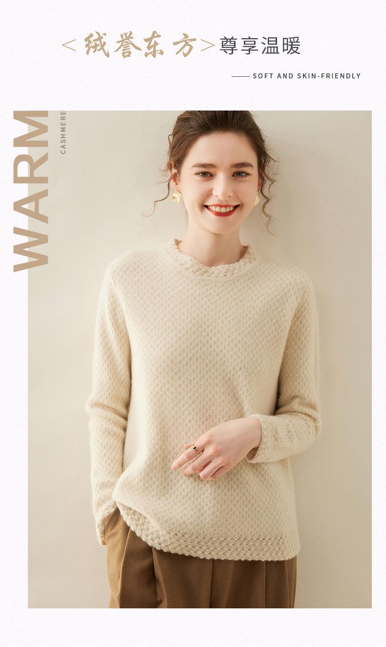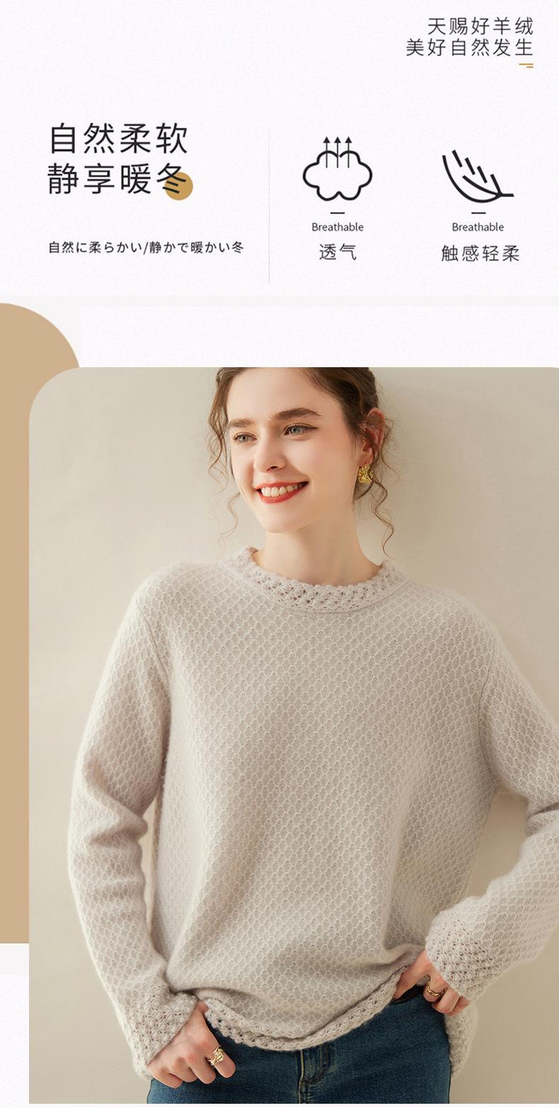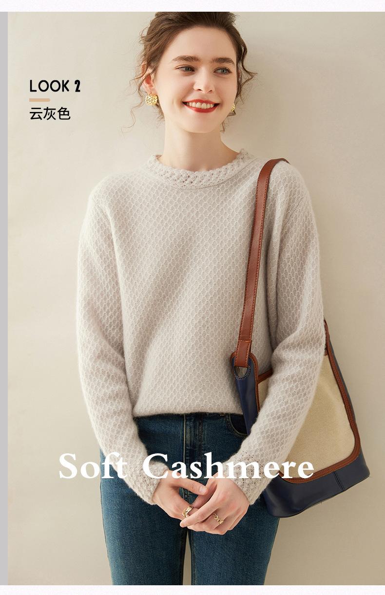 Suéter de punto de cachemira para mujer, de manga larga, cuello redondo, holgado, moderno y grueso, de lana.