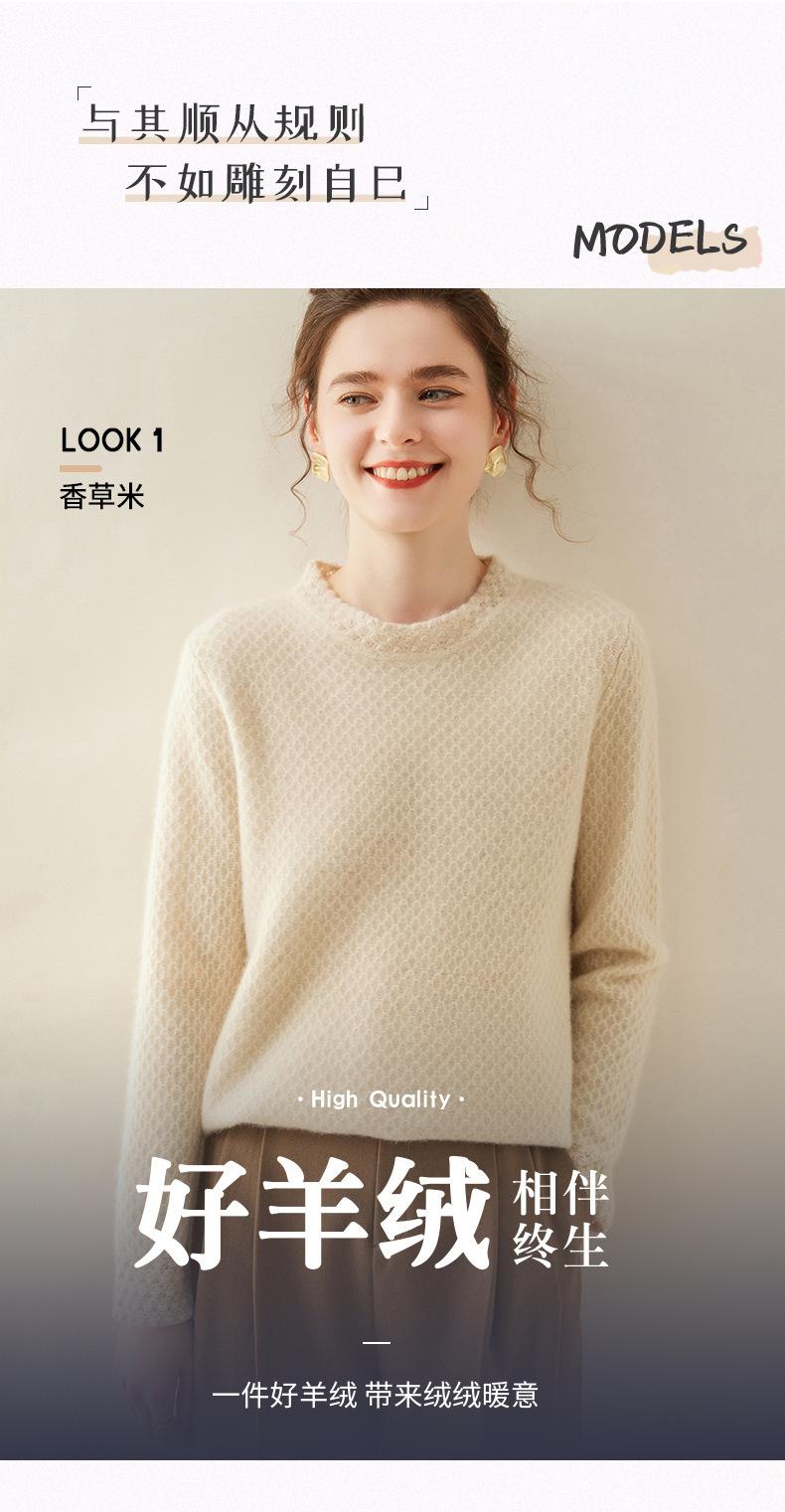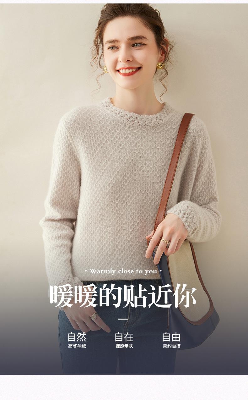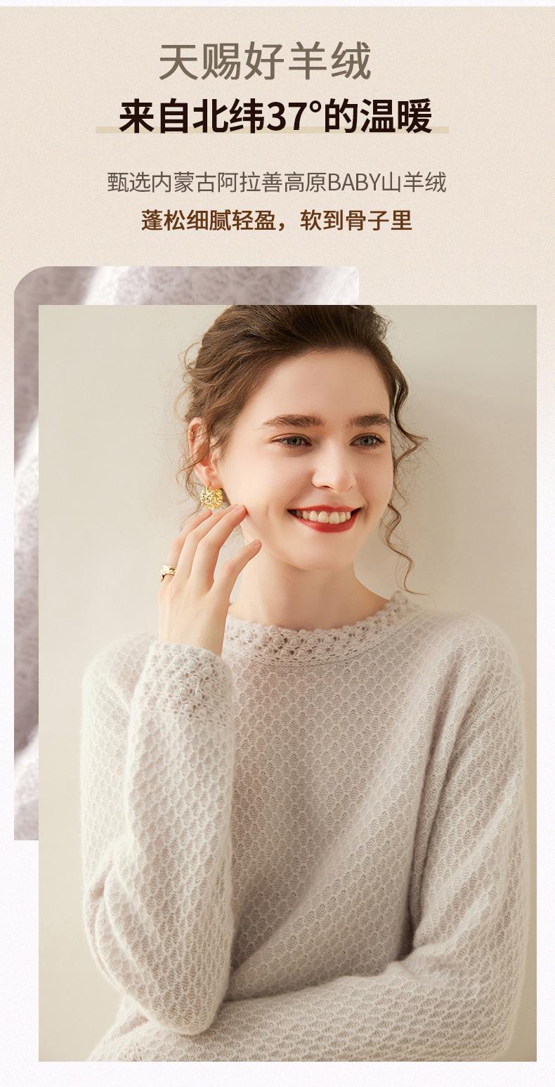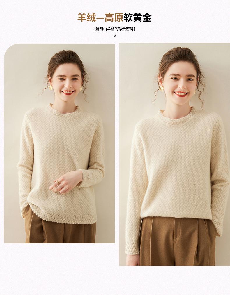 Suéter de punto de cachemira para mujer, de manga larga, cuello redondo, holgado, moderno y grueso, de lana.