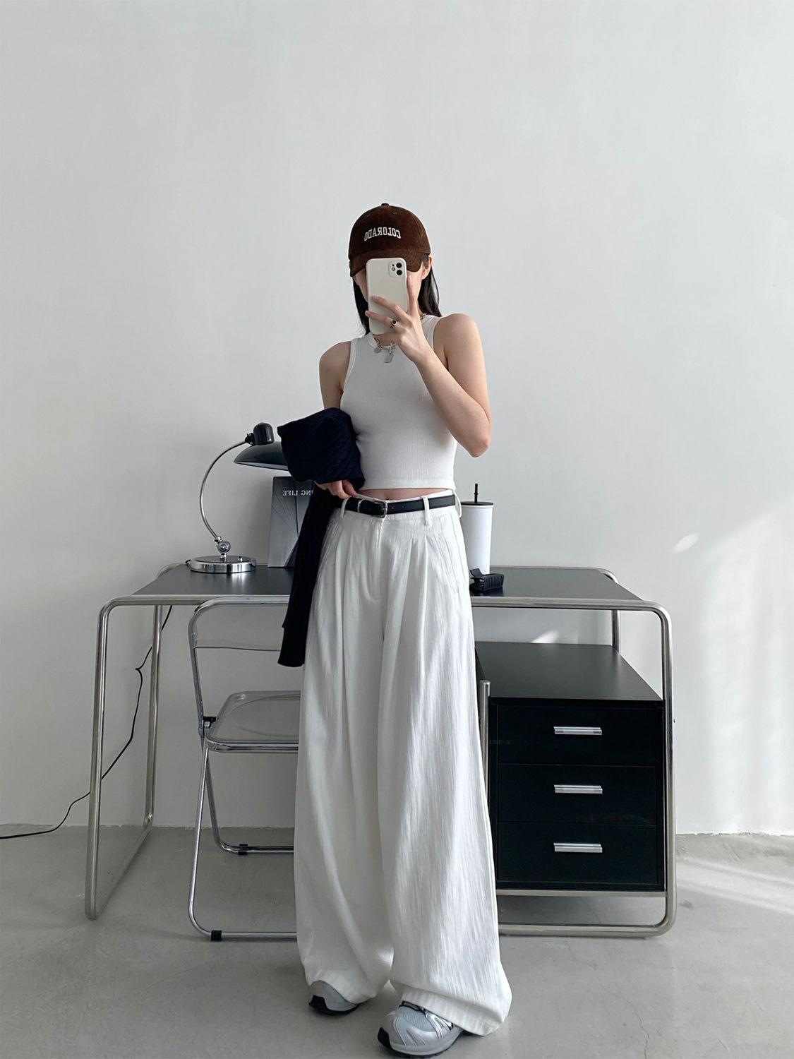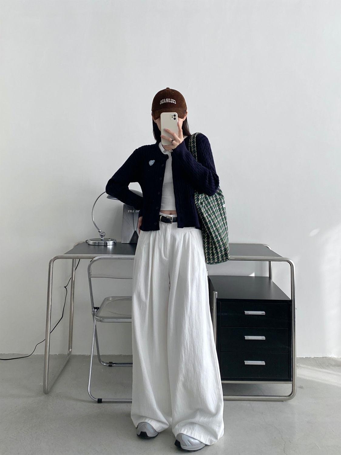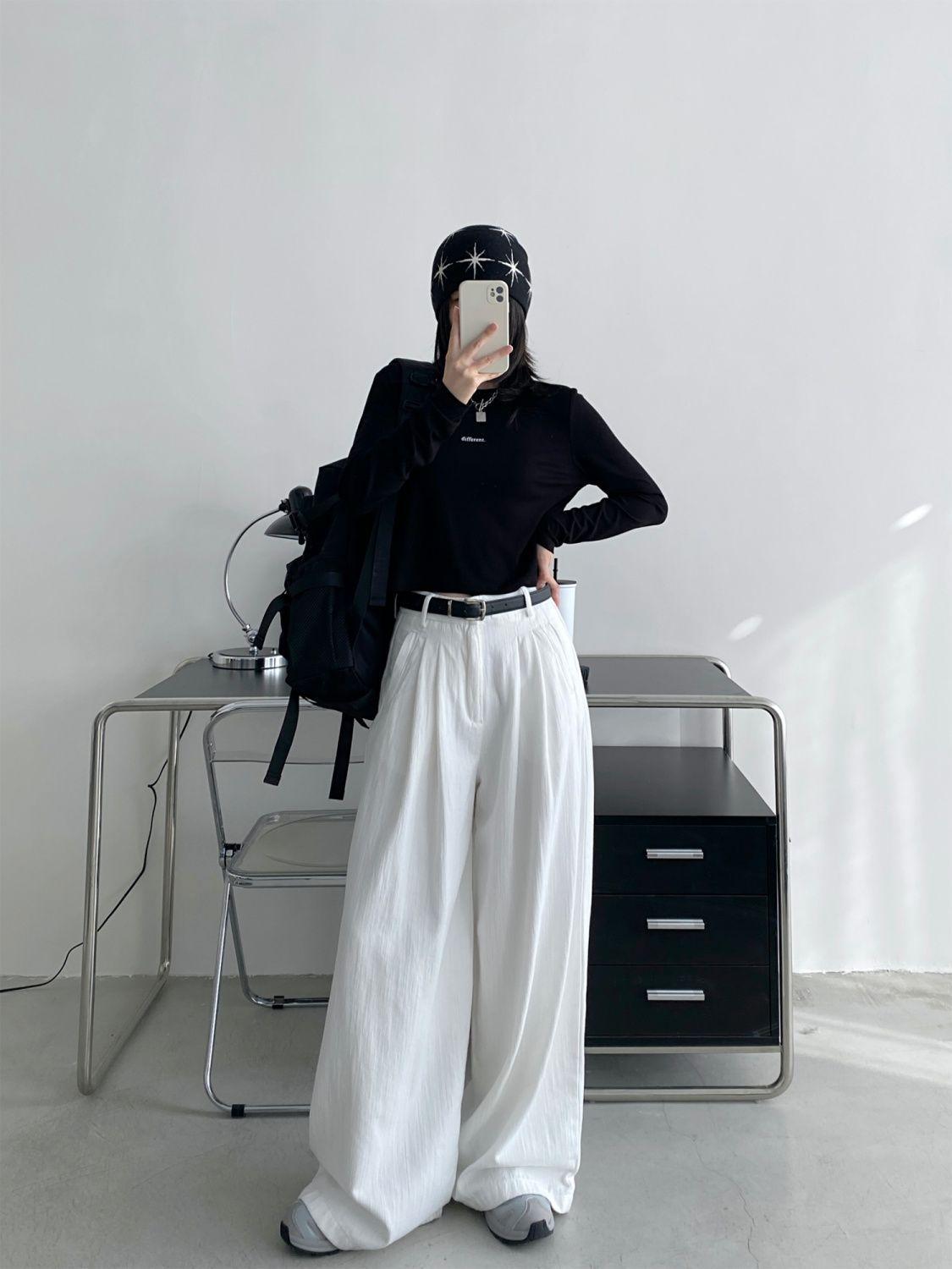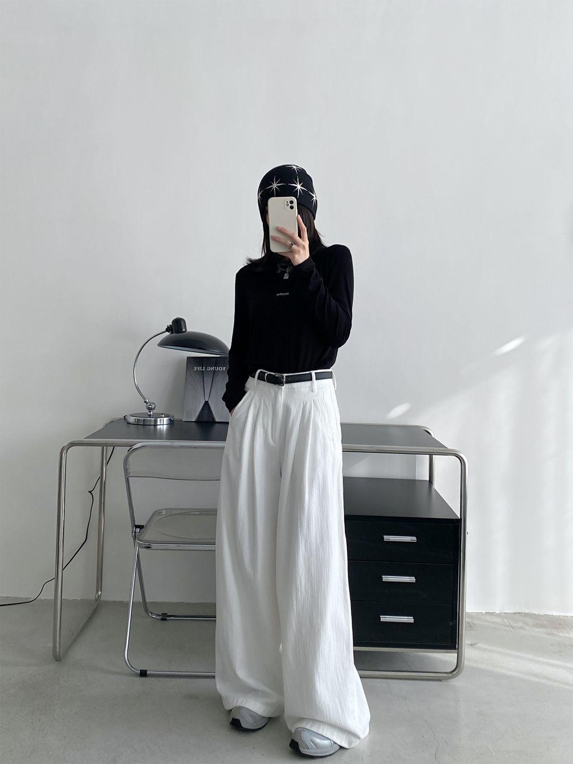 Jeans Blancos Holgados de Cintura Alta para Mujer Otoño Diseño con Dobles Pliegues Sensación Adelgazante Pierna Ancha Modernos Pantalones de Moda