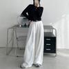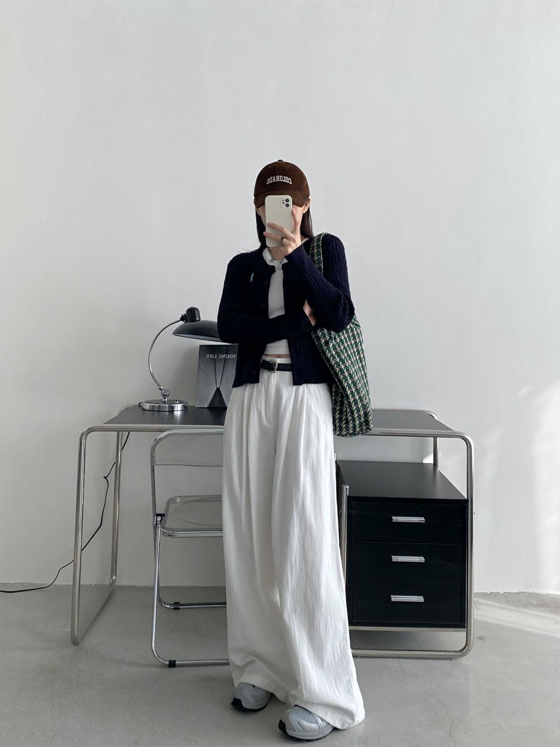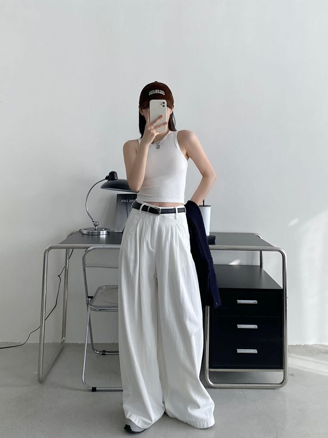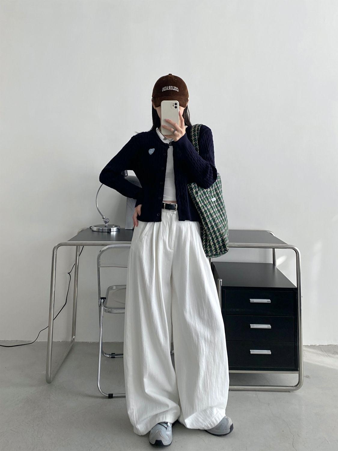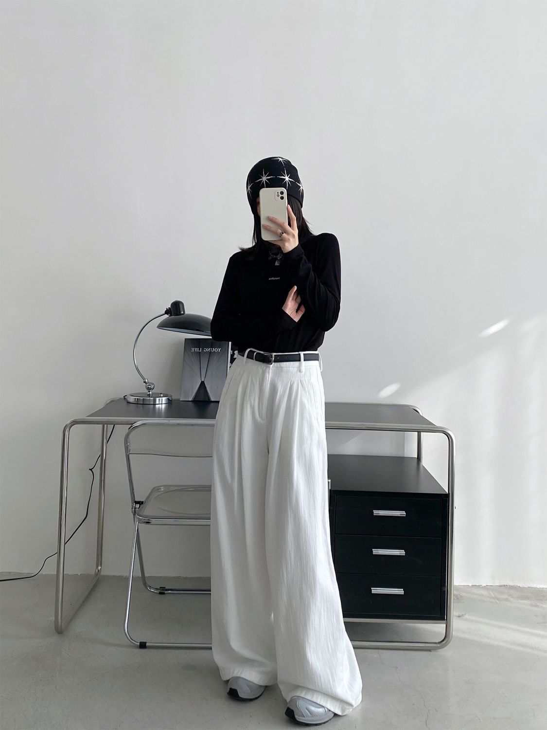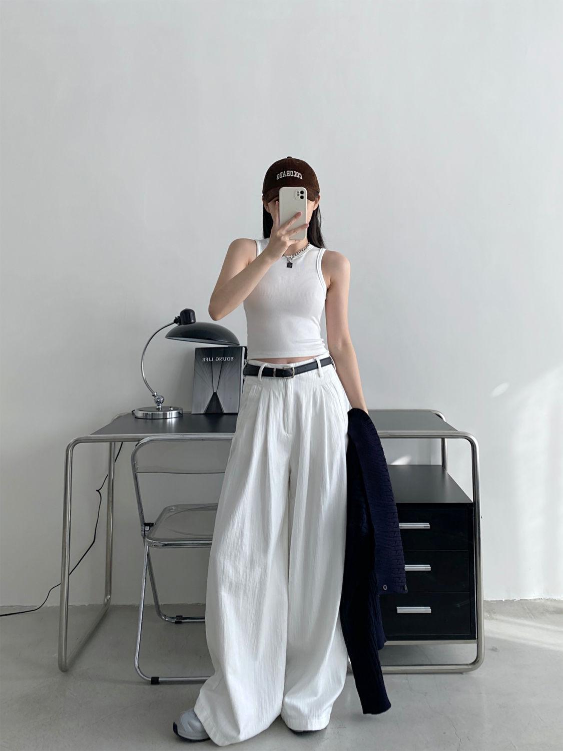 Jeans Blancos Holgados de Cintura Alta para Mujer Otoño Diseño con Dobles Pliegues Sensación Adelgazante Pierna Ancha Modernos Pantalones de Moda