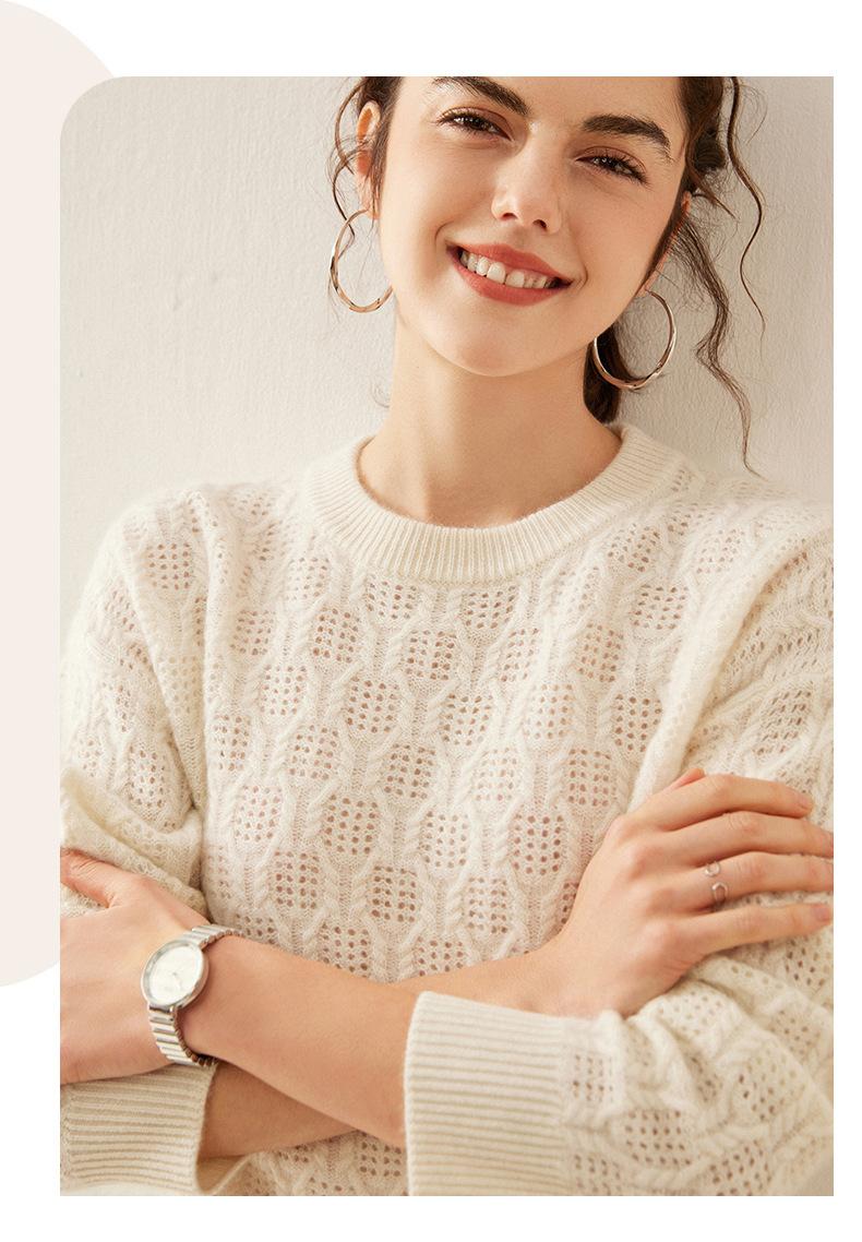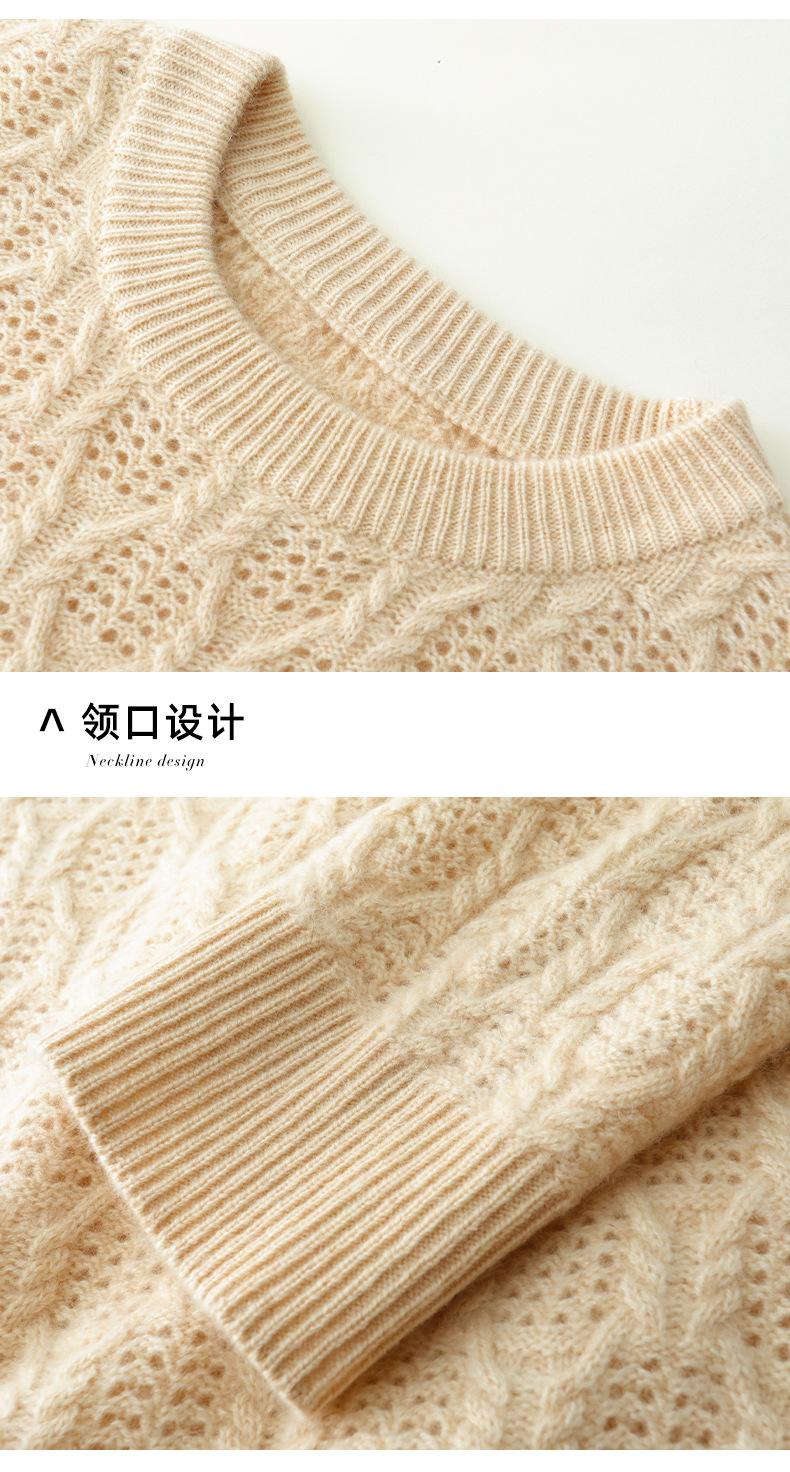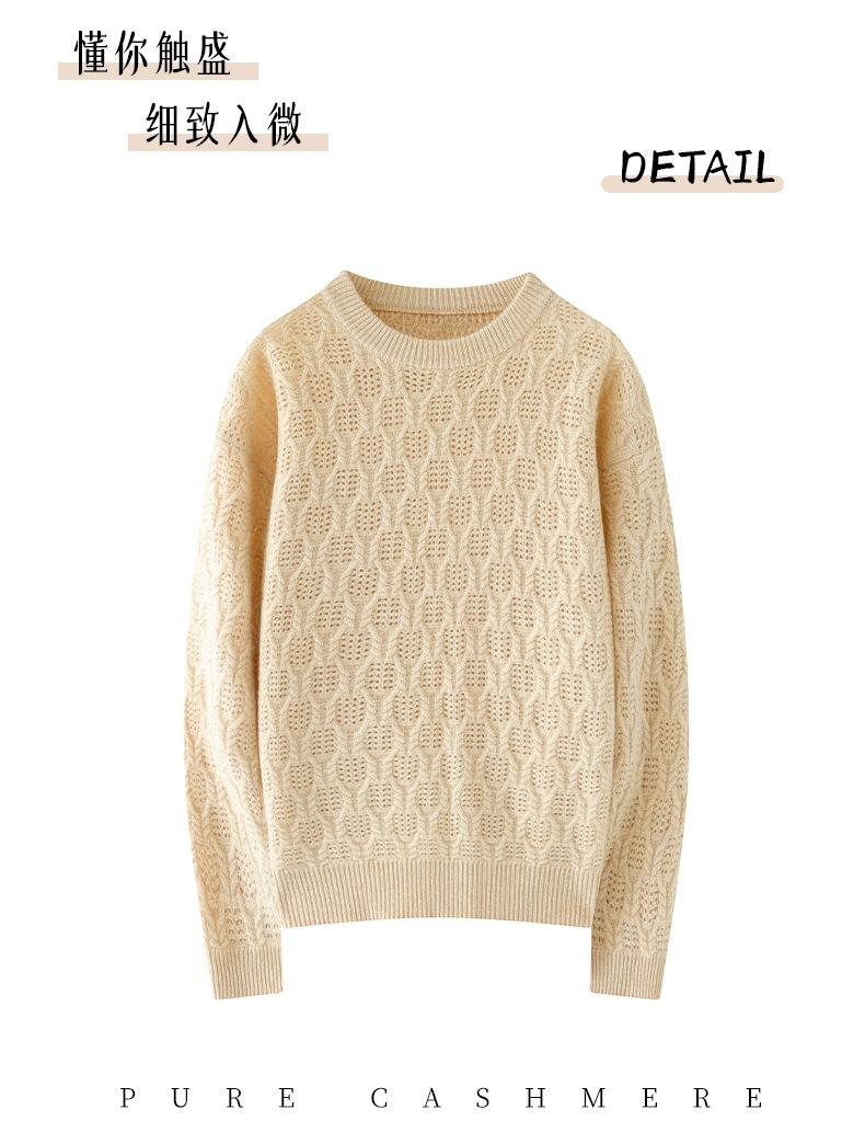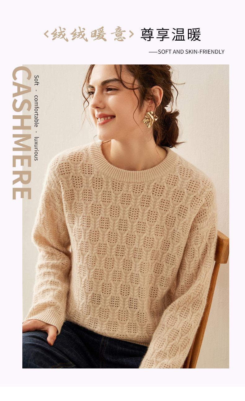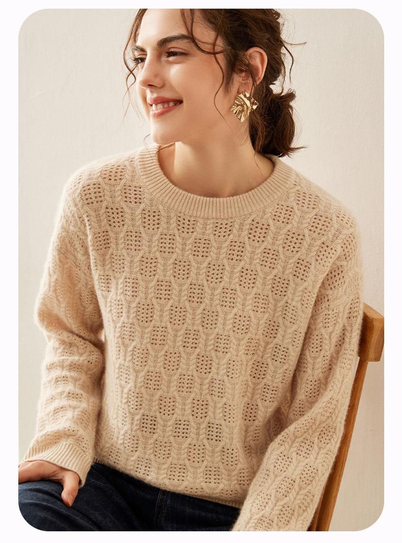Otoño e invierno nuevo suéter de cachemira de cuello redondo para mujer manga larga jersey suéter calado suelto perezoso lana camisa base