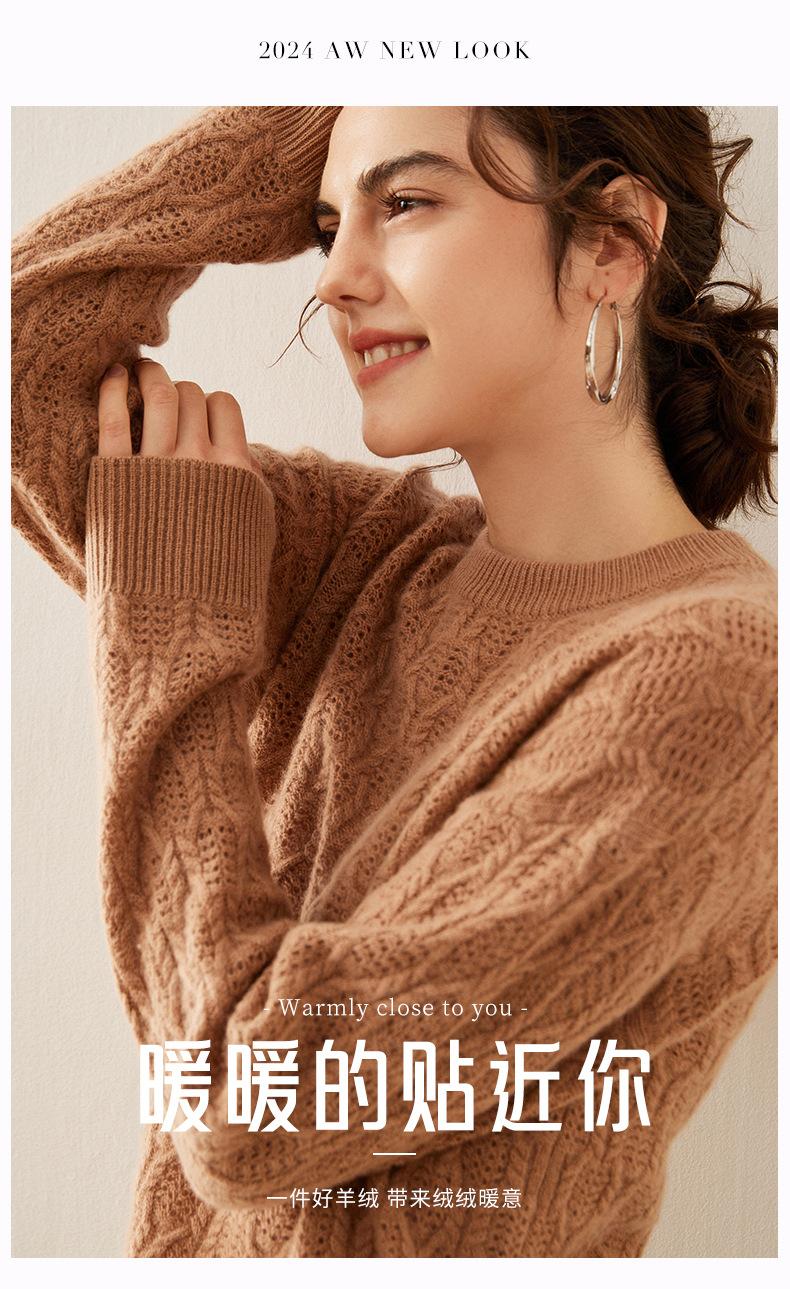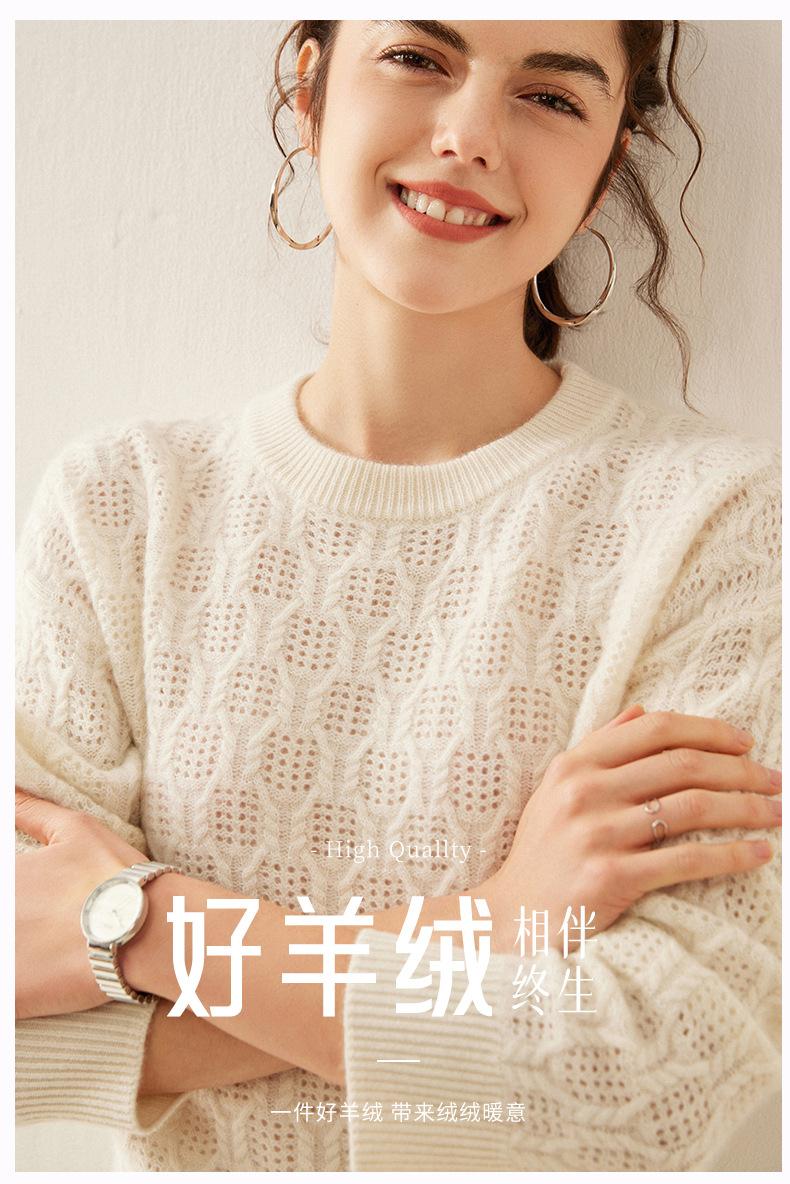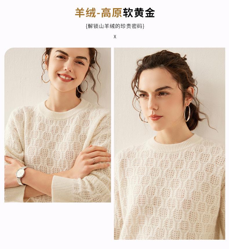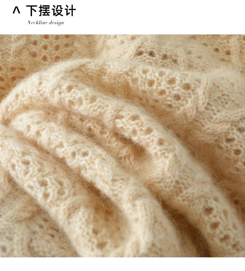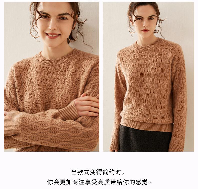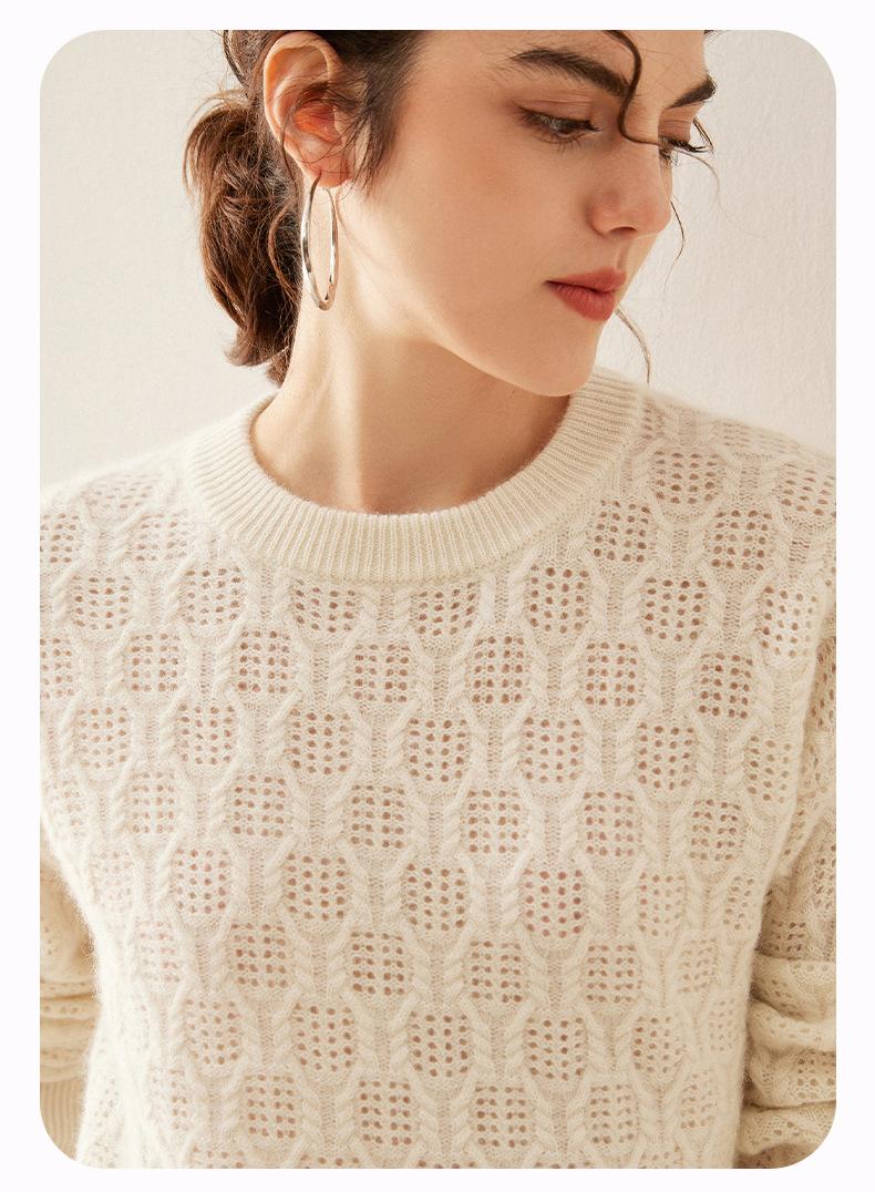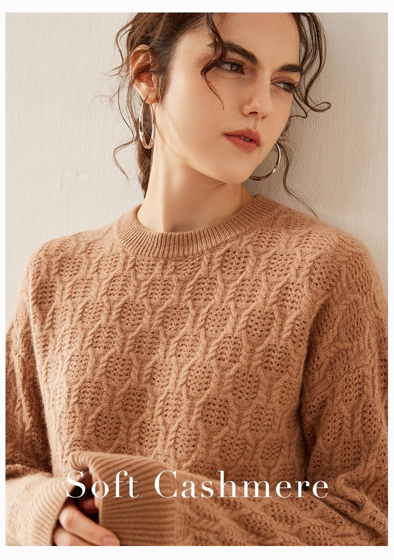 Otoño e invierno nuevo suéter de cachemira de cuello redondo para mujer manga larga jersey suéter calado suelto perezoso lana camisa base