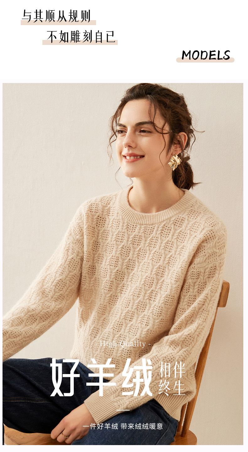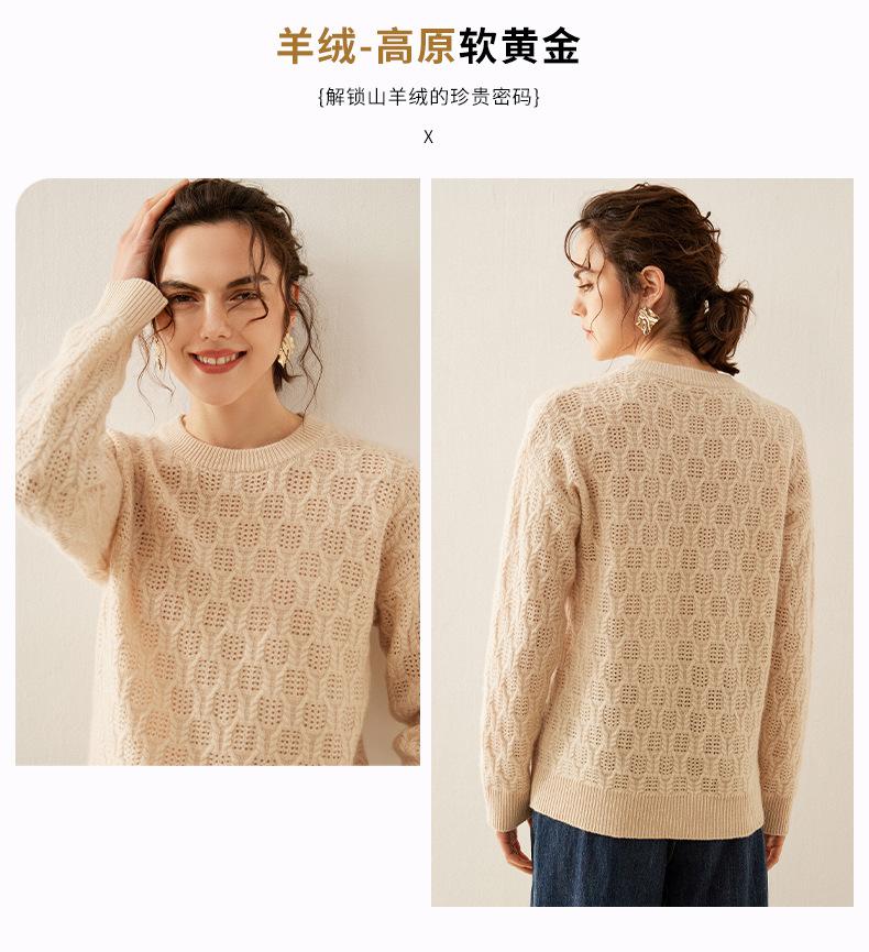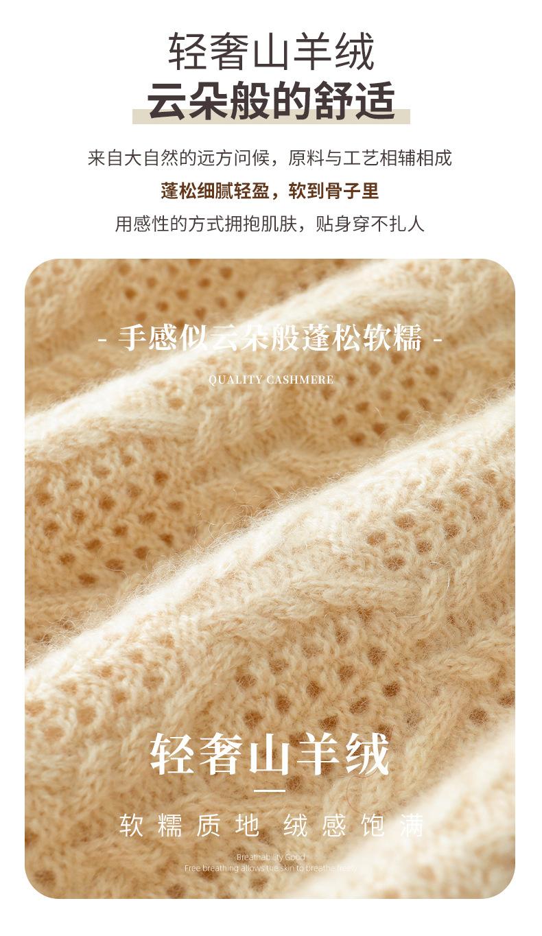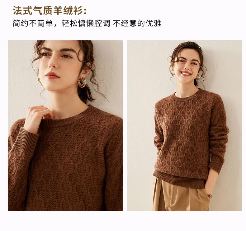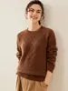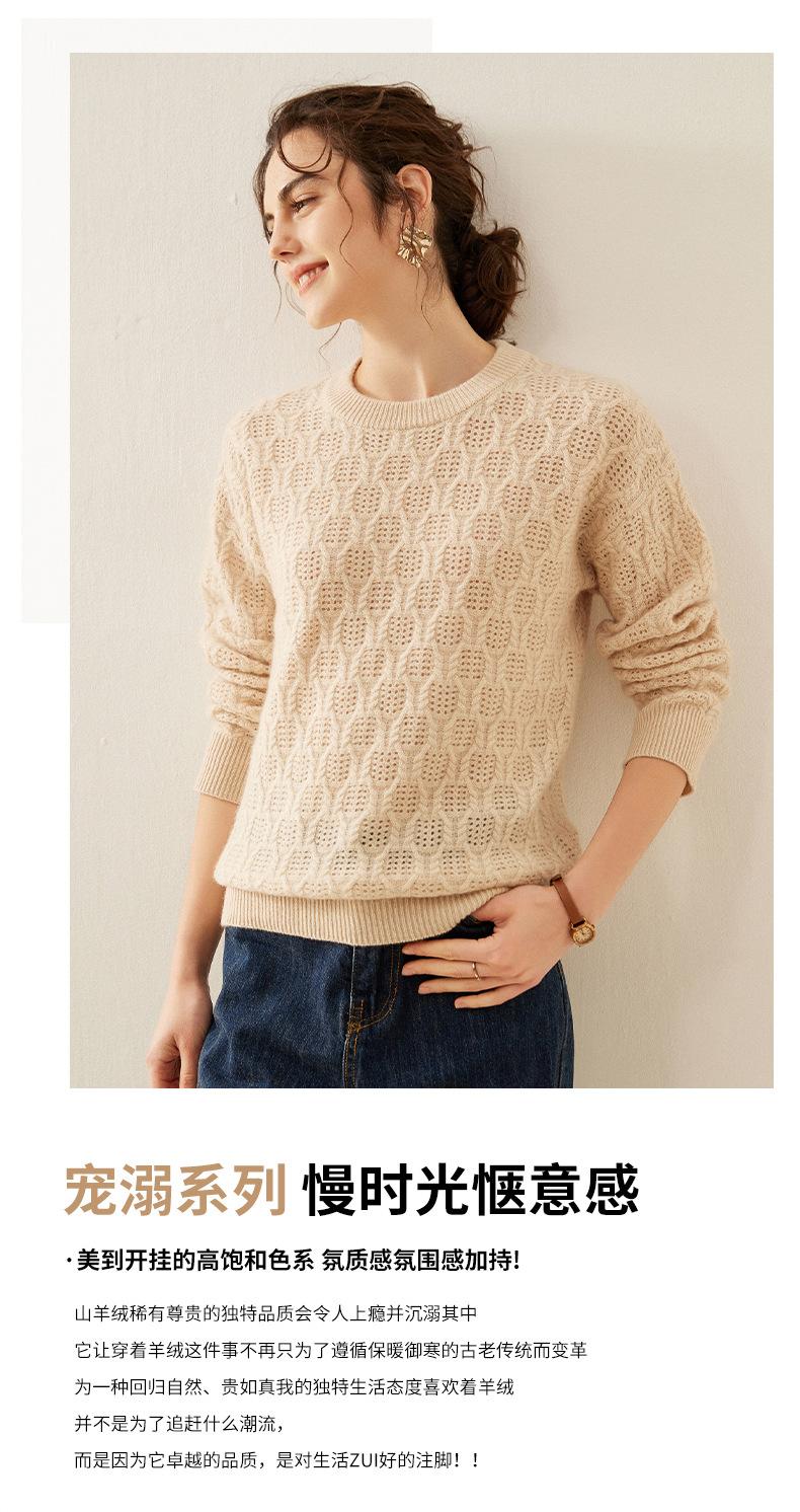 Otoño e invierno nuevo suéter de cachemira de cuello redondo para mujer manga larga jersey suéter calado suelto perezoso lana camisa base