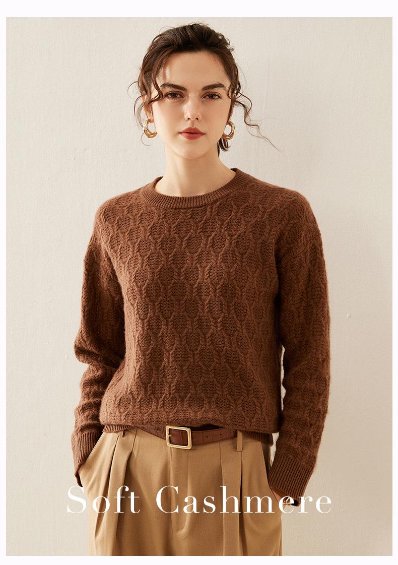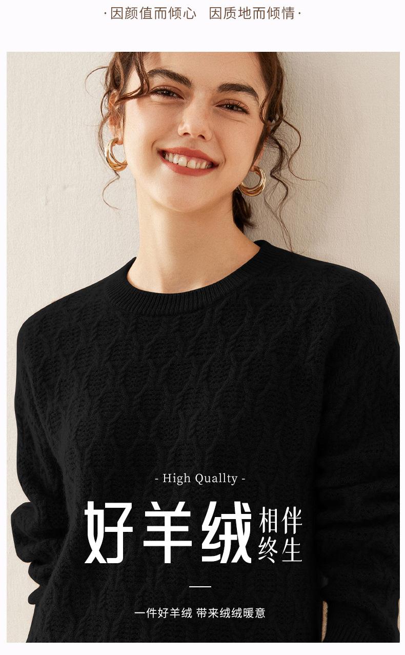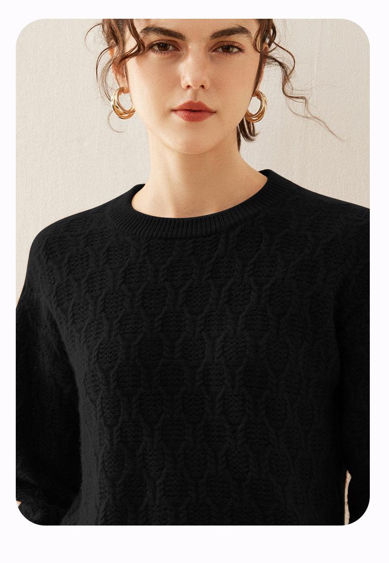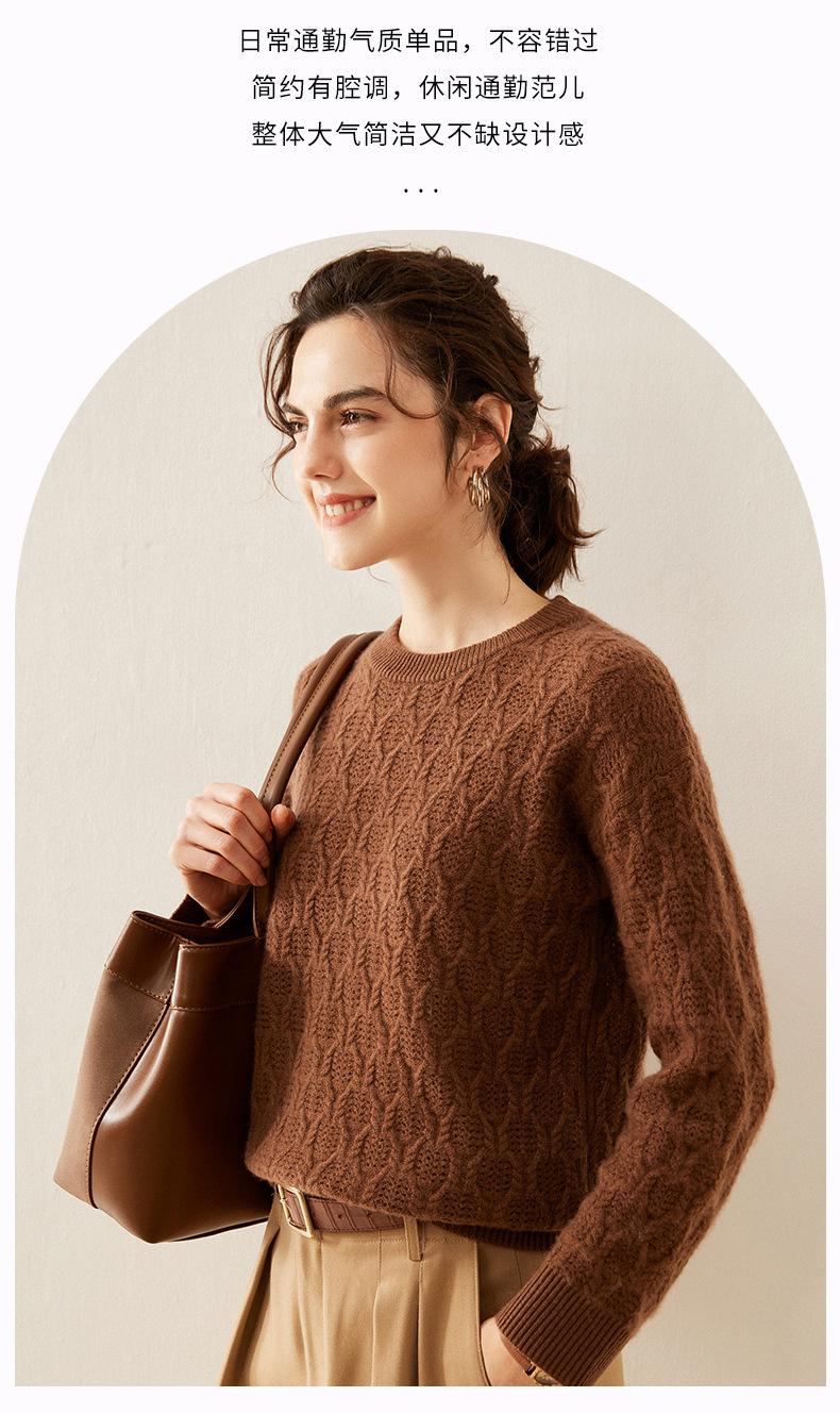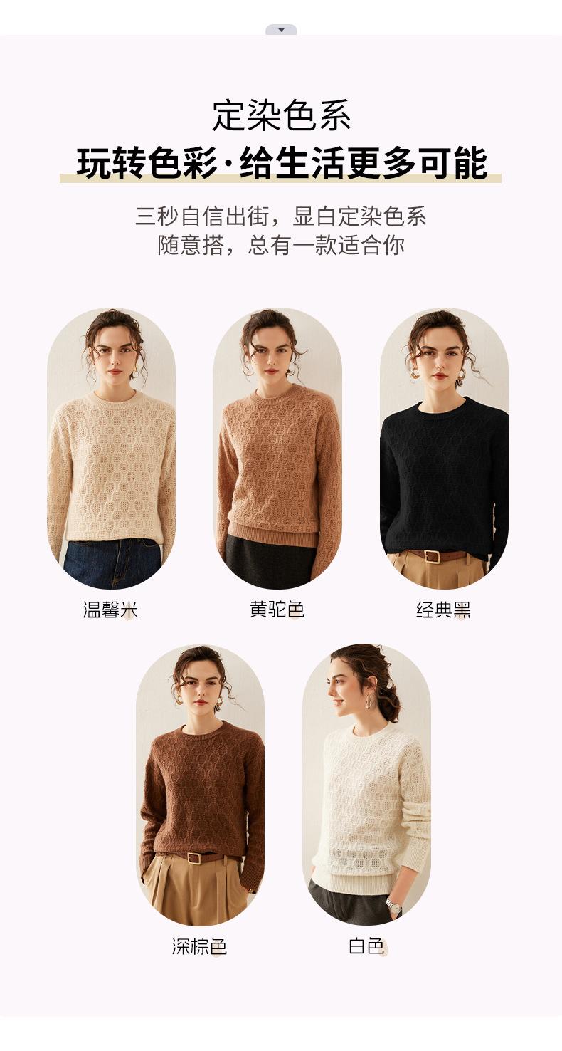 Otoño e invierno nuevo suéter de cachemira de cuello redondo para mujer manga larga jersey suéter calado suelto perezoso lana camisa base