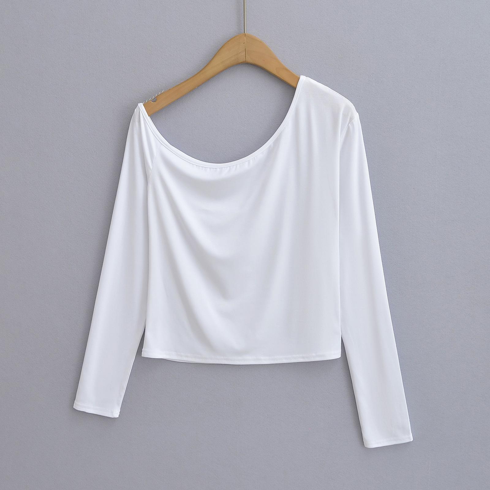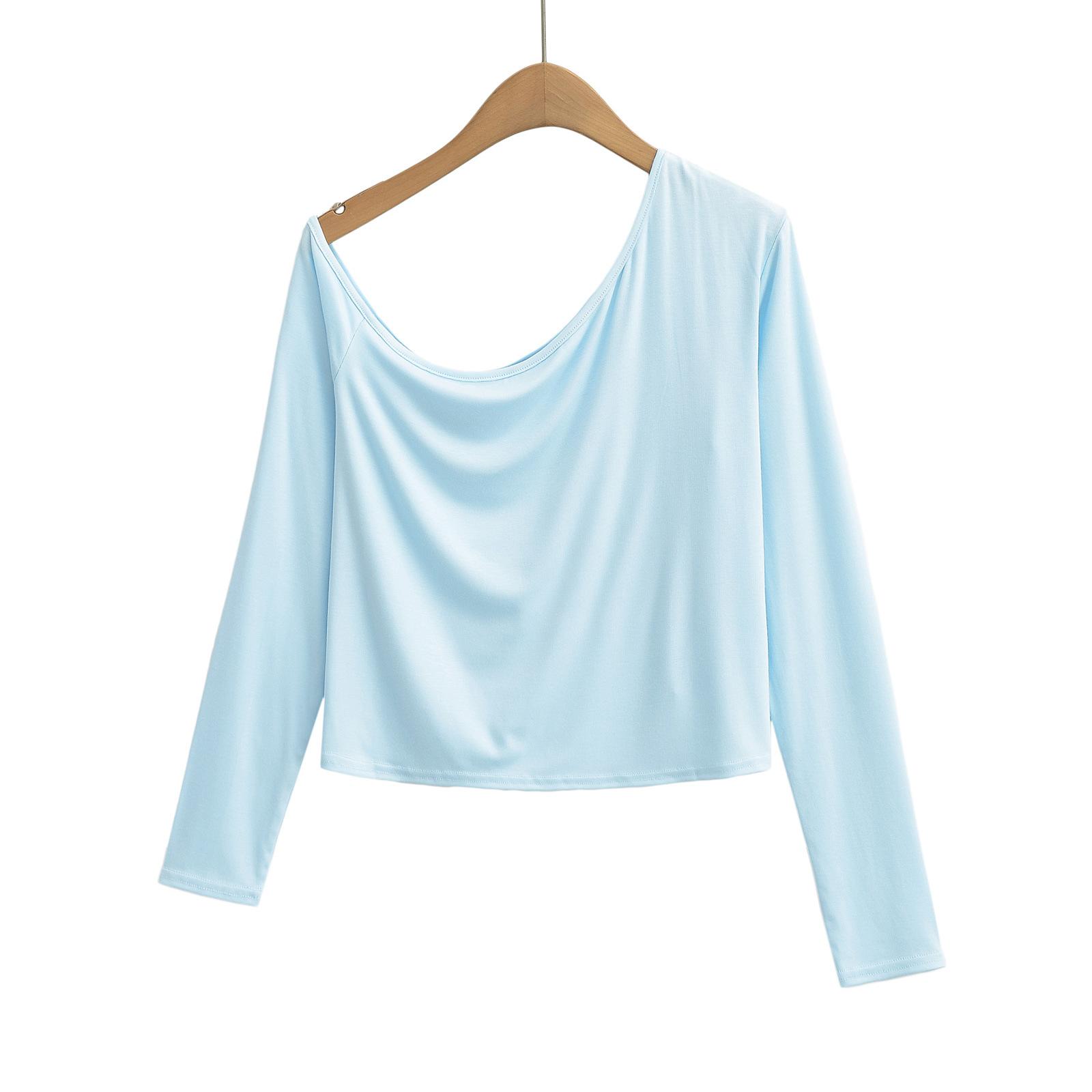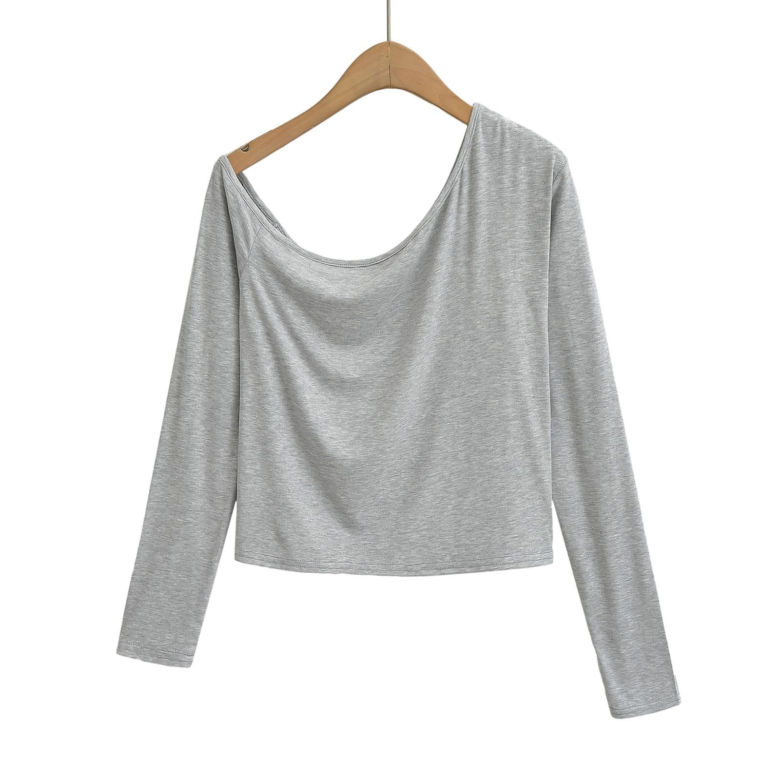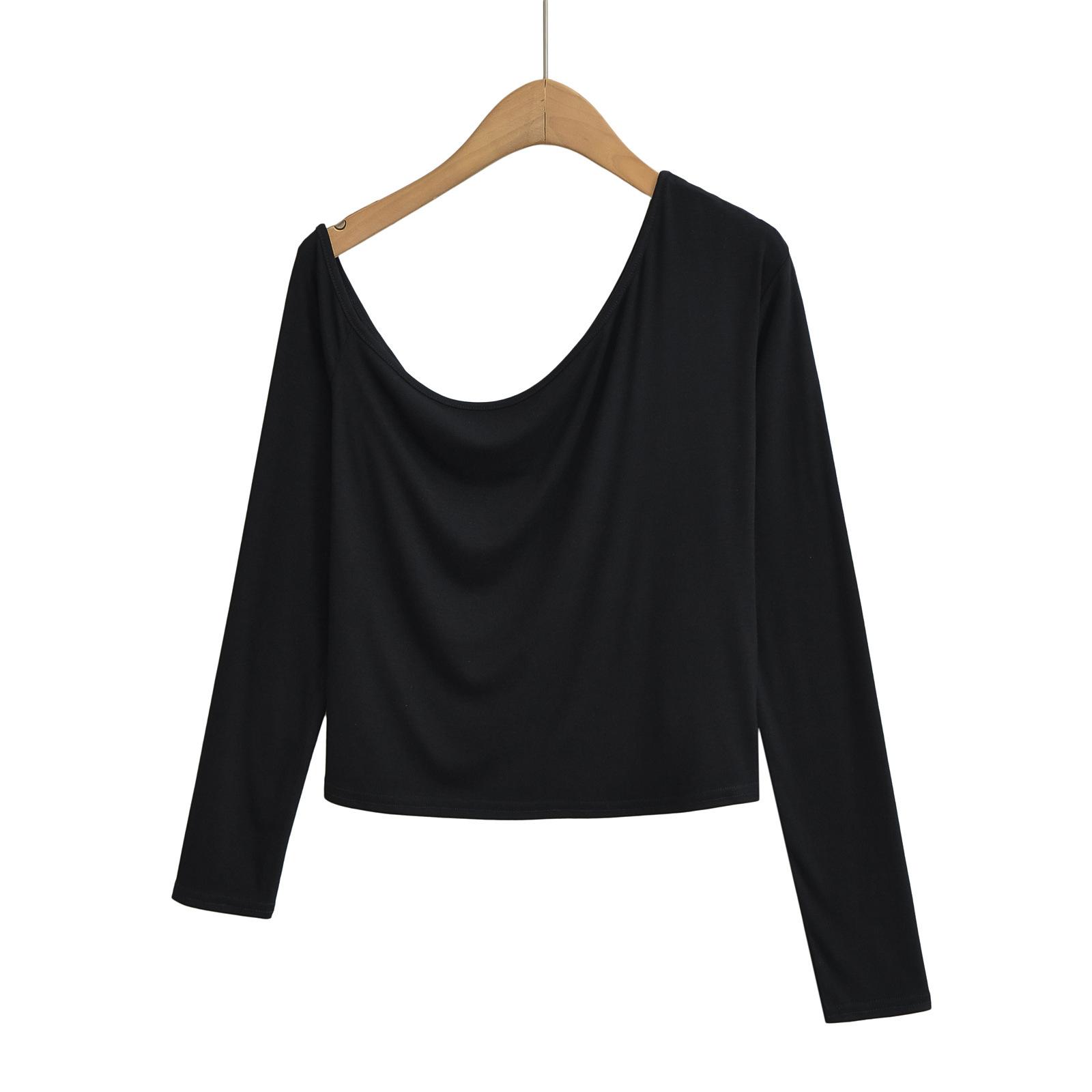 771-Camiseta de manga larga con hombros descubiertos irregulares y personalidad de estilo europeo y americano para mujer, novedad de 2024, top sexy y adelgazante para chica