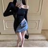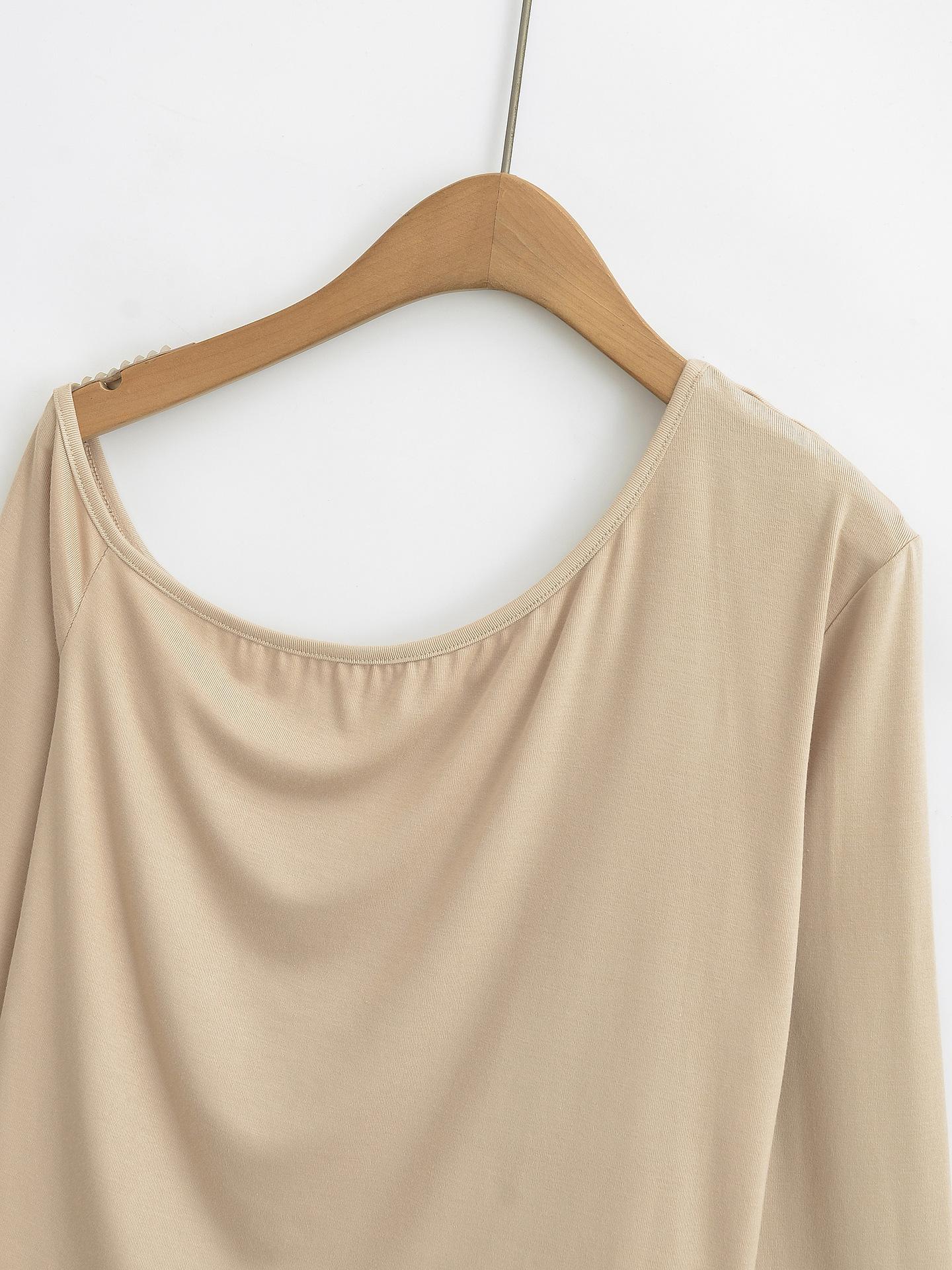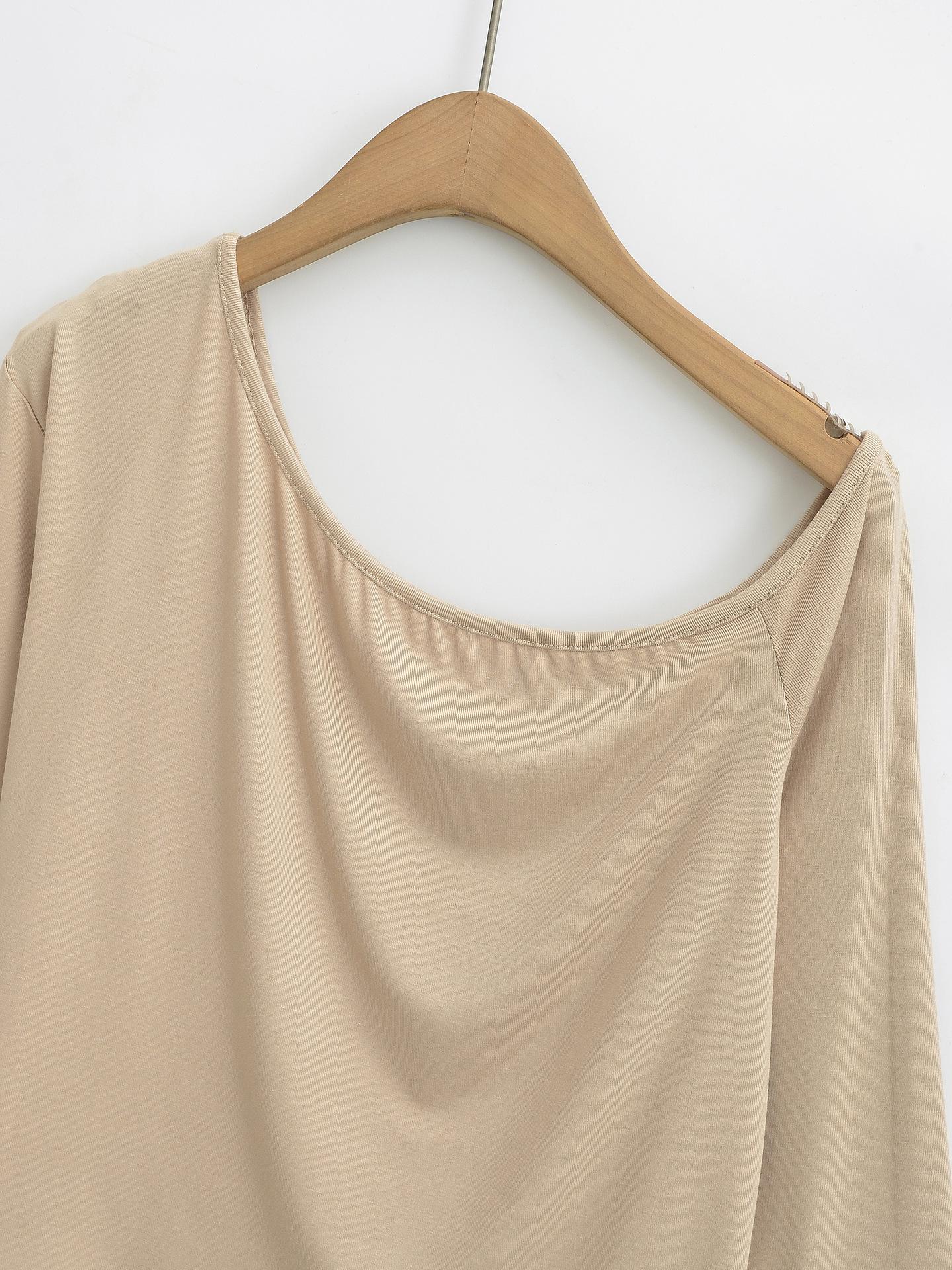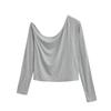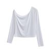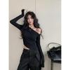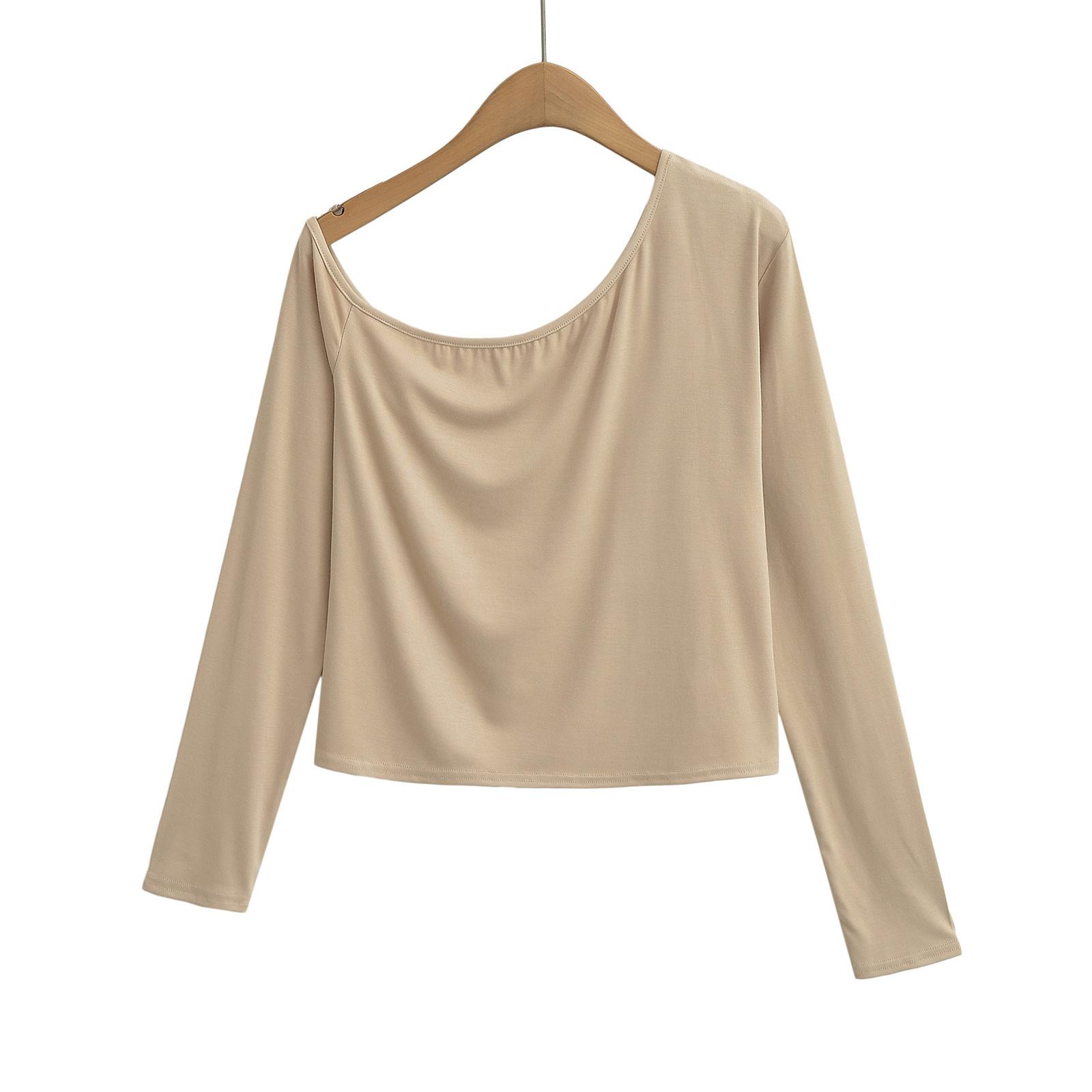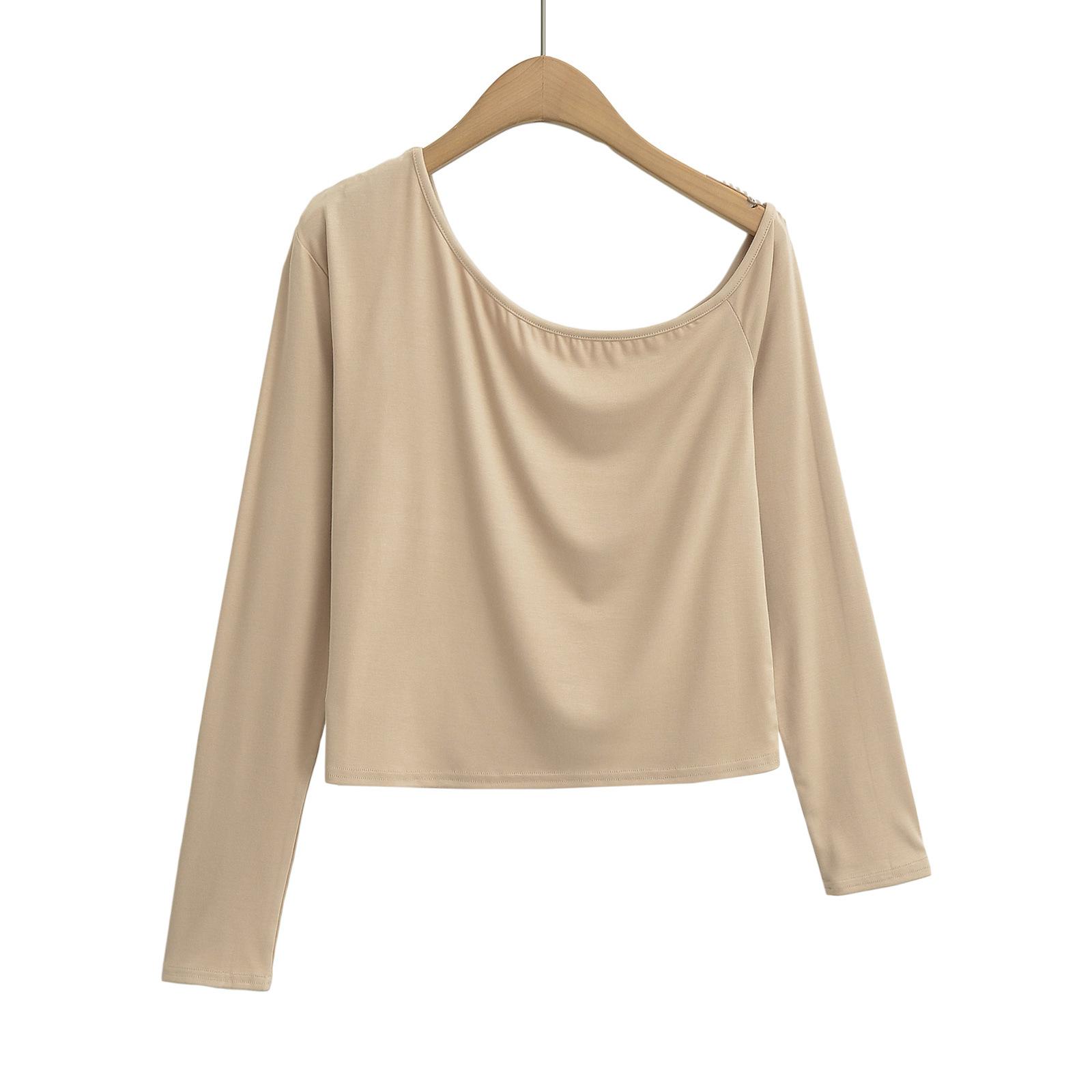 771-Camiseta de manga larga con hombros descubiertos irregulares y personalidad de estilo europeo y americano para mujer, novedad de 2024, top sexy y adelgazante para chica